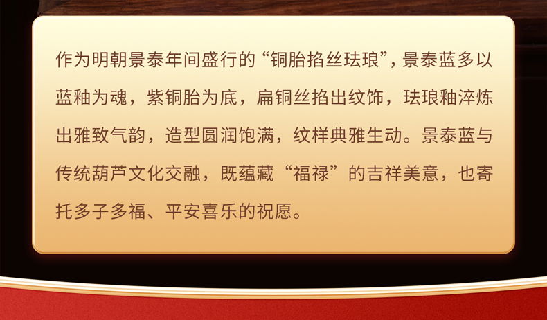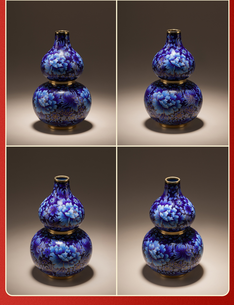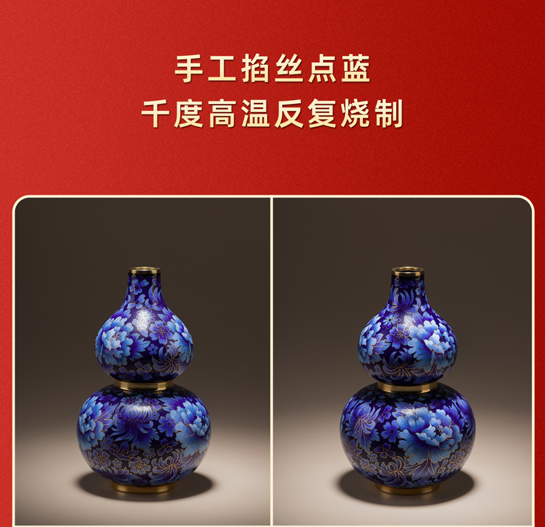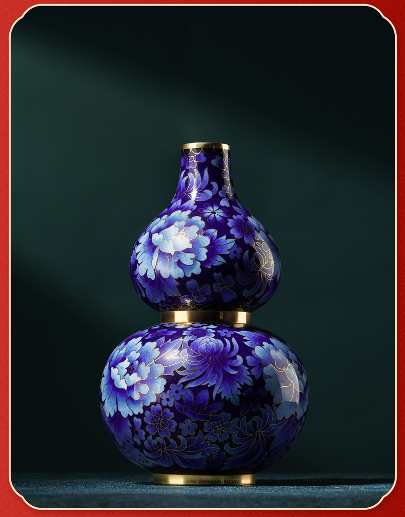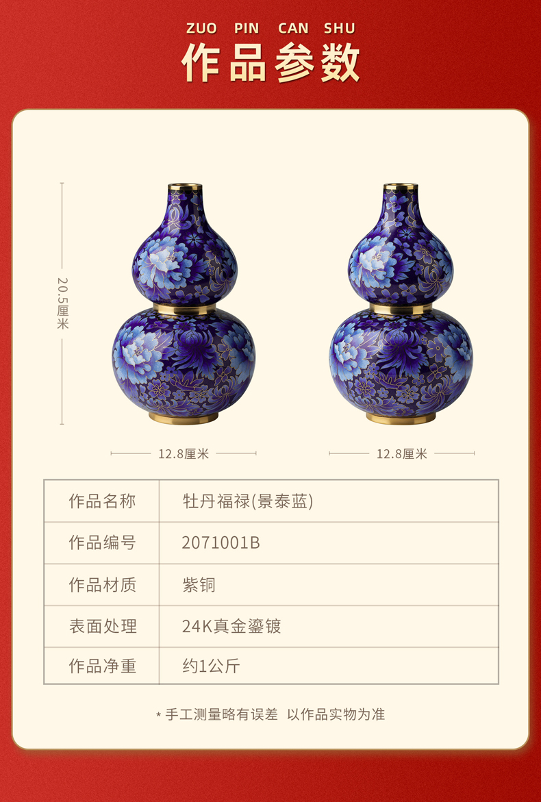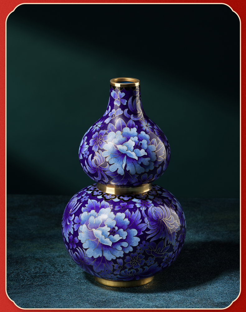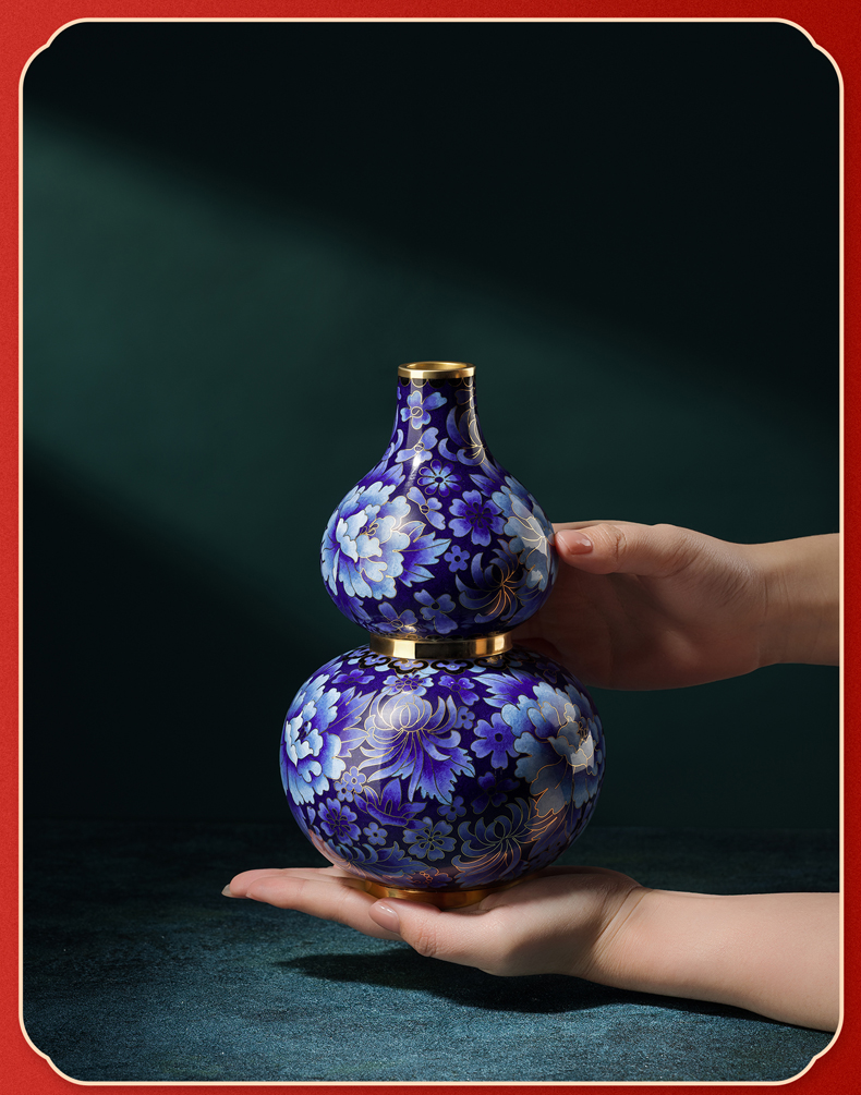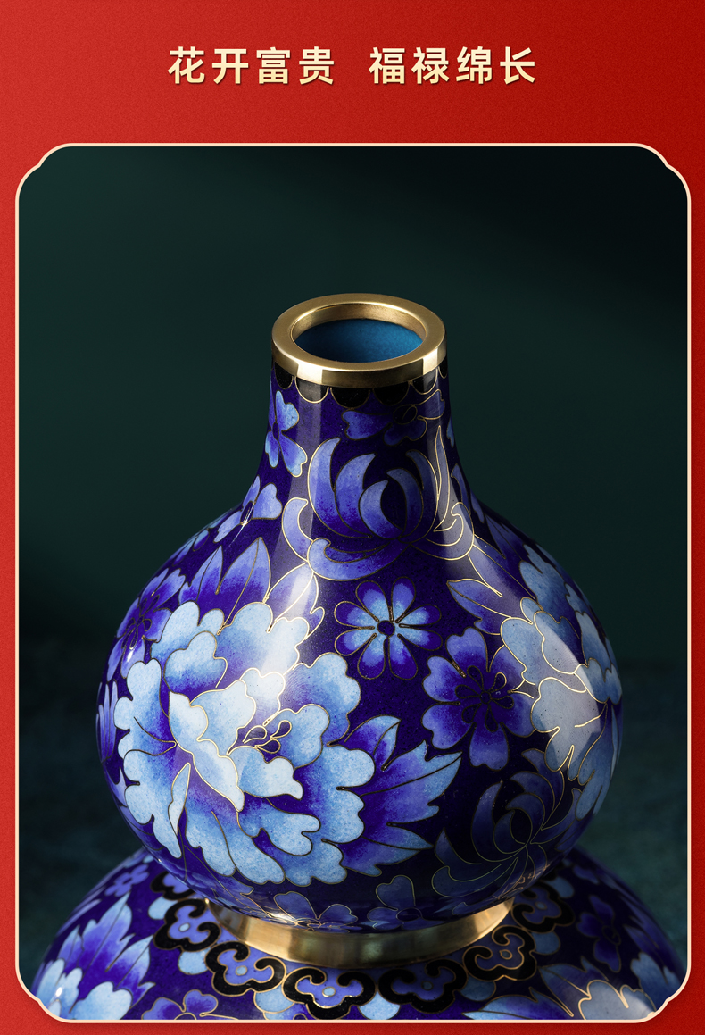 铜师傅《牡丹福禄(景泰蓝)》客厅紫铜葫芦摆件 家居装饰工艺礼品