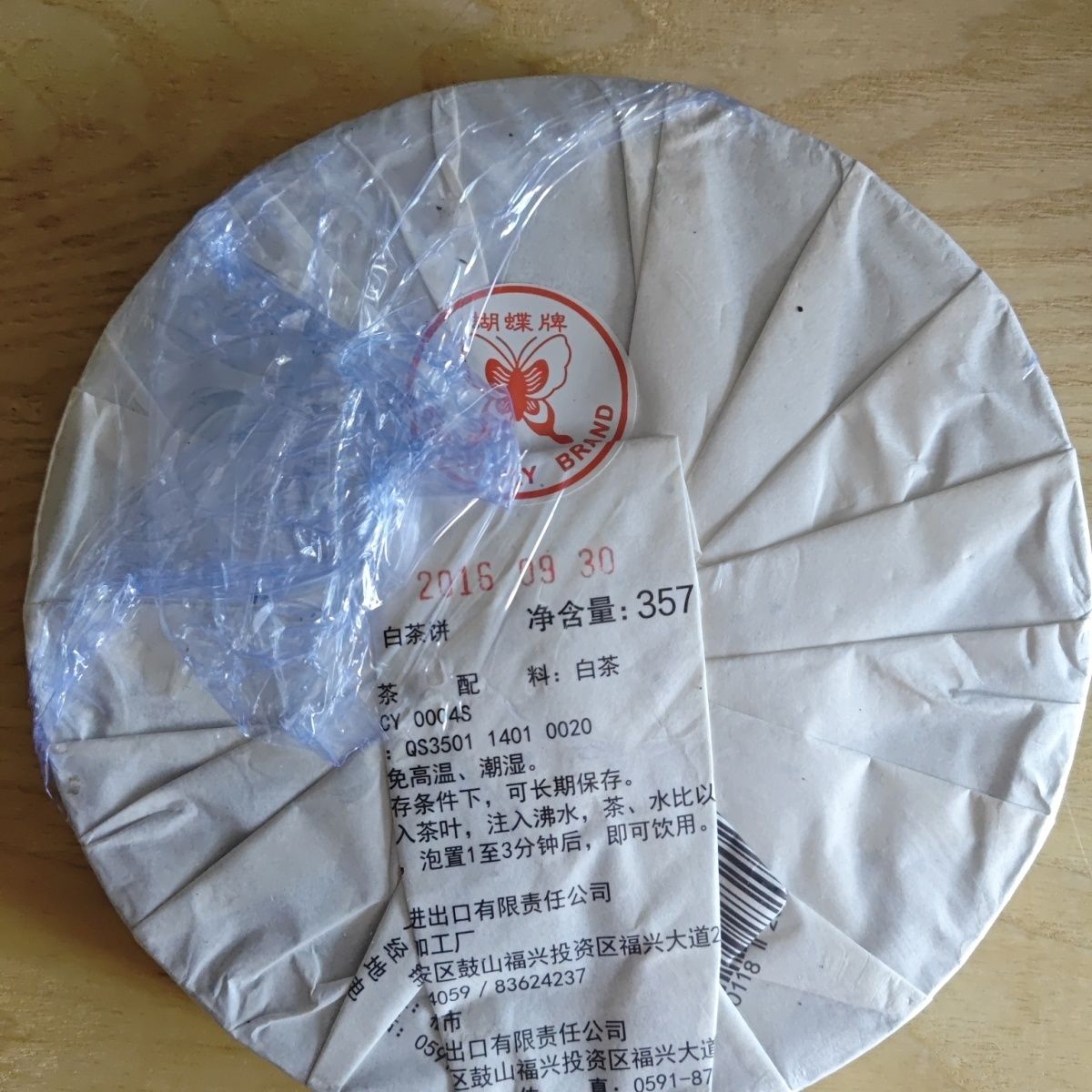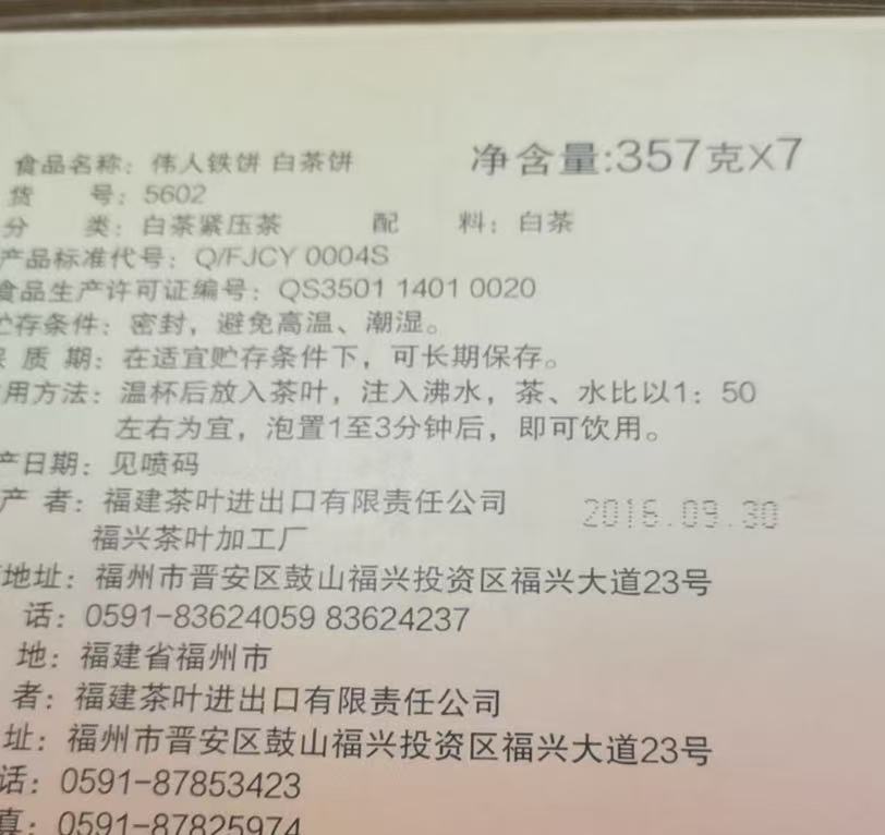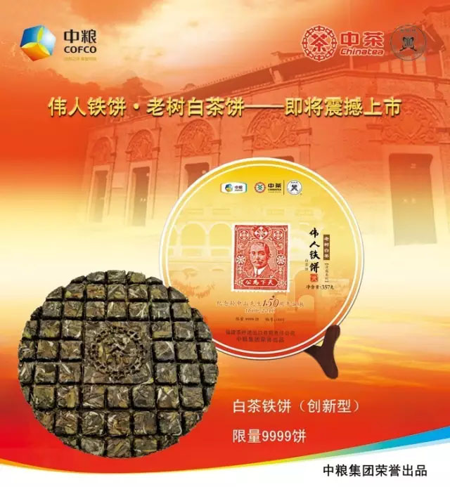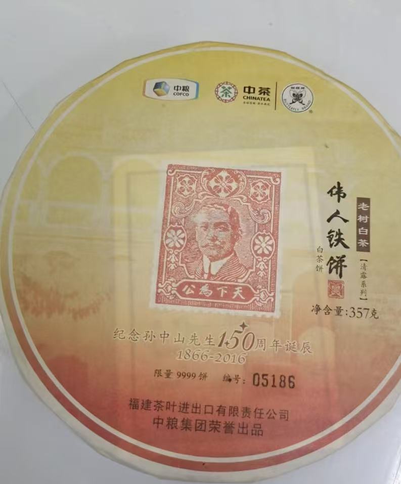 中粮-中茶2016年中茶孙中山伟人铁饼白茶 老树白茶 357克/云南干仓直发