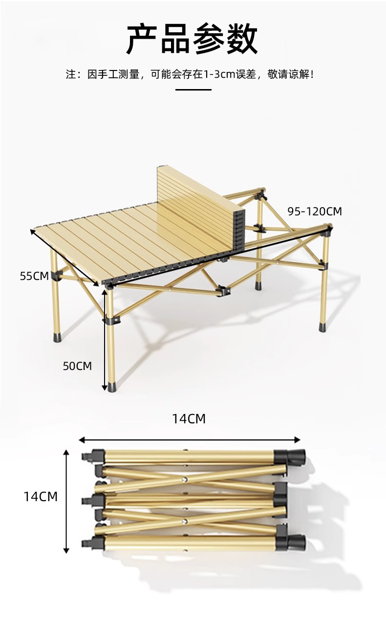 [便携式碳素钢折叠户外桌】户外折叠桌 家用露营野餐休闲桌 车载自驾蛋卷桌子 摆摊装备