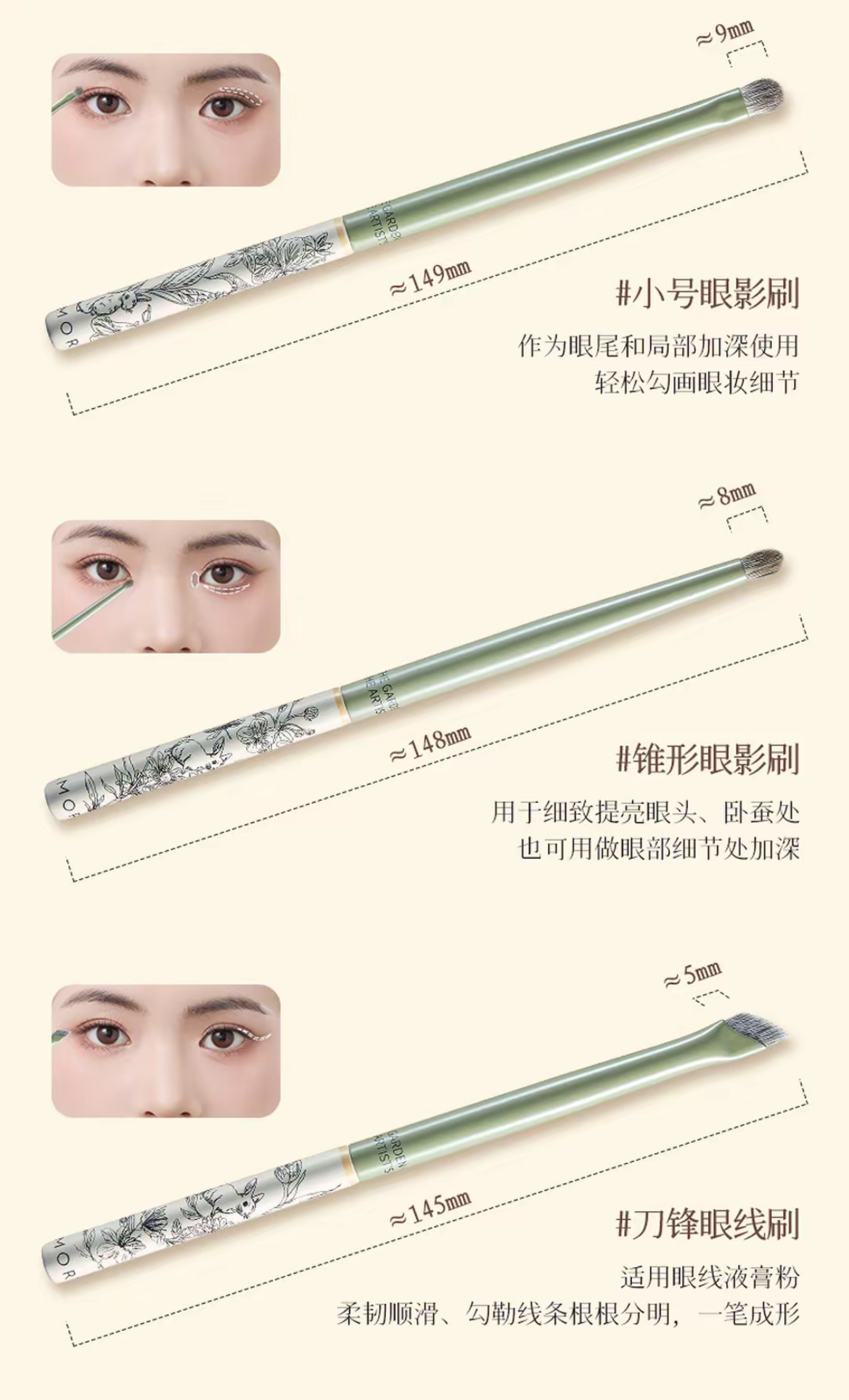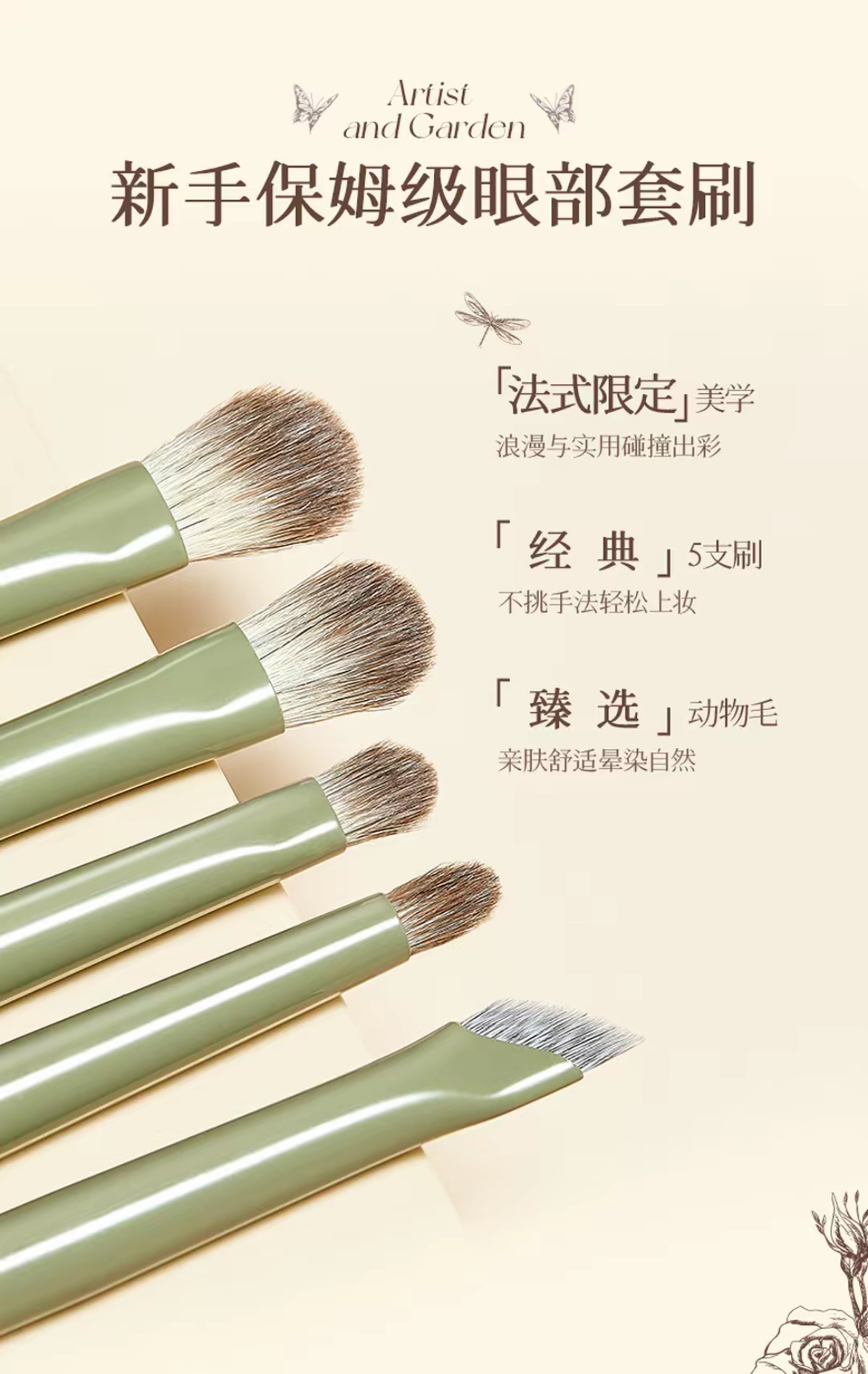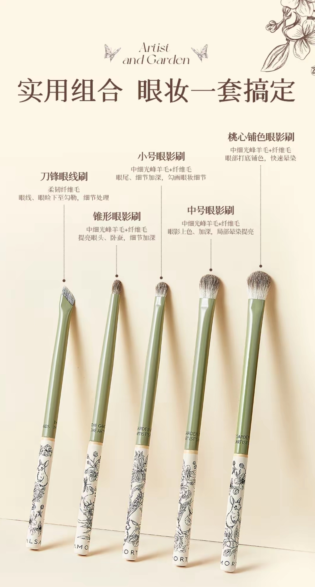 尔木萄 艺术家花园系列 眼部经典套刷 (5支装绿柄)