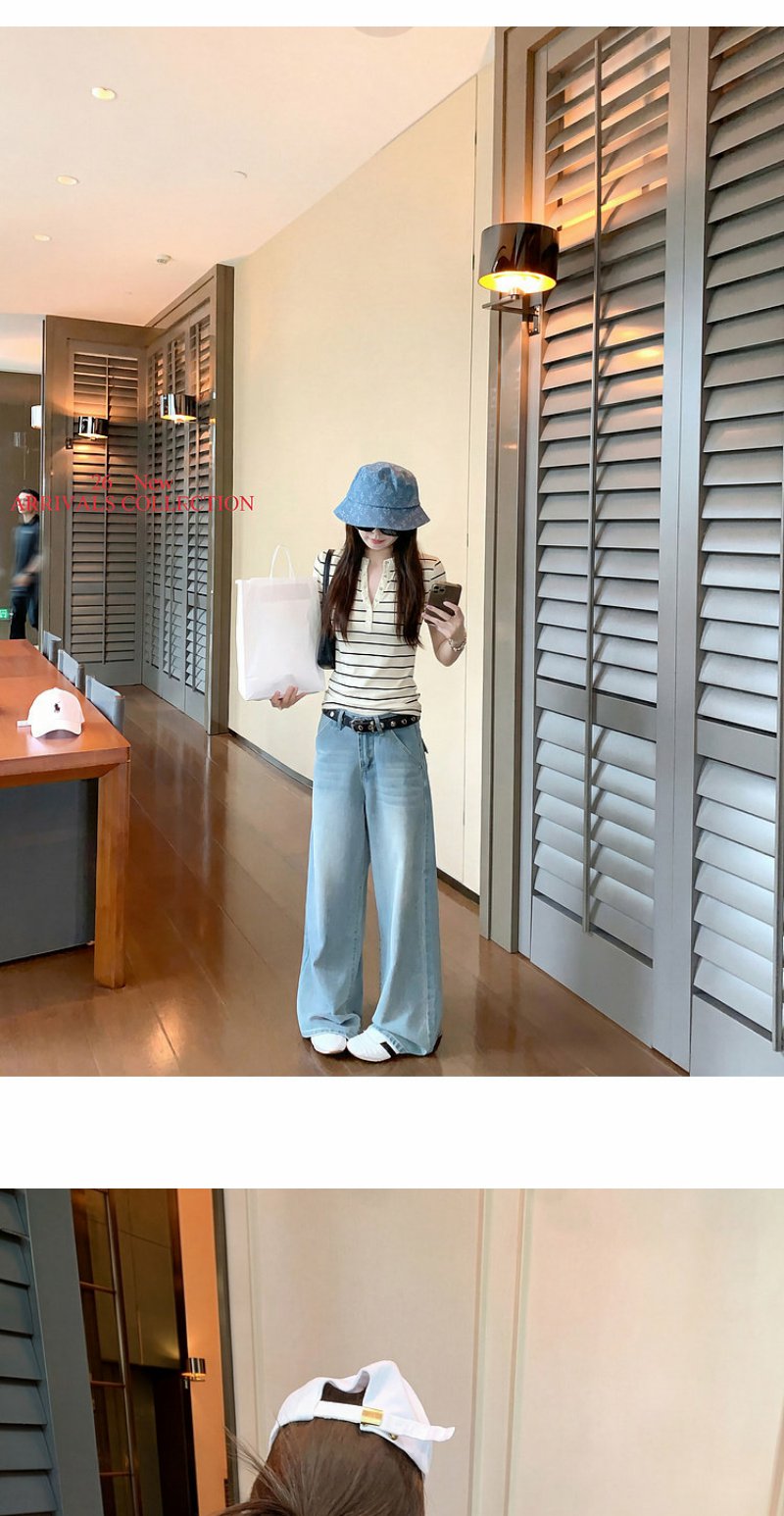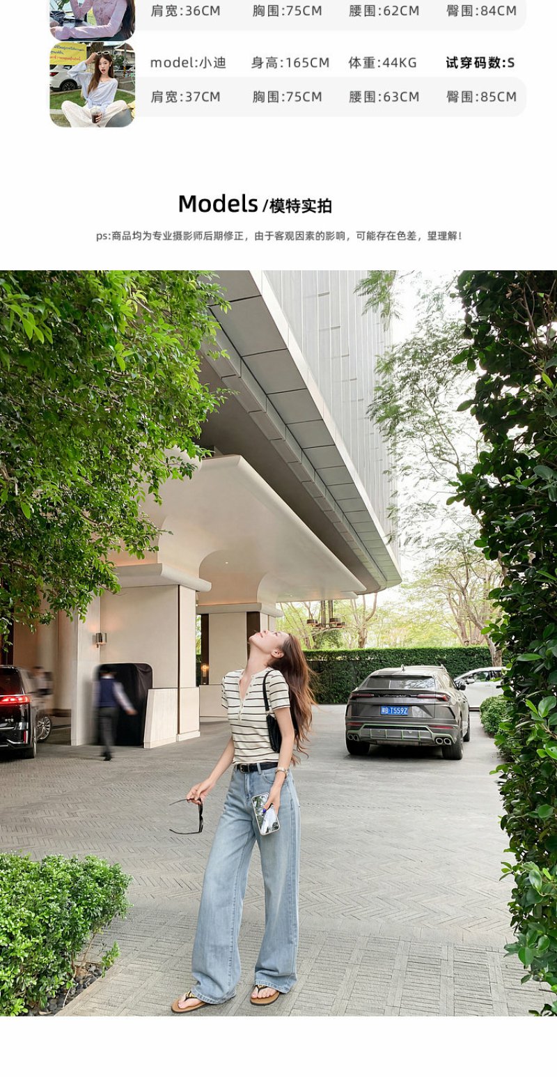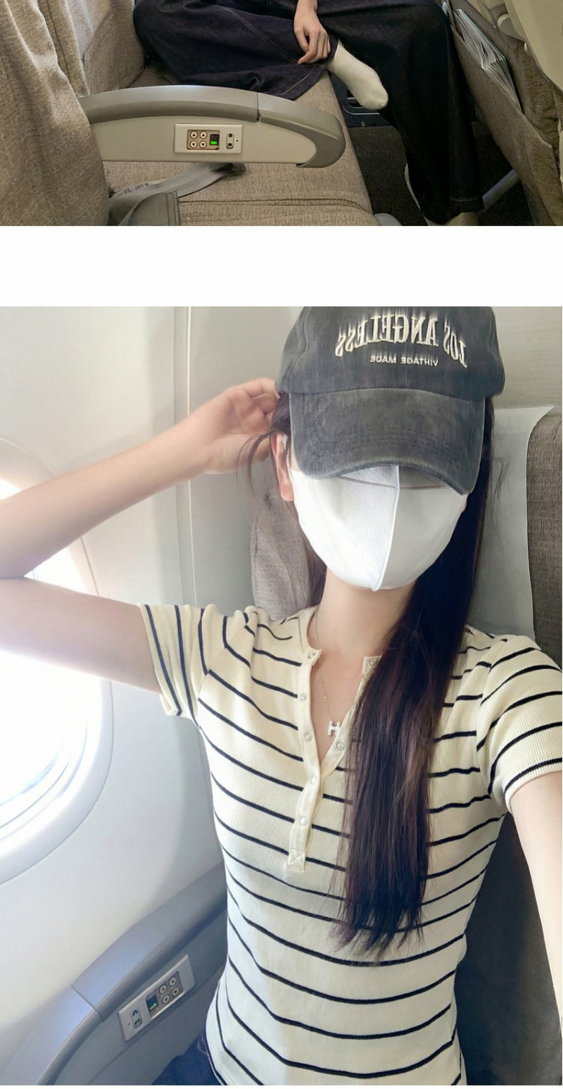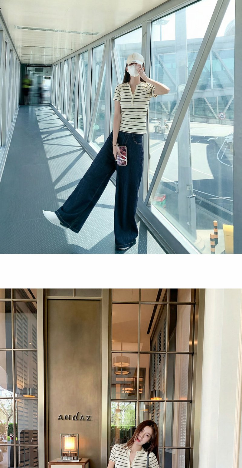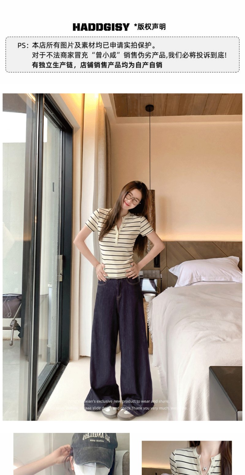 <曾小咸推荐>条纹纽扣修身短袖T恤上衣【预售款,预计3-15天!!】
