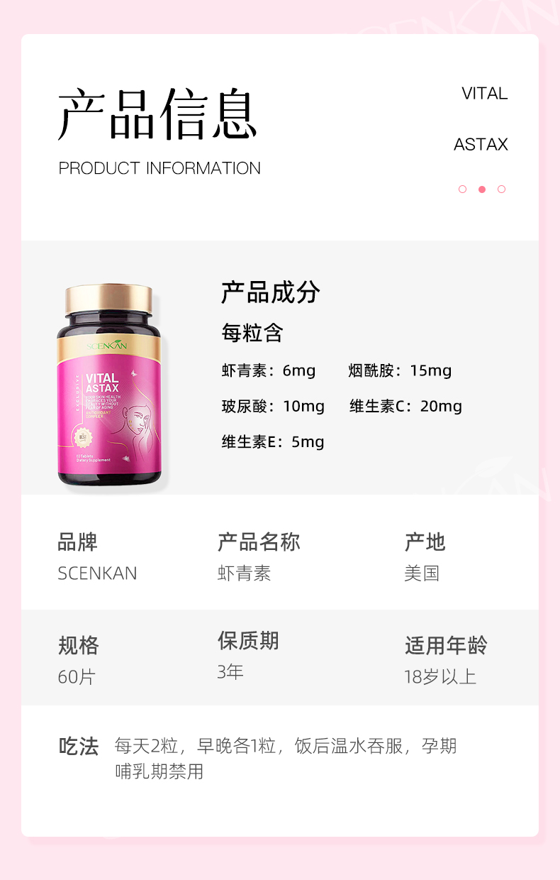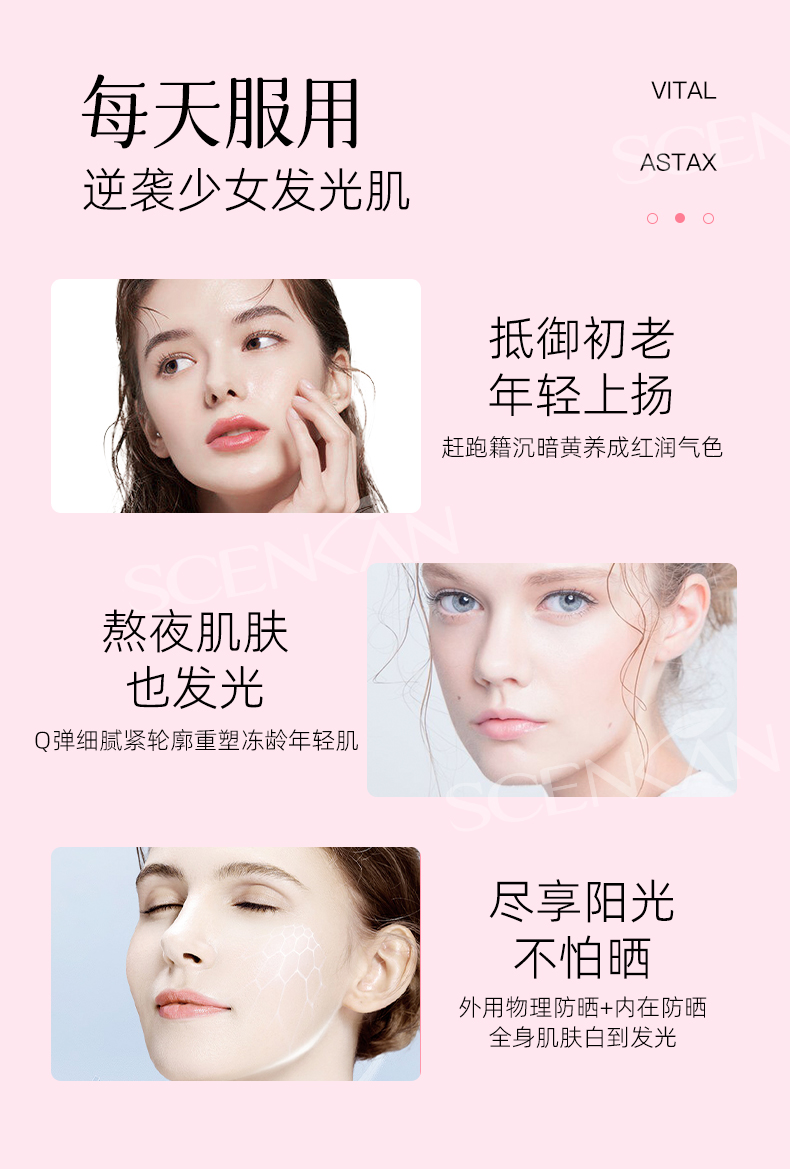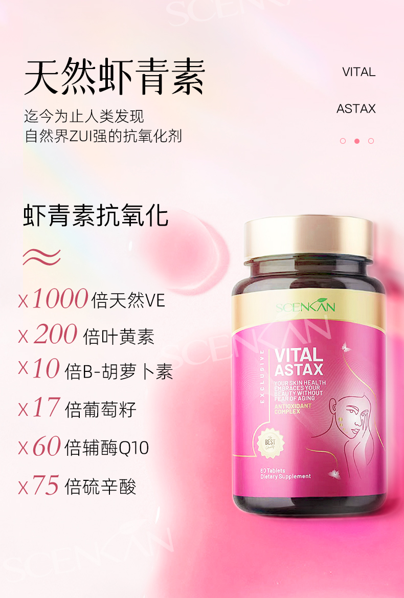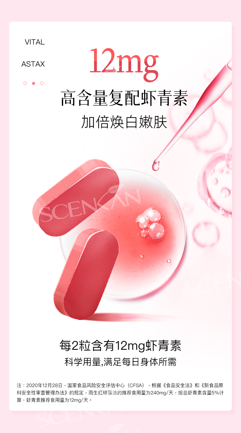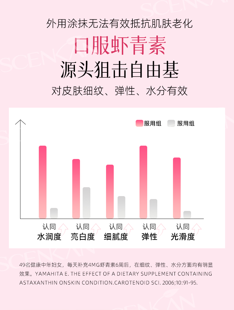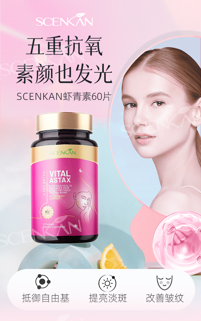 【Scenkan大含量虾青素精华片胶囊】美国进口天然雨生红藻球6mg 国标最高标准 逆袭少女发光肌 抵御初老 尽享阳光不怕晒