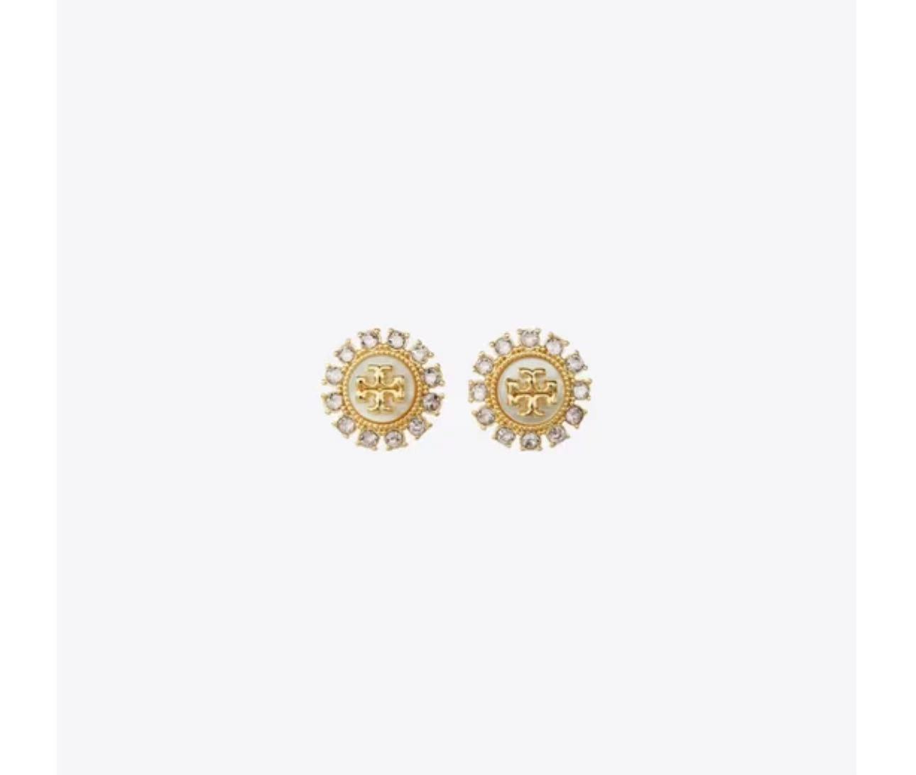 TORY BURCH 汤丽柏琦 KIRA 双T LOGO耳钉 87083,Kira 耳钉,点缀以夺目的珍珠母贝圆盘,中部饰以标志性双TLogo。精致纹边点缀以精巧串珠,灵感来自复古首饰的制作工艺。玻璃元素更添闪耀气息。适合有耳洞者佩戴。