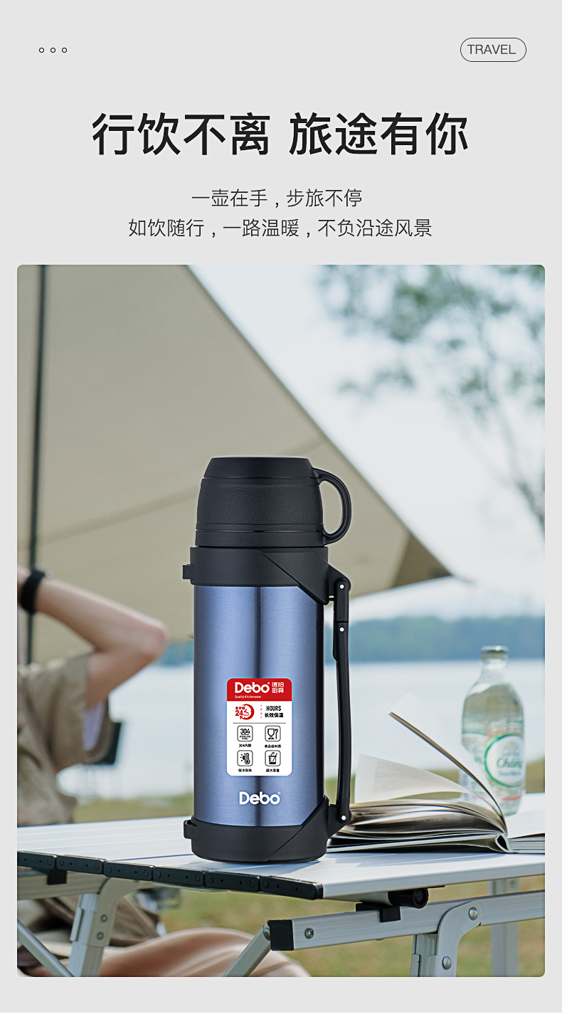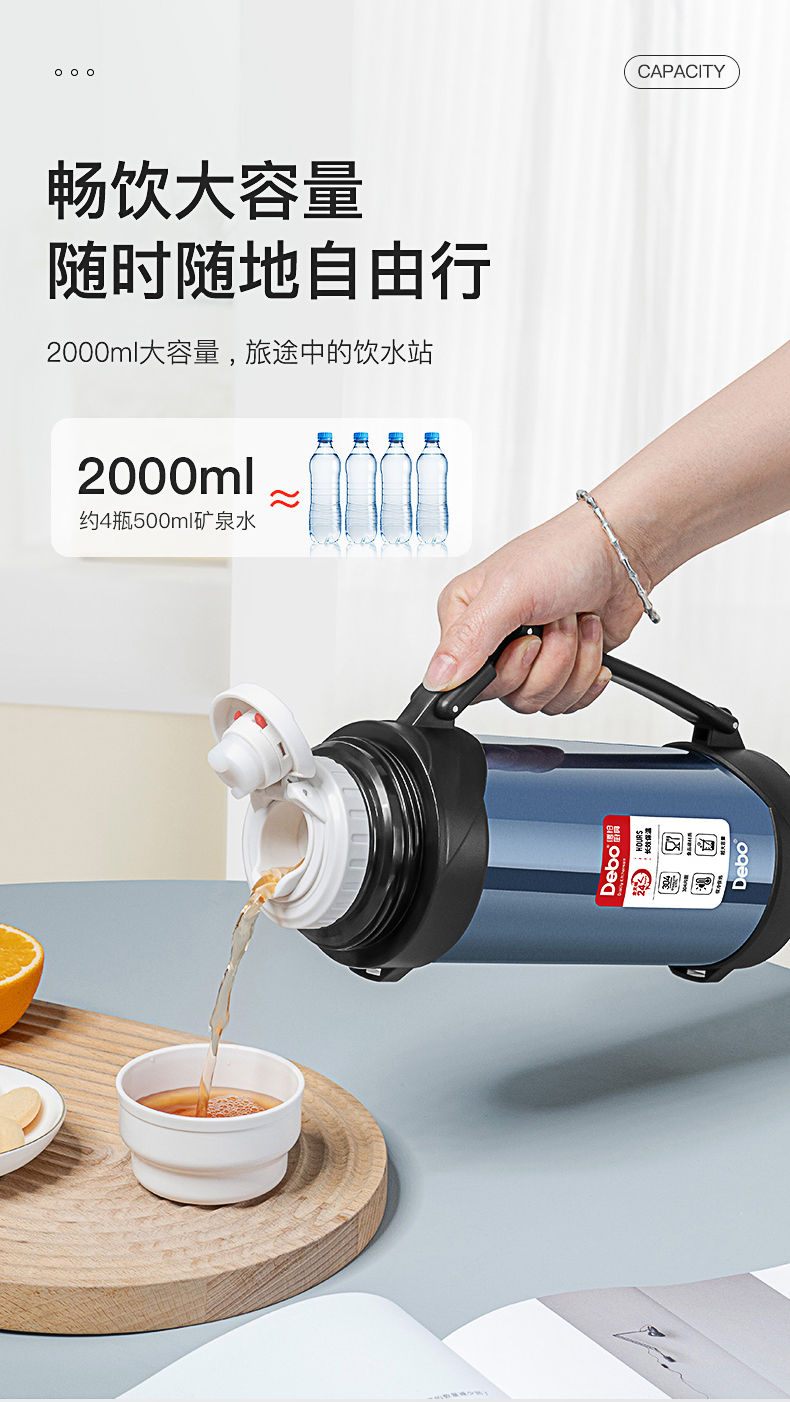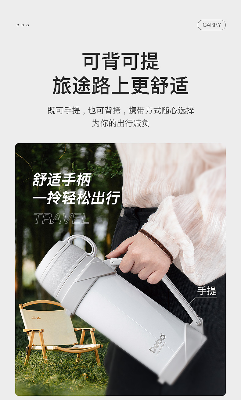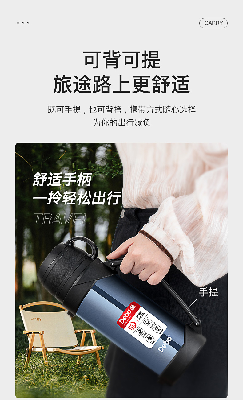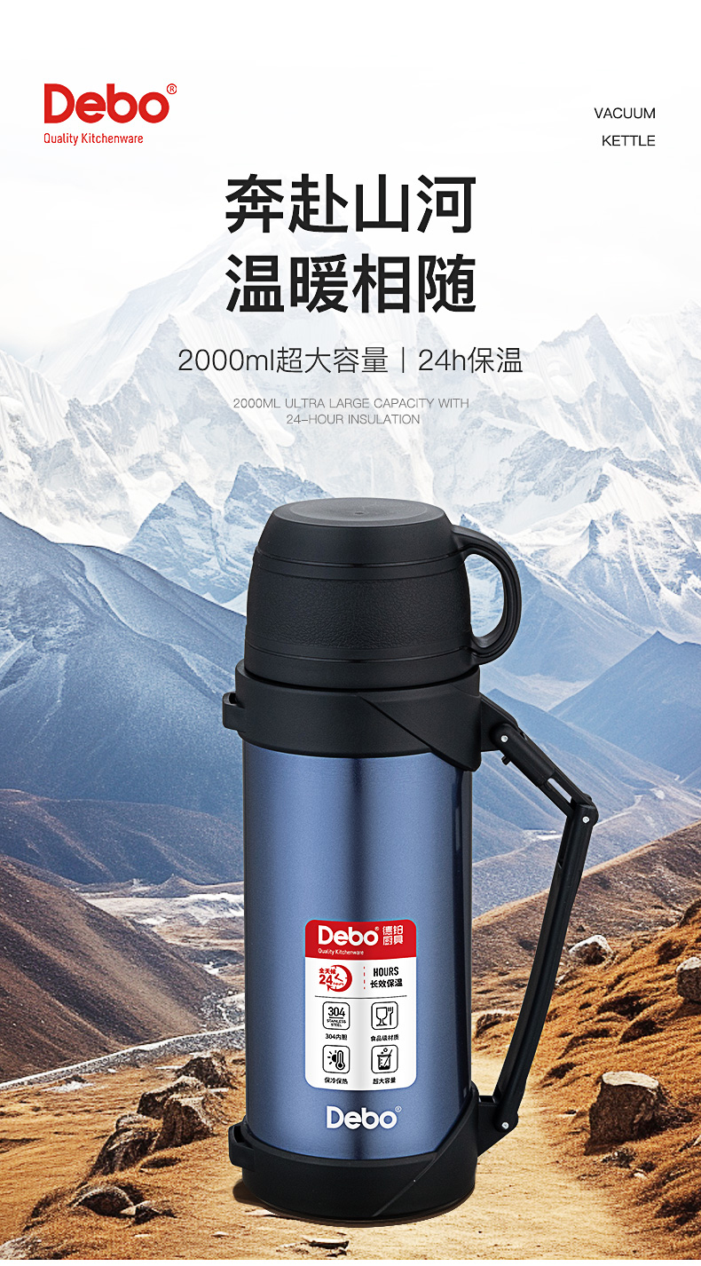 Debo德铂-韦尔登 迈肯兹真空保温壶2L 304不锈钢耐腐蚀耐高温 手提/肩背两种方式轻松出行无负担
