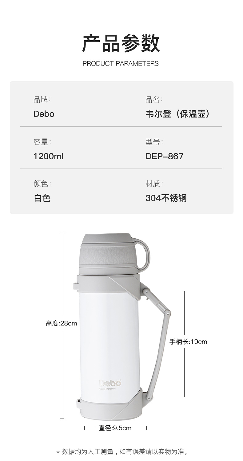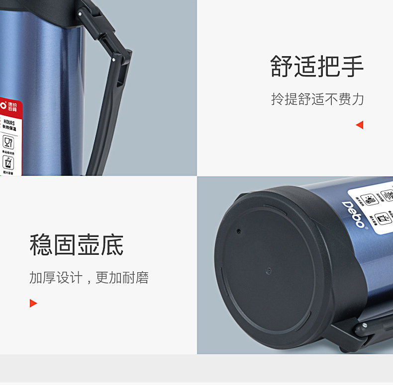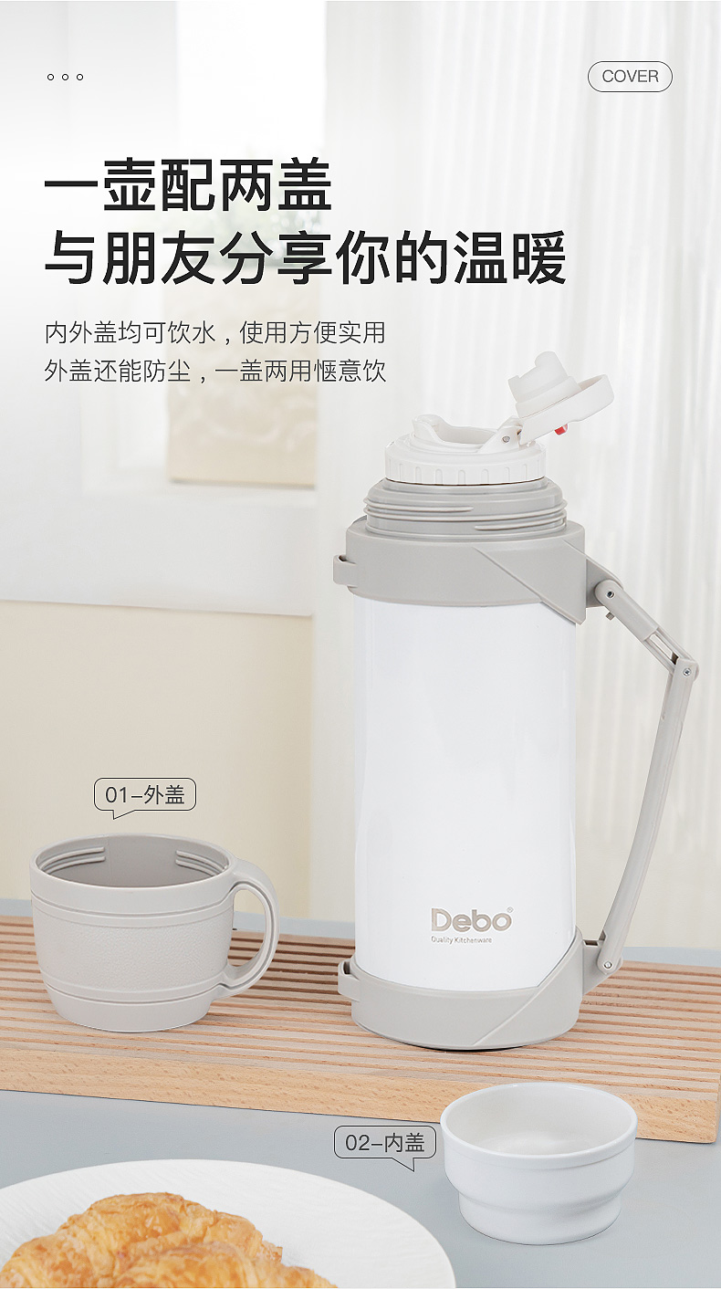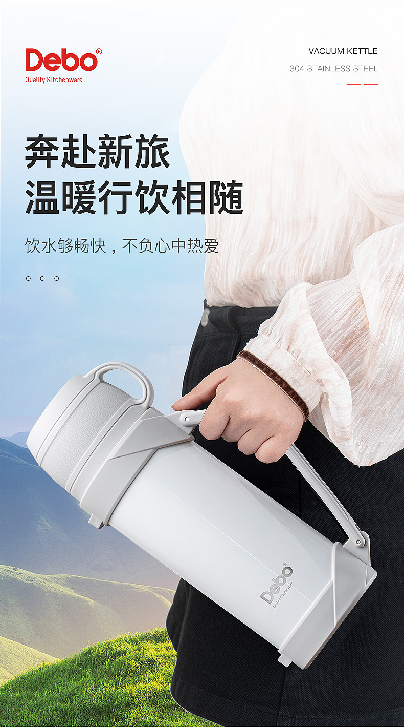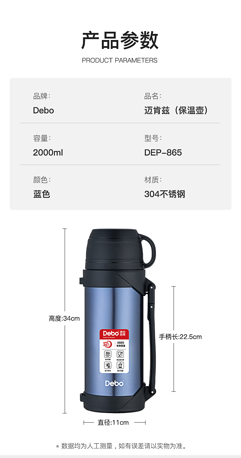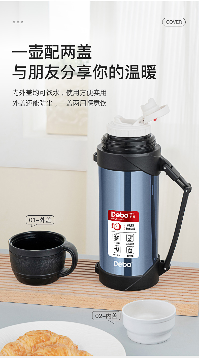Debo德铂-韦尔登 迈肯兹真空保温壶2L 304不锈钢耐腐蚀耐高温 手提/肩背两种方式轻松出行无负担