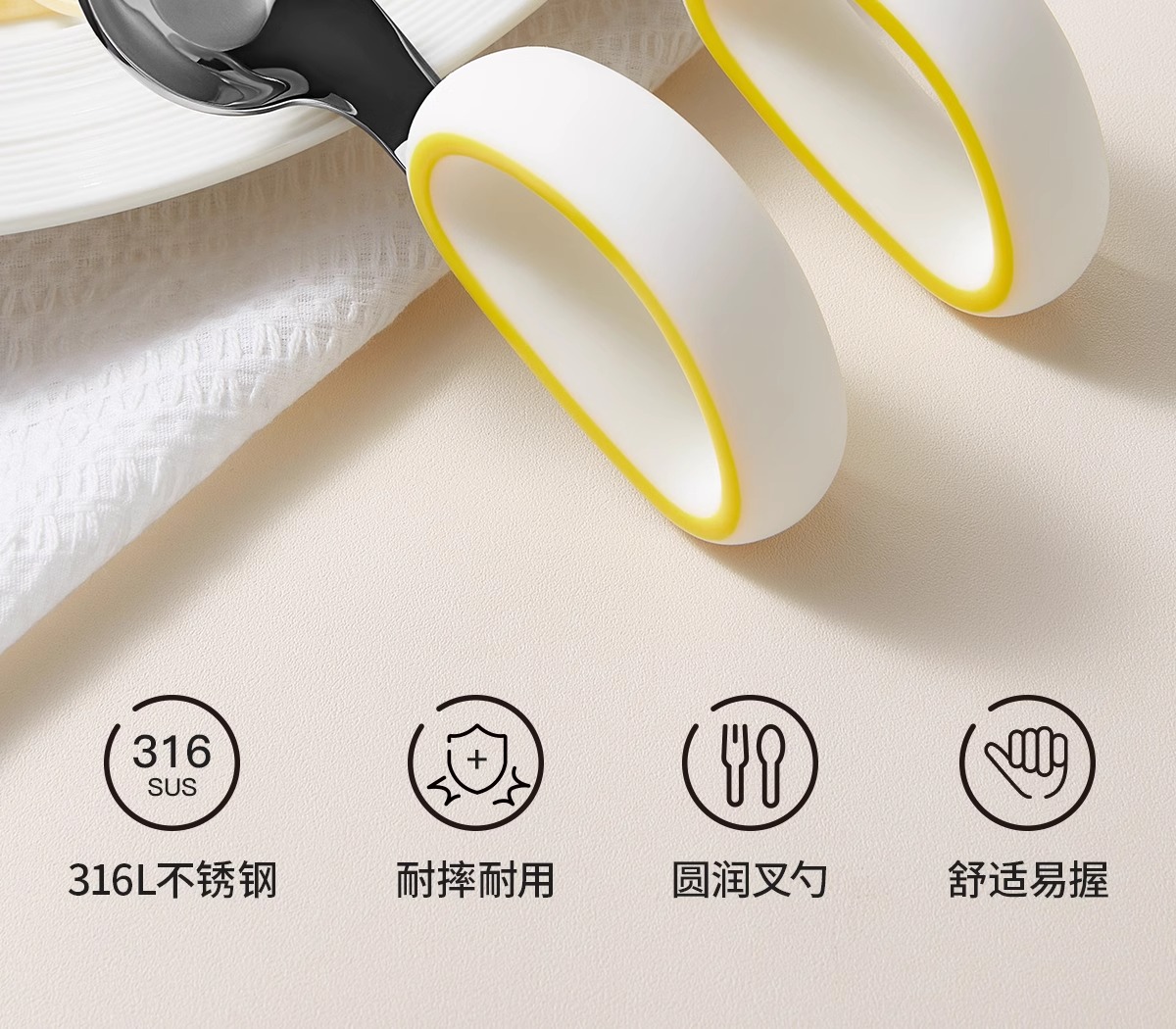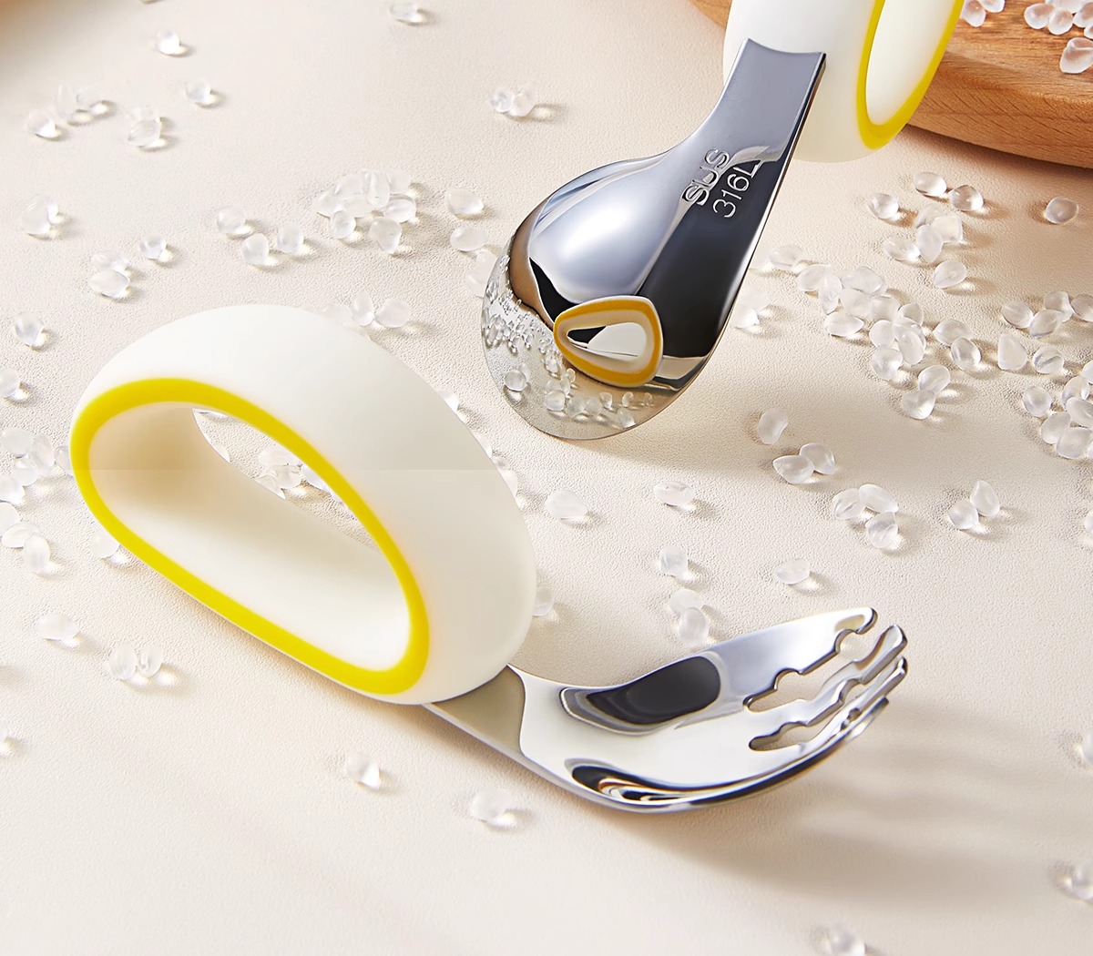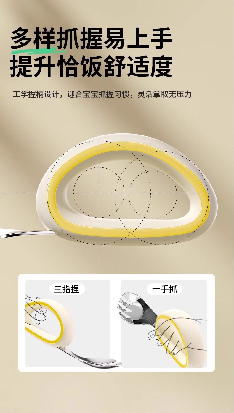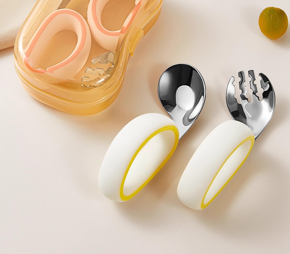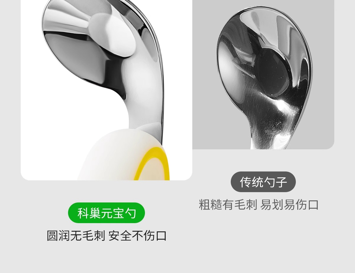 科巢宝宝勺子学吃饭训练婴儿自主进食辅食勺软柄儿童元宝叉勺套装