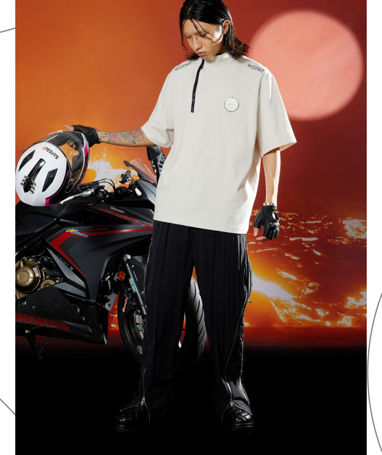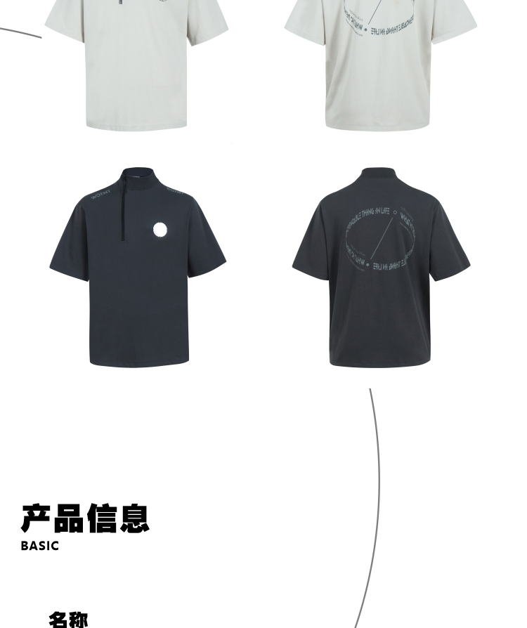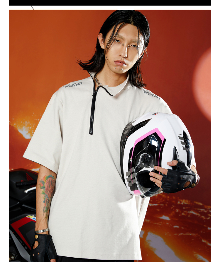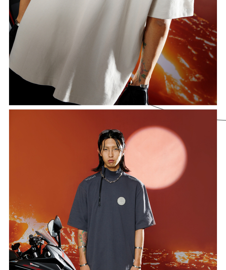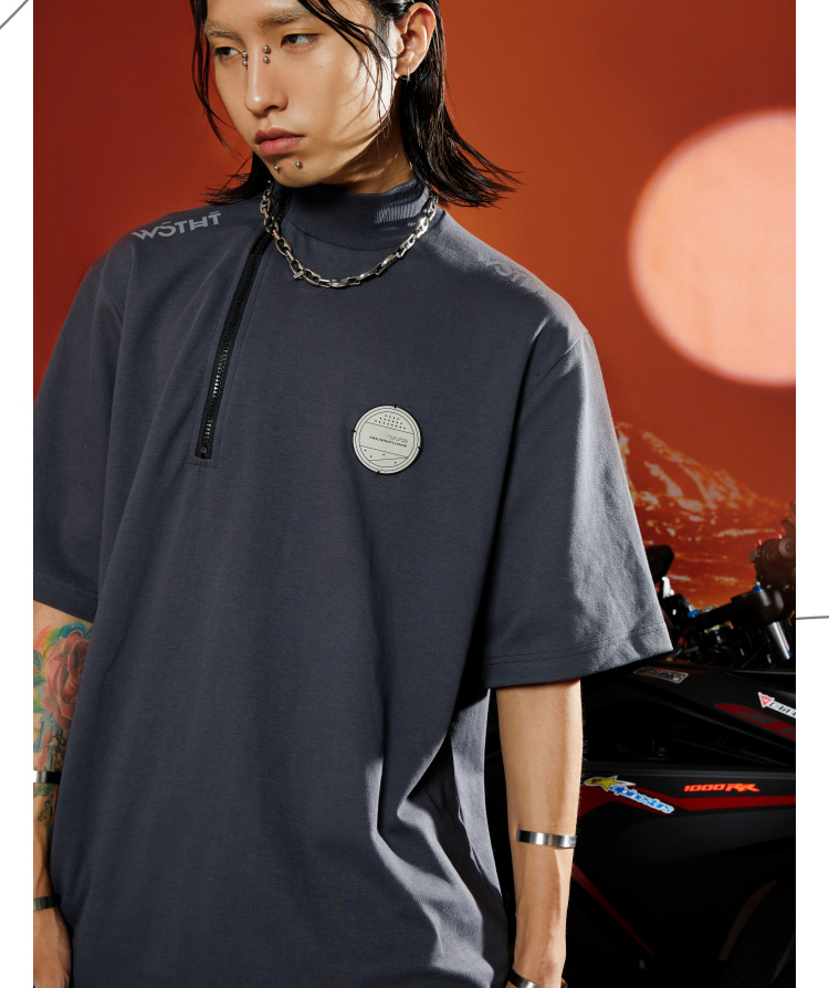 WHISTLEHUNTER(WSTHT)两色情侣基础半高领短袖 金属标主题拉链T恤
