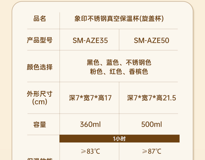 象印保温杯SM-AZE35 350毫升(颜色随机)/个