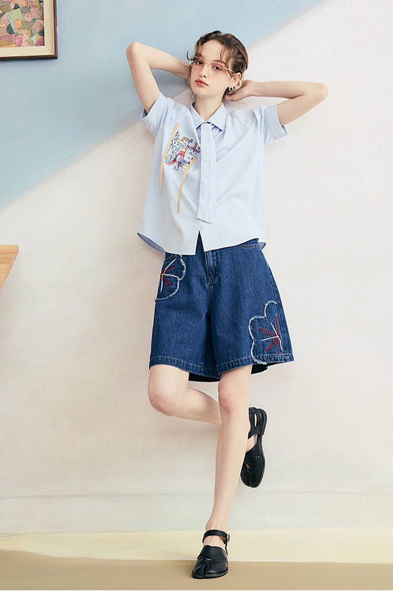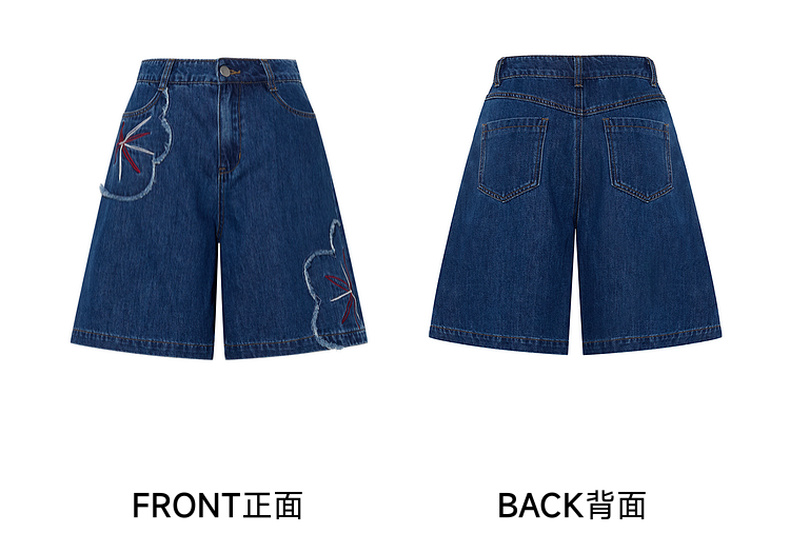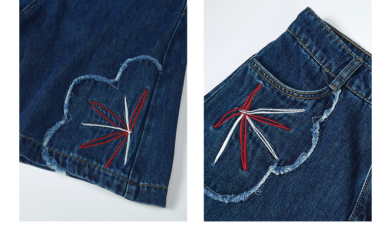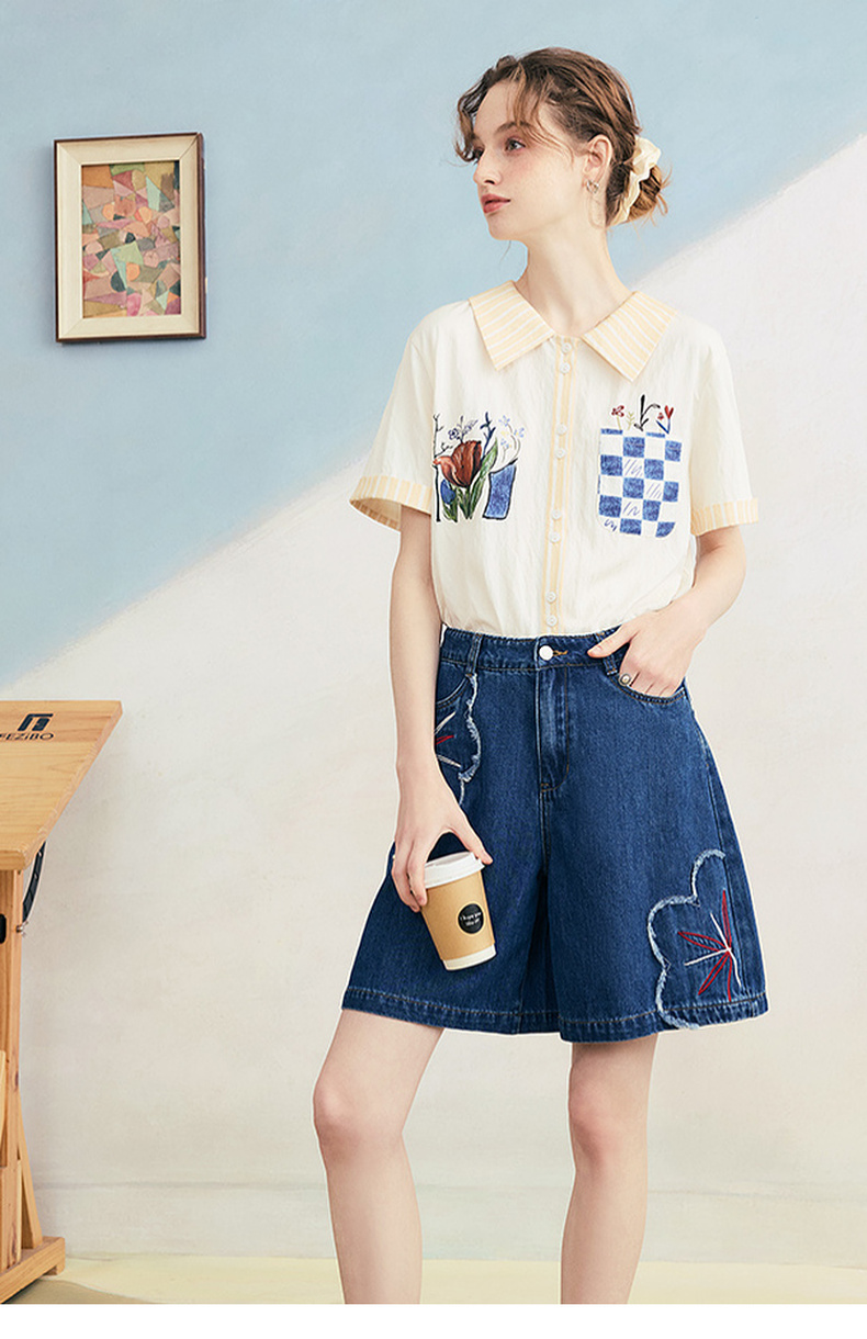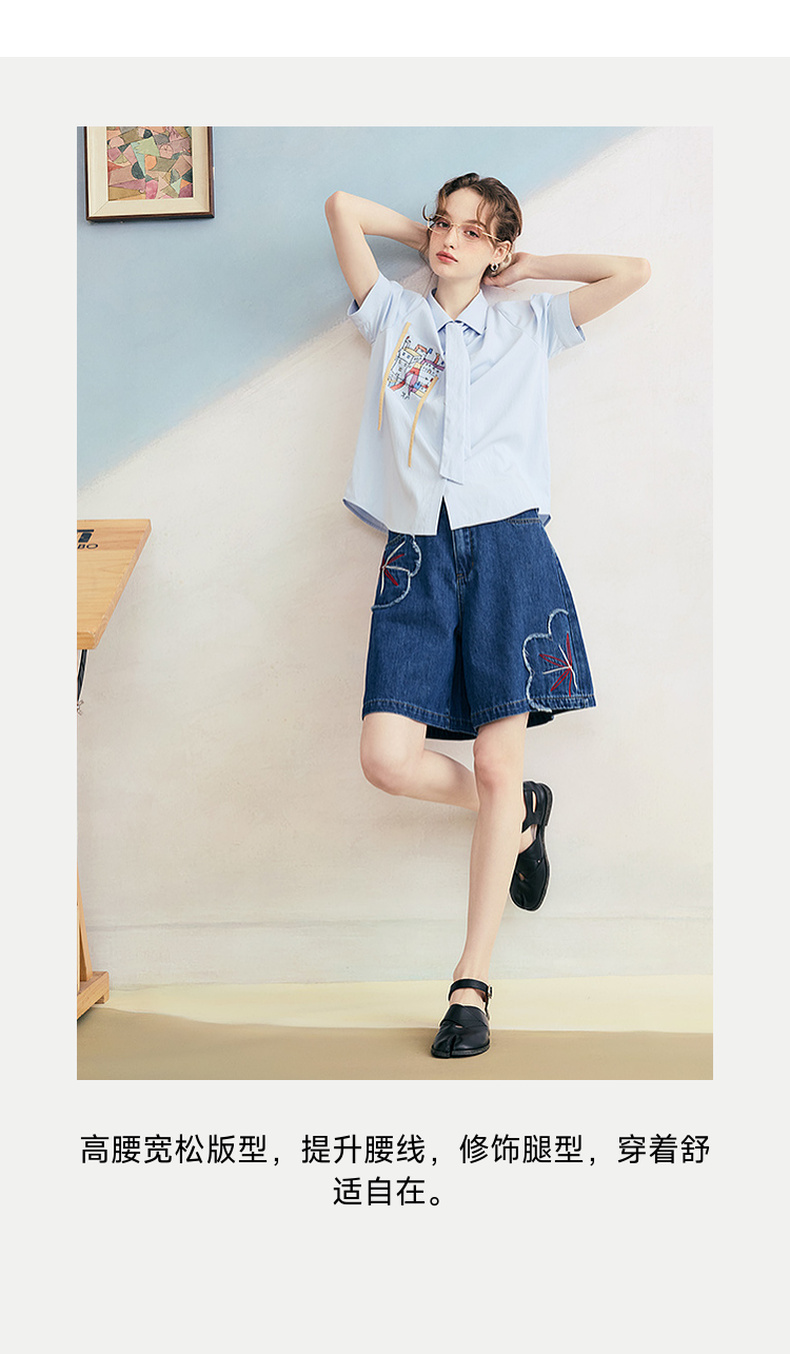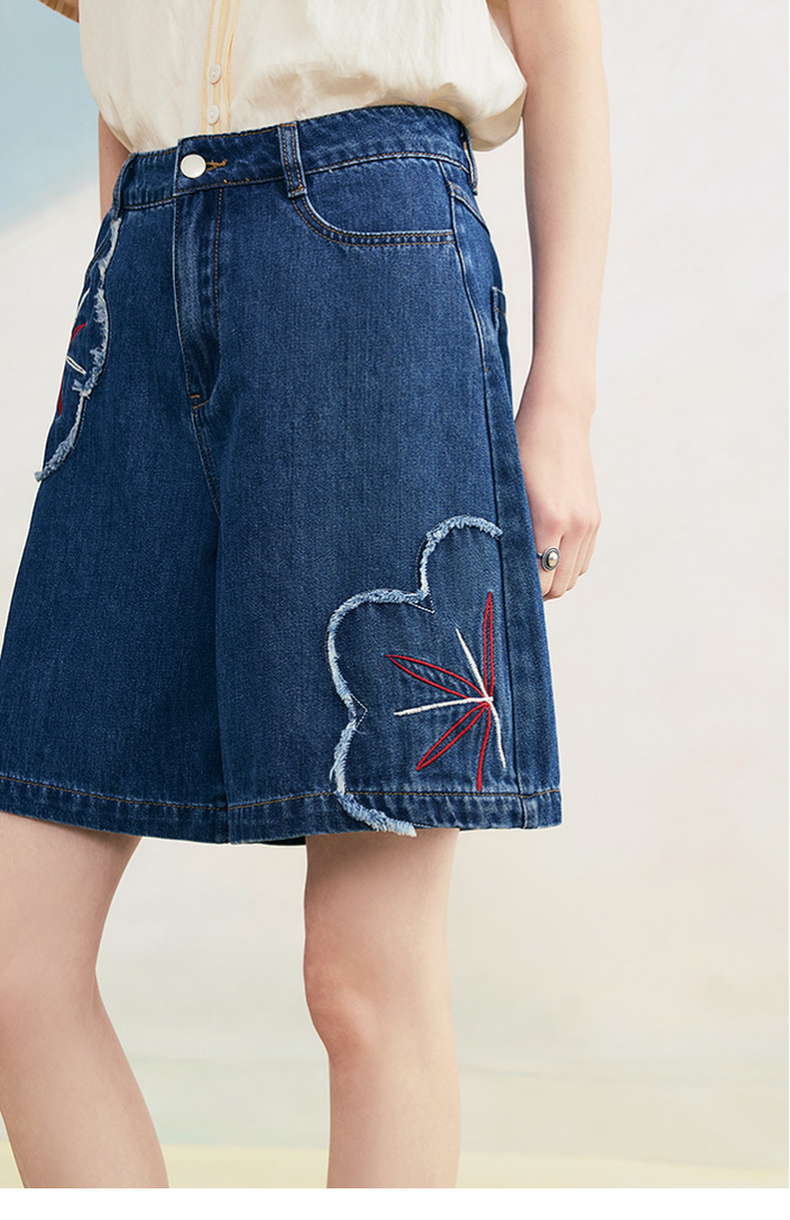 两三事 拾花耳语 2025夏季新款复古毛边花朵绣花高腰牛仔裤女
