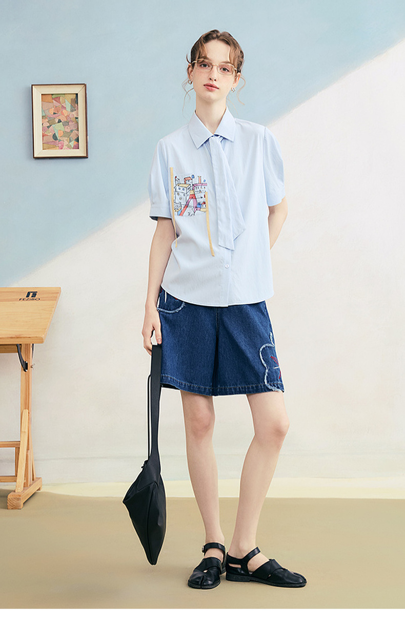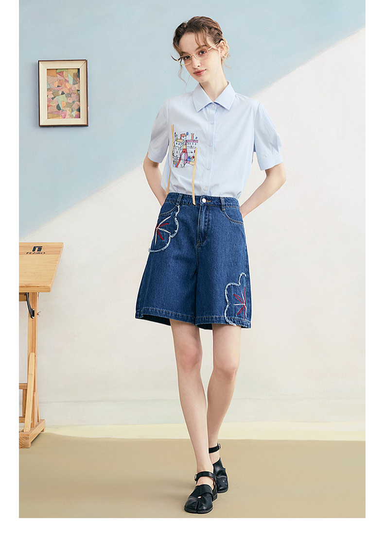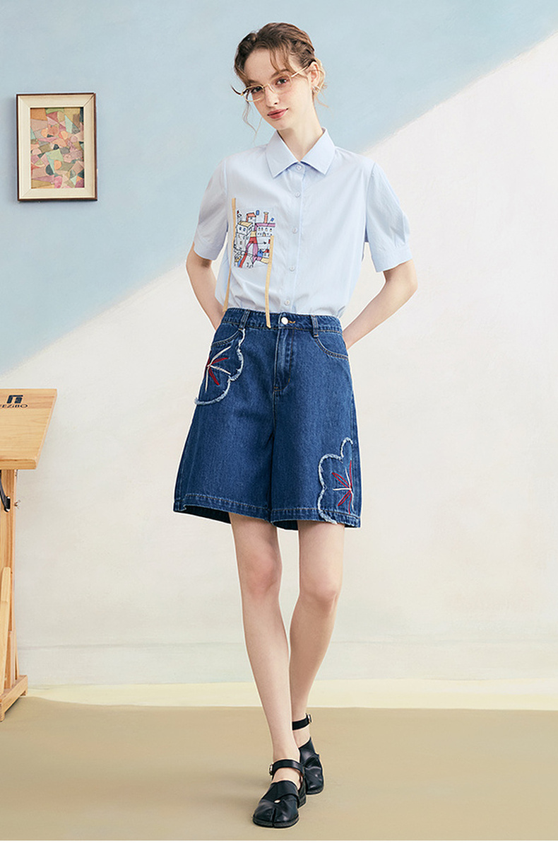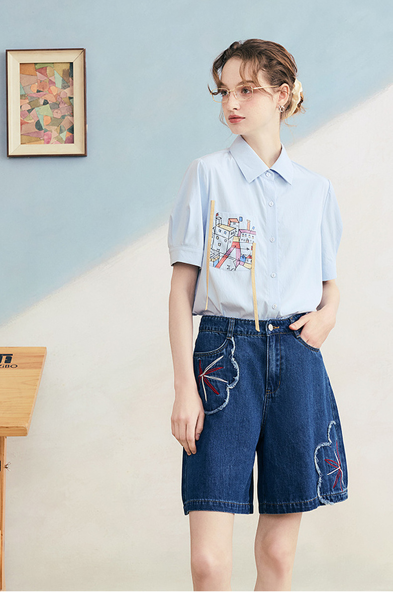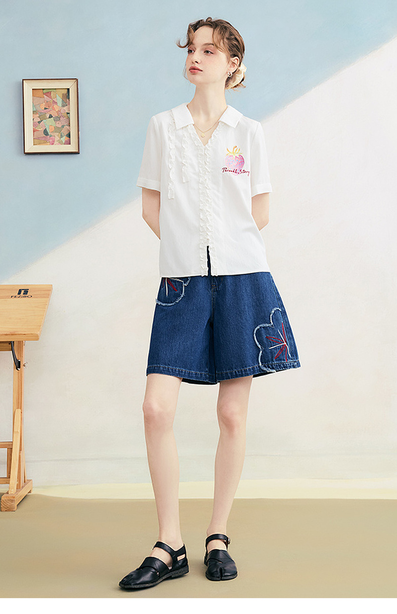 两三事 拾花耳语 2025夏季新款复古毛边花朵绣花高腰牛仔裤女