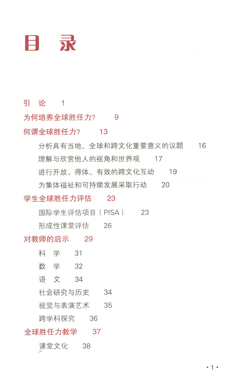 本书为经合组织(OECD)与美国亚洲协会(Asia Society)合作出版的教学指导与培训用书,详细解释了全球胜任力的定义、如何评估、如何教授等,包括方法指导与案例参考。 该书主要包括以下内容:为什么要为全球胜任力而教、 全球胜任力是什么、评估学生的全球胜任力、对教育者的启示、为全球胜任力而教、大规模地开展全球胜任力教育等,为开展全球胜任力的培养的教师培训提供了有效的参考和借鉴。本书适合于师范类专业大中专学生和大中小学教师阅读。