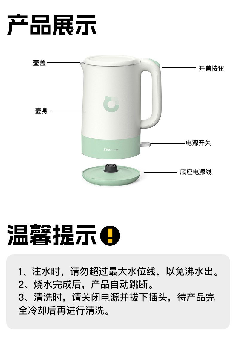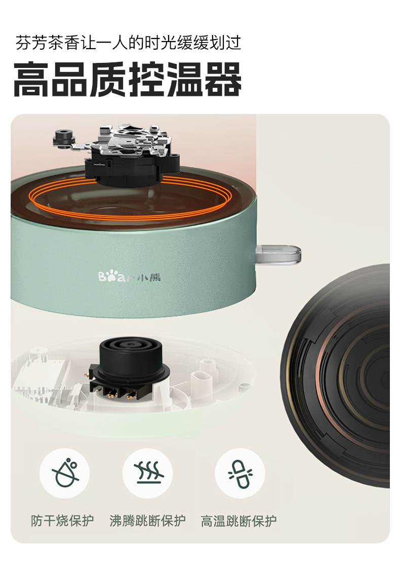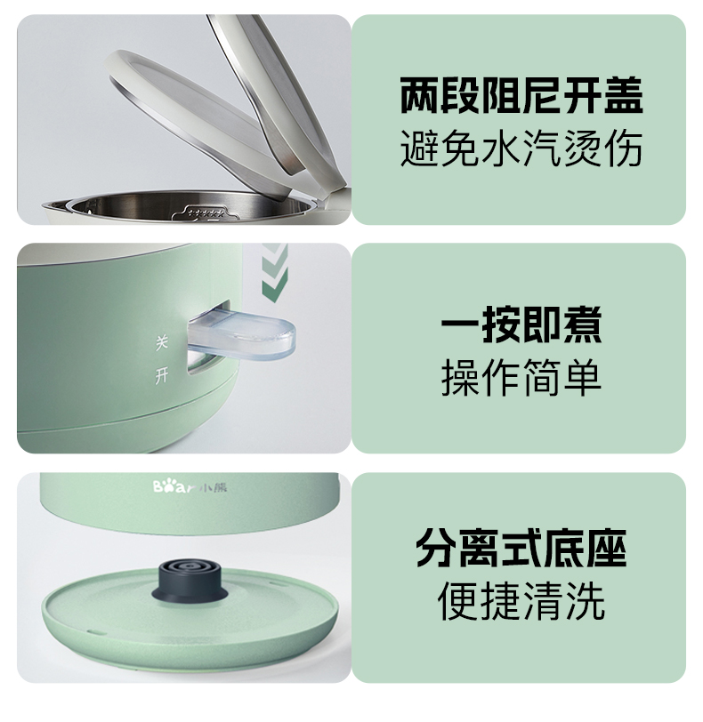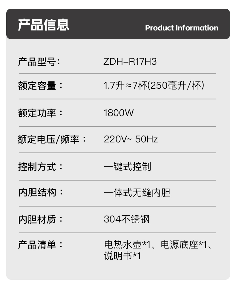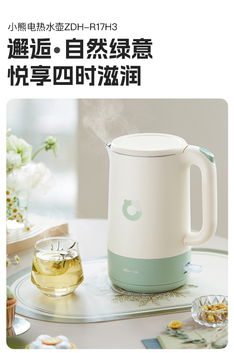 小熊电热水壶ZDH-R17H3-1.7L家用自动跳断烧水壶不锈钢