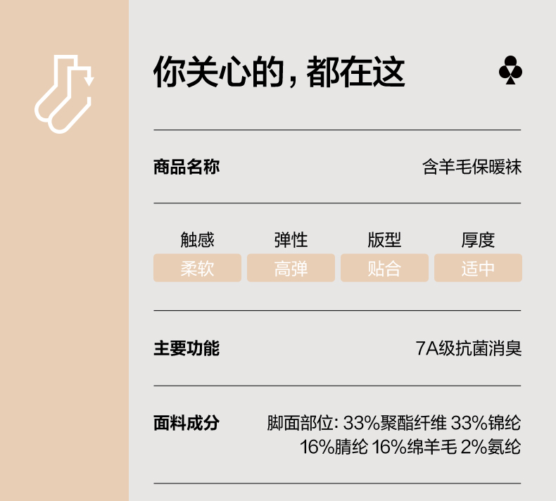有棵树美利奴羊毛7A抗菌女士袜子3双装-S8001