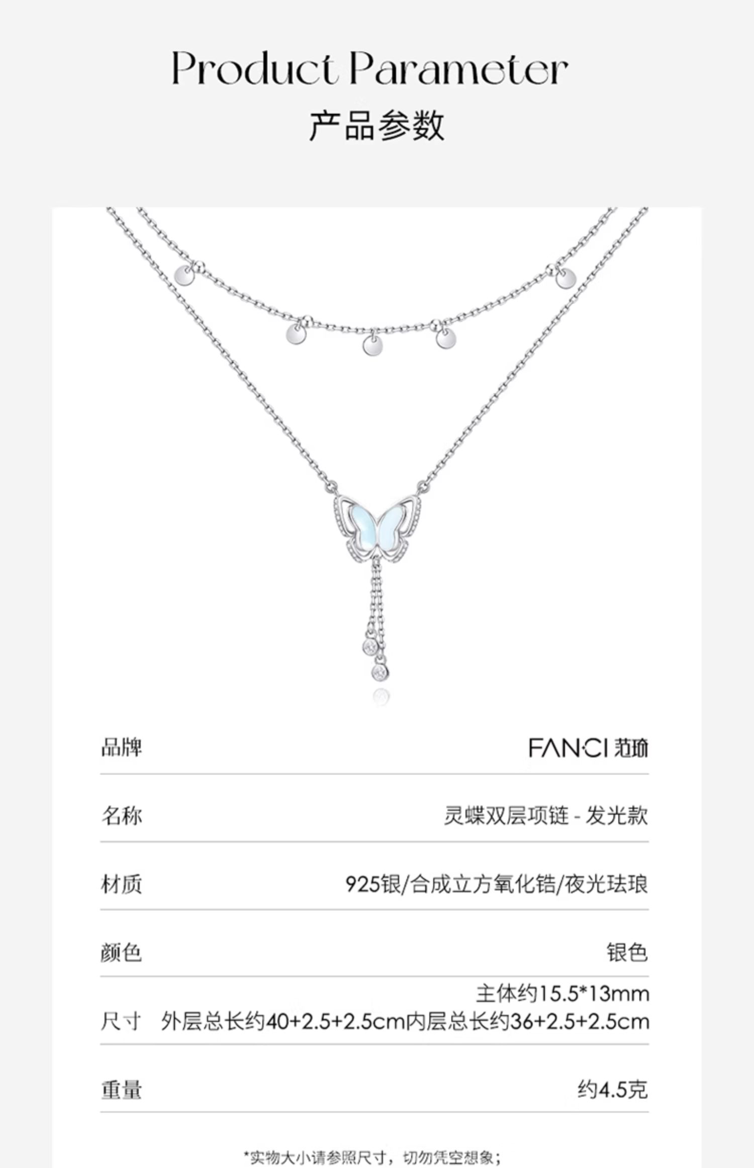 Fanci范琦银饰 灵蝶双层项链发光款轻奢气质锁骨链时尚送女友礼物