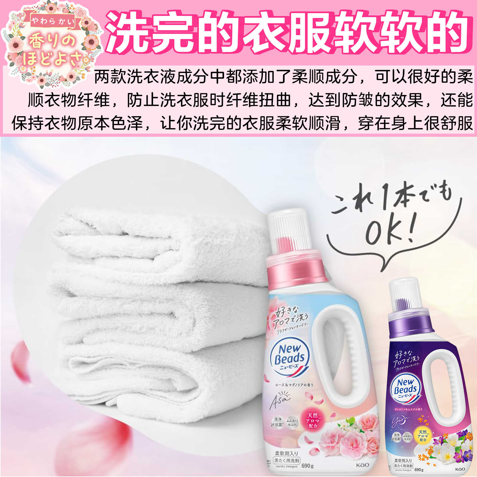 花王洗衣液 玫瑰花香&薰衣草香【正装+替换装】