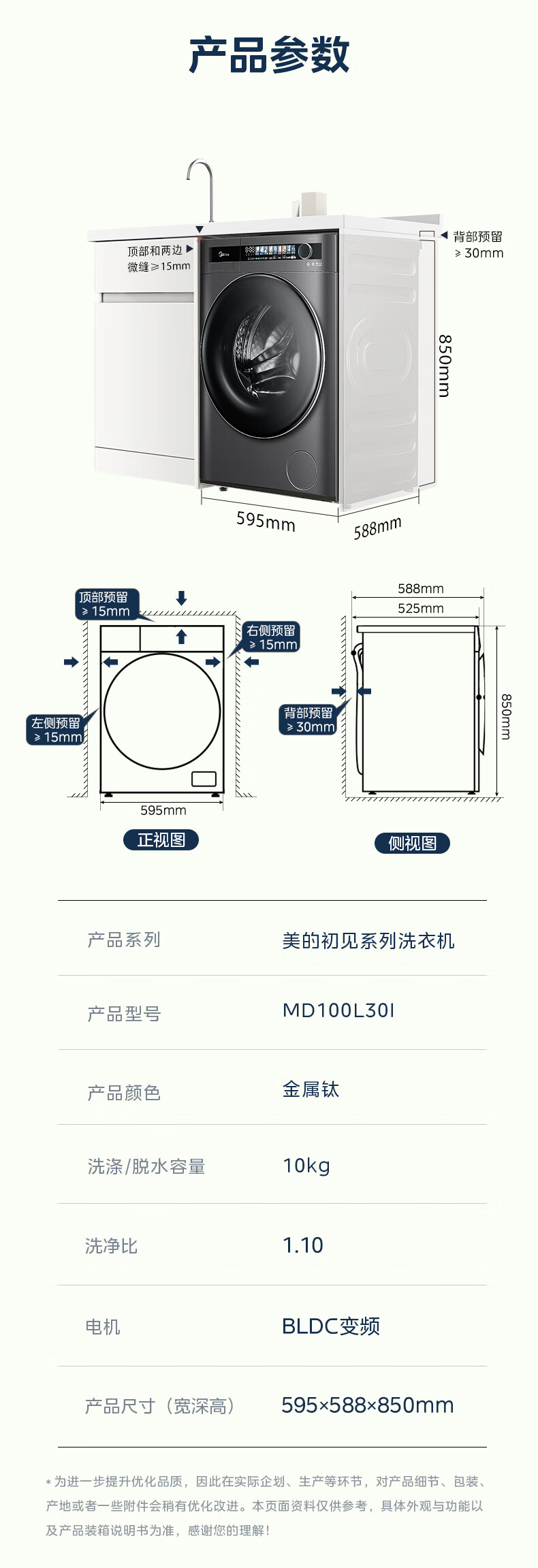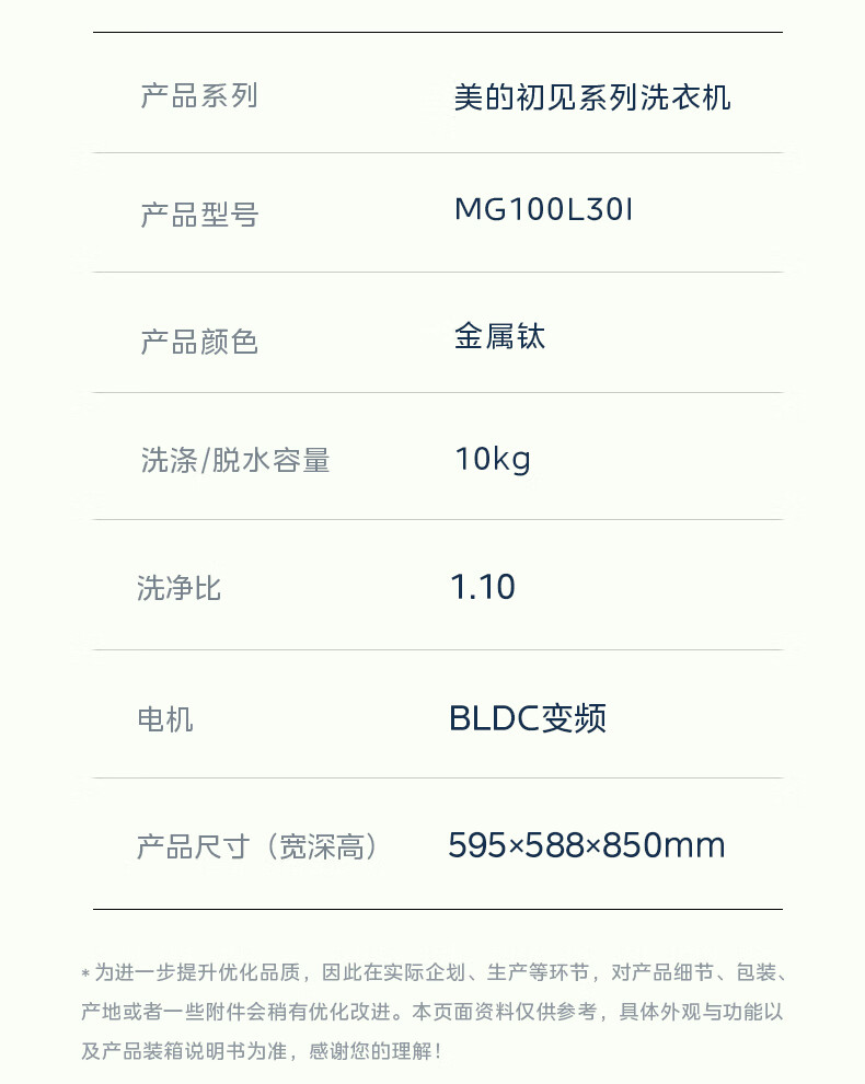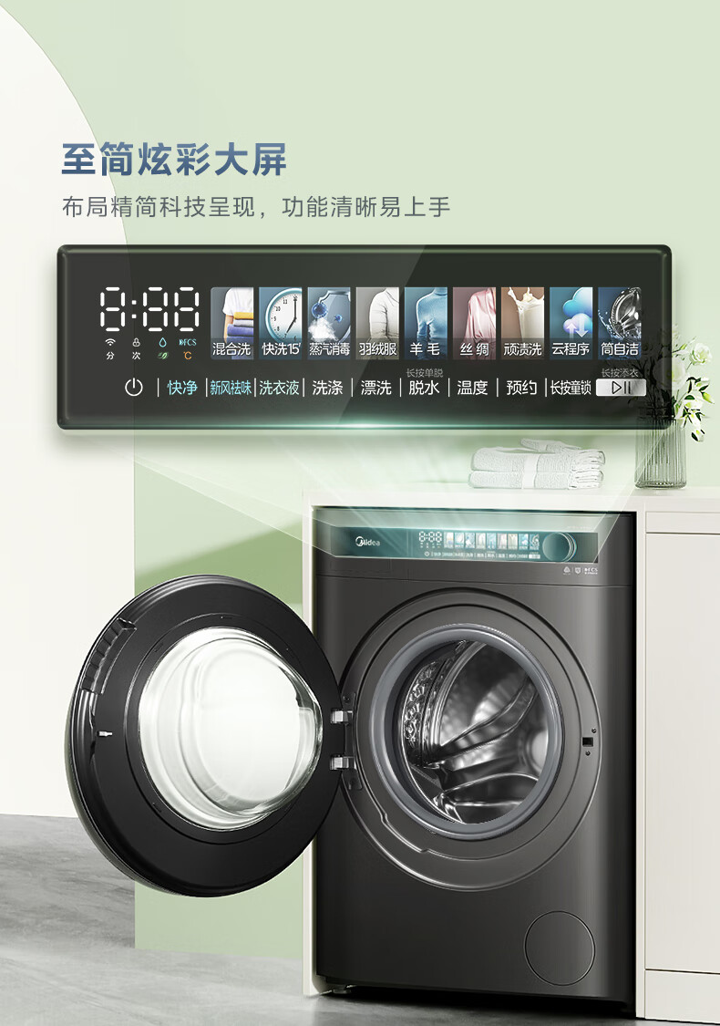 美的(Midea)10公斤滚筒洗衣机全自动 母婴儿童内衣除螨除菌高温洗涤大容量变频 MD100L30I