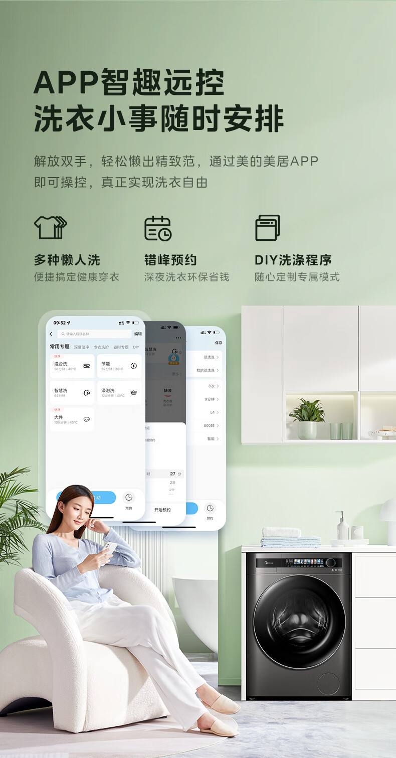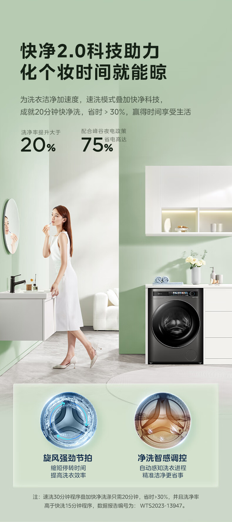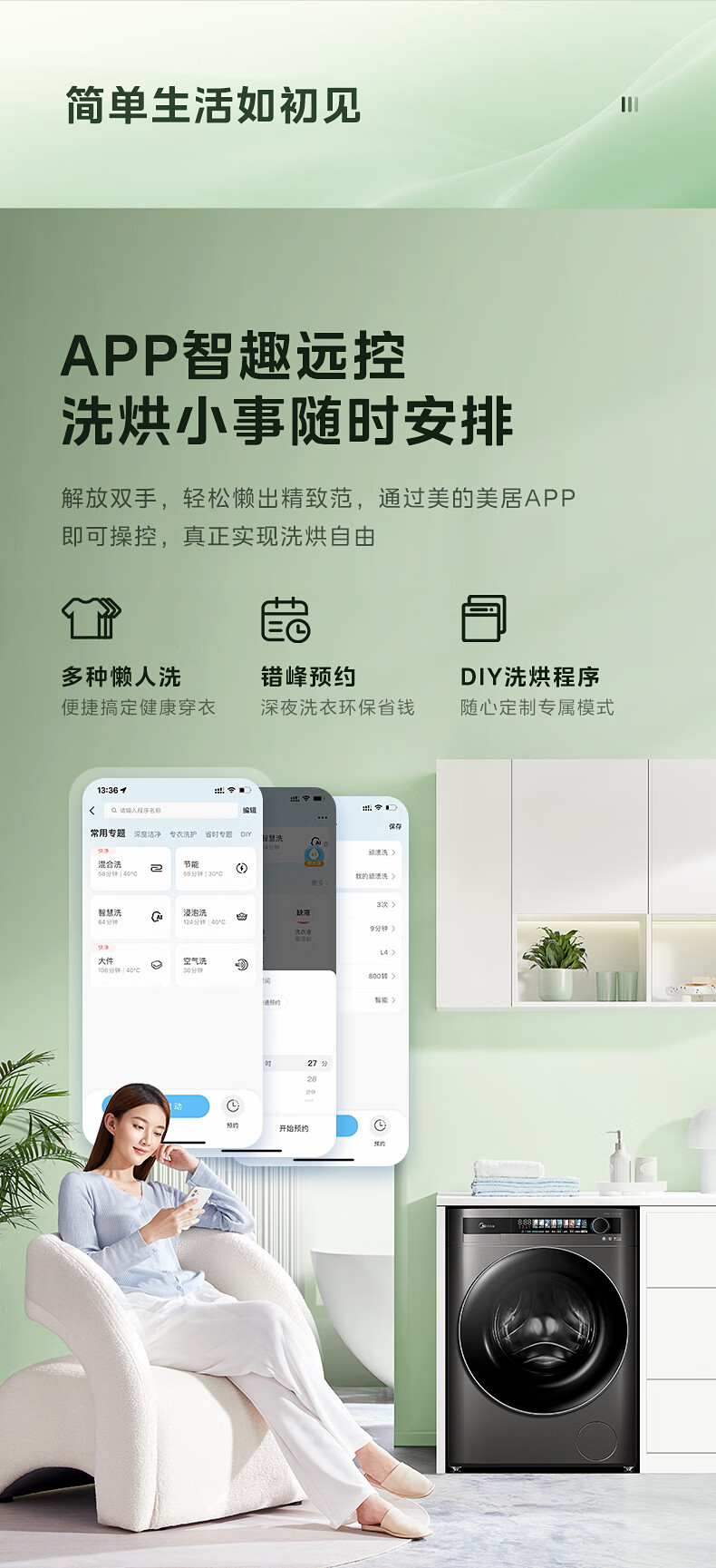 美的(Midea)10公斤滚筒洗衣机全自动 母婴儿童内衣除螨除菌高温洗涤大容量变频 MD100L30I