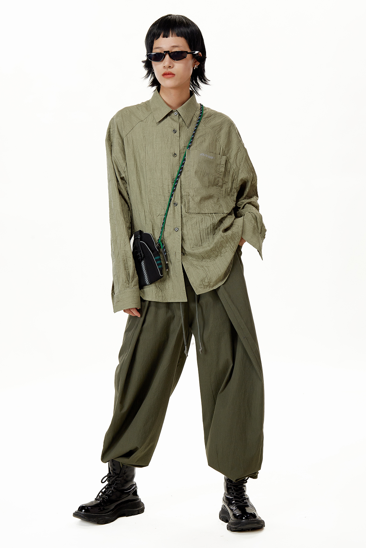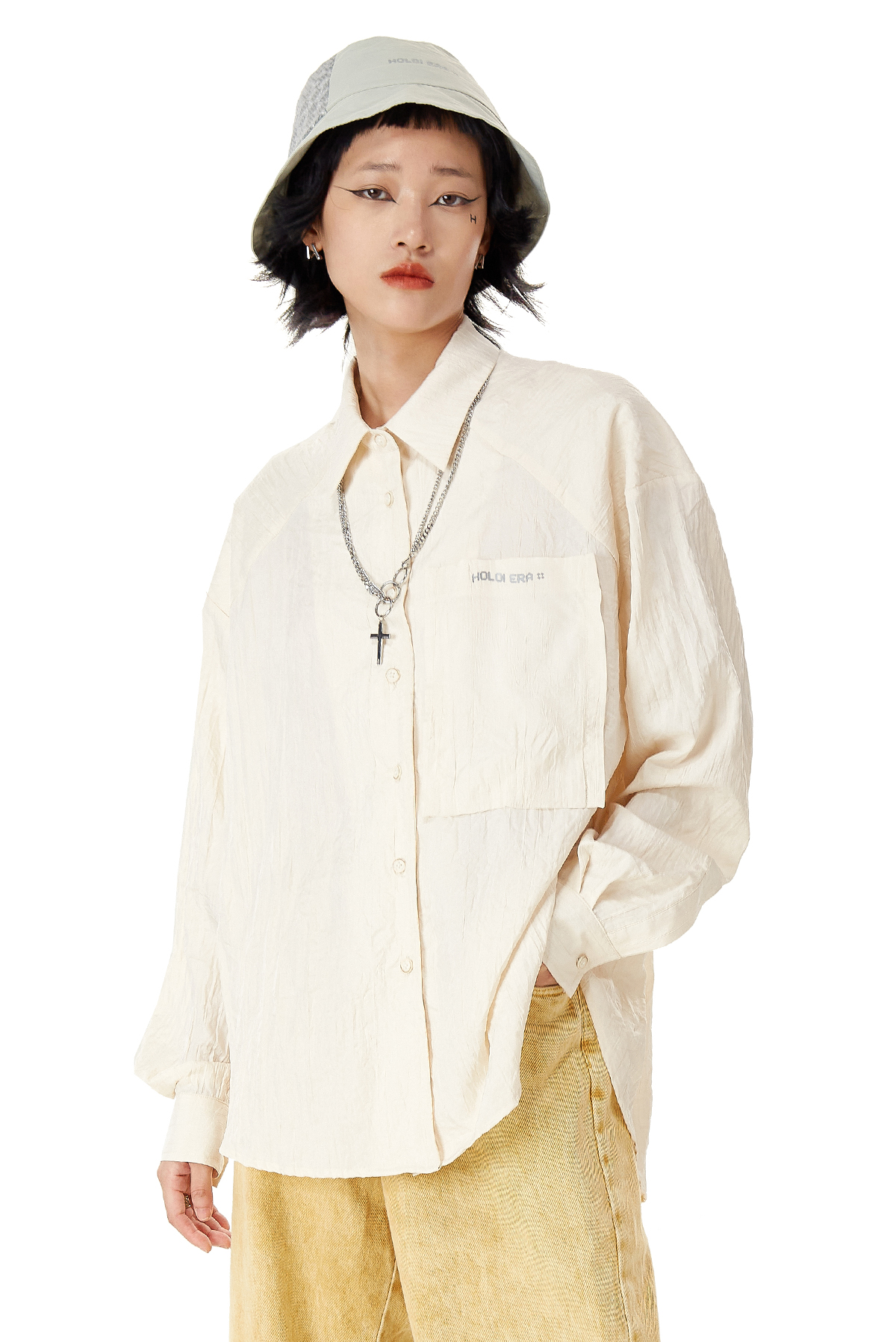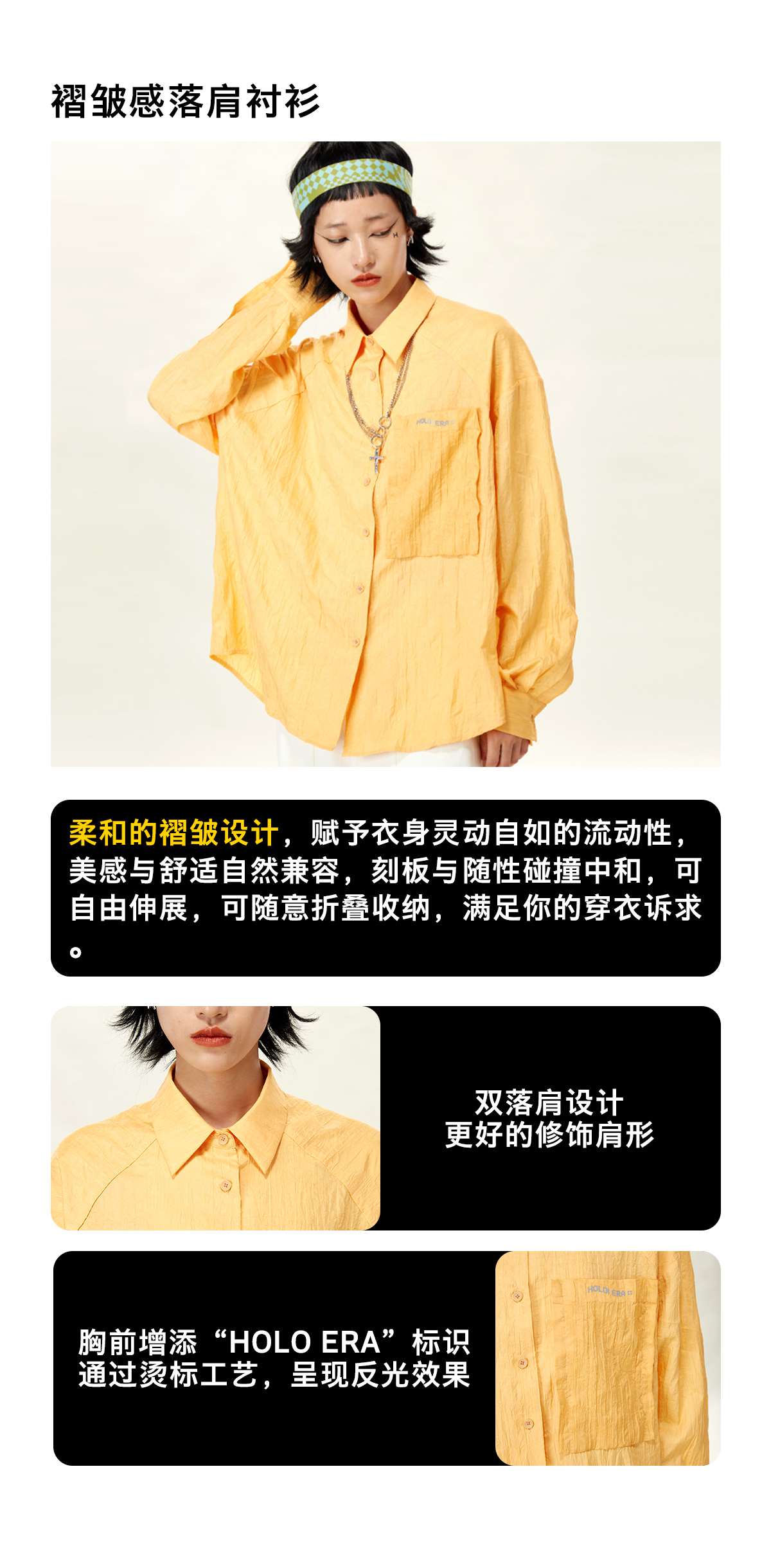 HOLONOMIC 原创设计褶皱感落肩宽松长袖衬衫