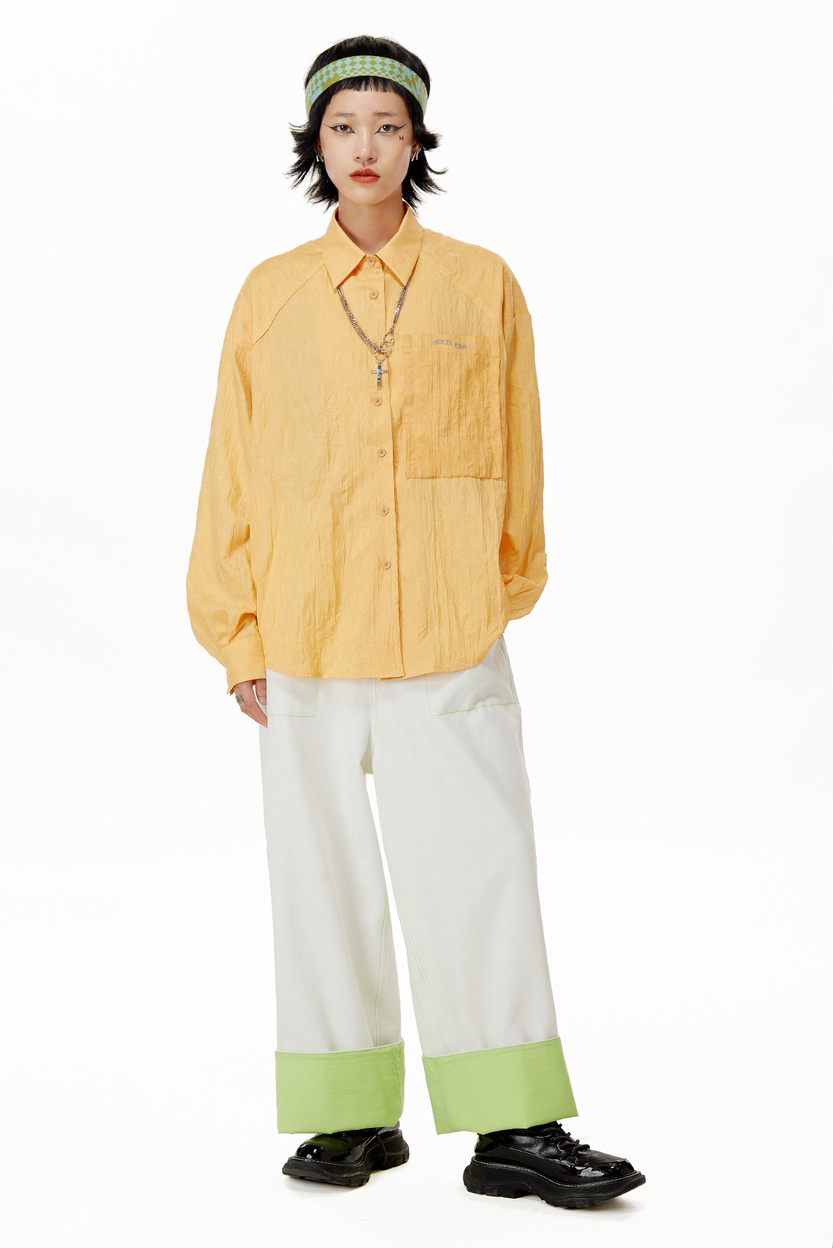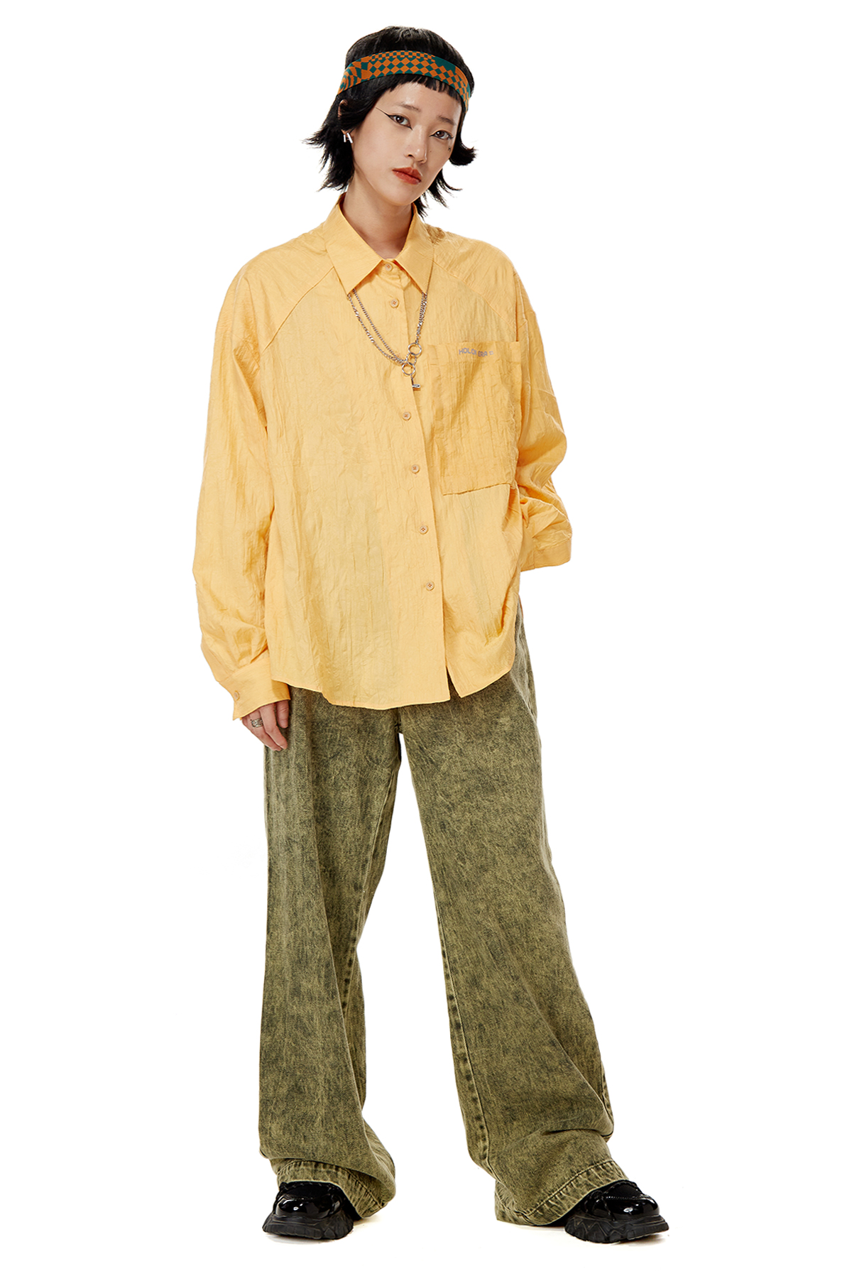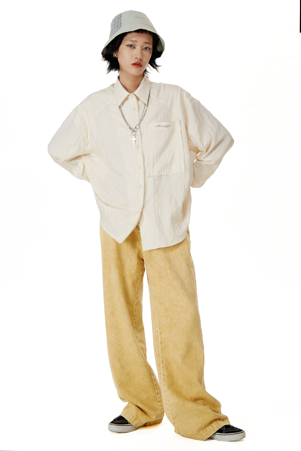 HOLONOMIC 原创设计褶皱感落肩宽松长袖衬衫