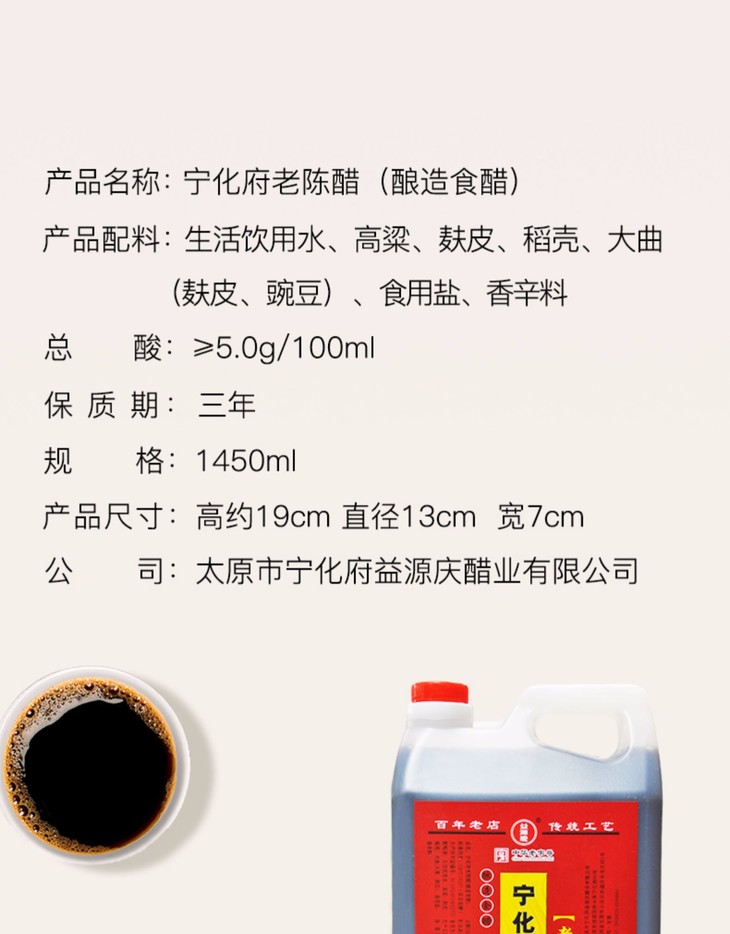 宁化府老陈醋1450ml粮食酿造山西特产中华老字号宁化府陈醋