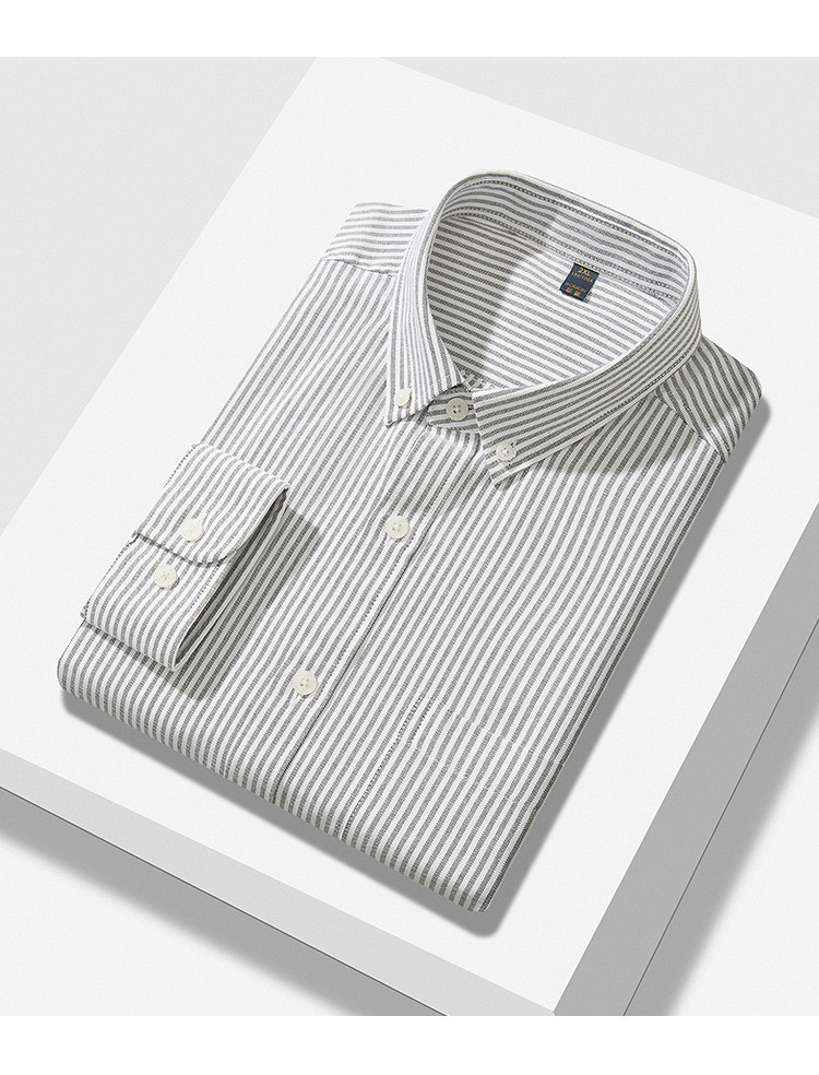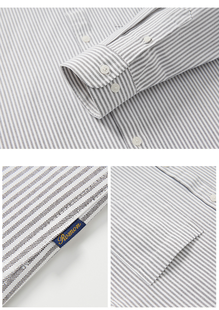 罗蒙男士长袖条纹衬衫时尚休闲舒适有型百搭日常简约长袖衬衣