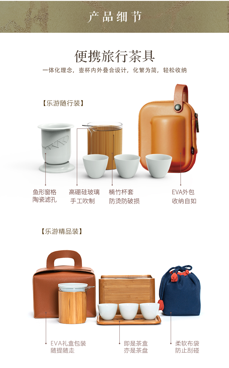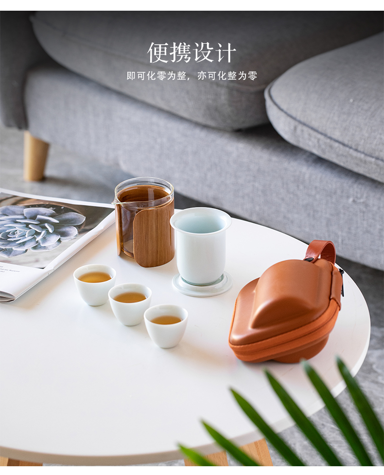 祥福乐游旅行茶具套装一壶三杯便携车载陶瓷套组带包旅游功夫茶具套组