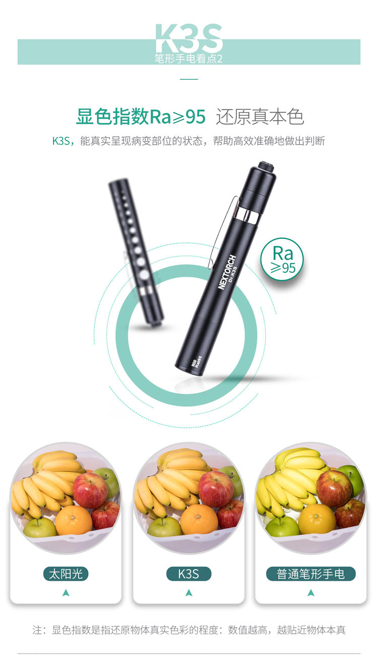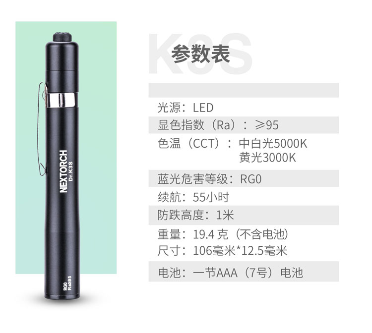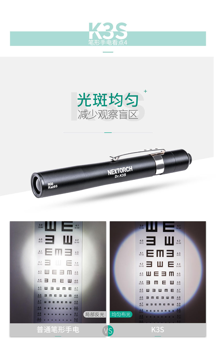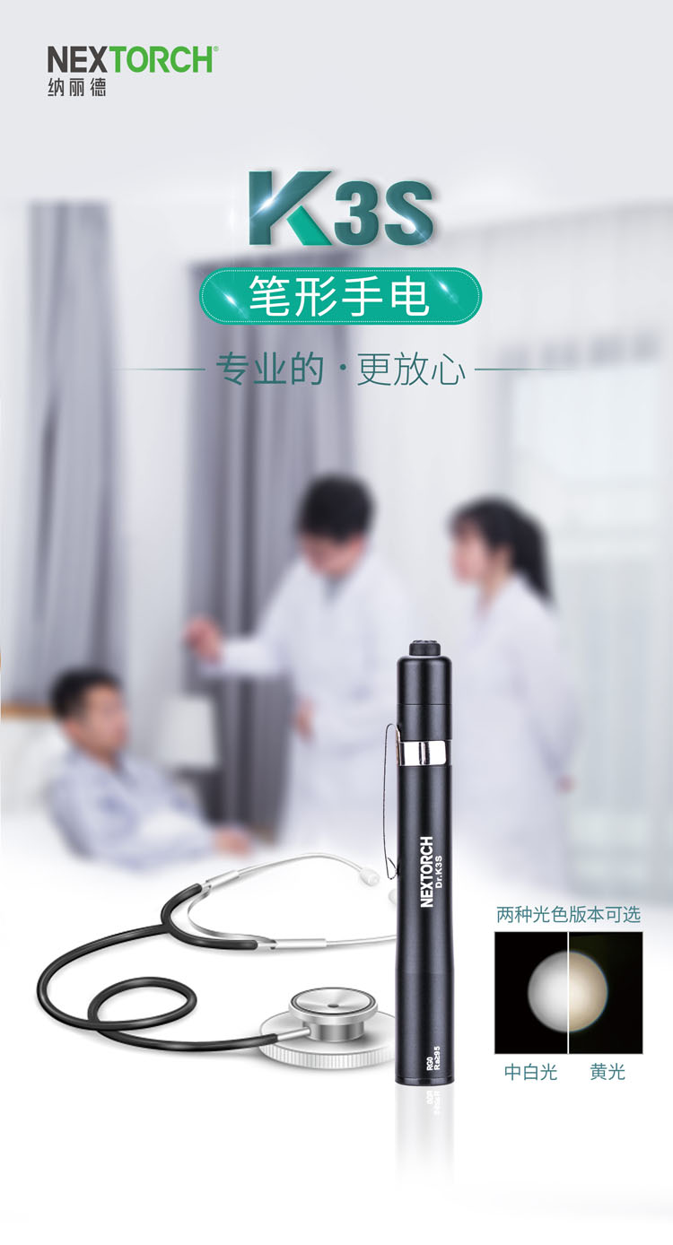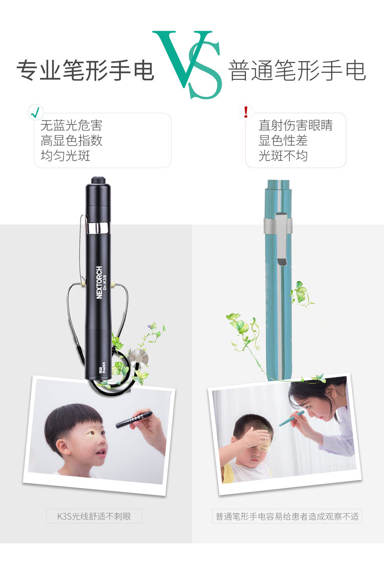 纳丽德K3S瞳孔笔带刻度耳鼻喉眼科检查笔式小手电筒
