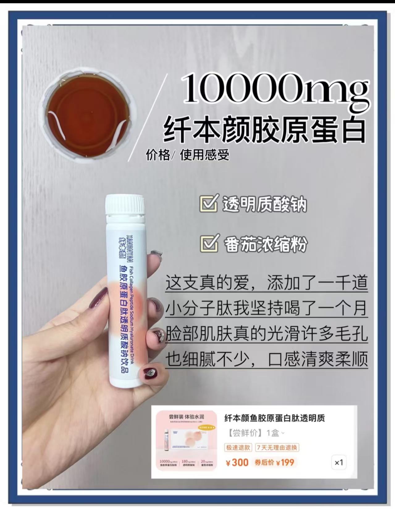 纤本颜鱼胶原蛋白肽透明质酸钠饮品来救场,