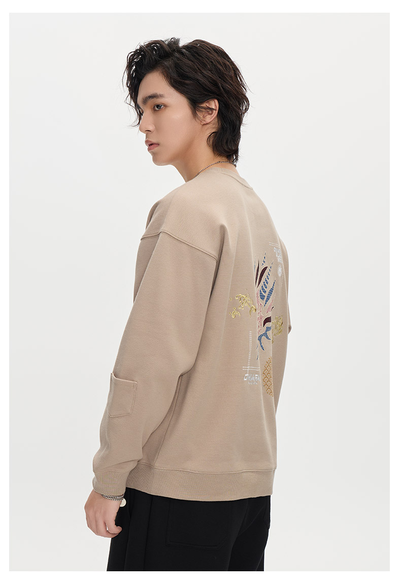 ONIARAI/鬼洗25秋冬复古日系和柄纹样仿拼布薄绒卫衣男 B240154