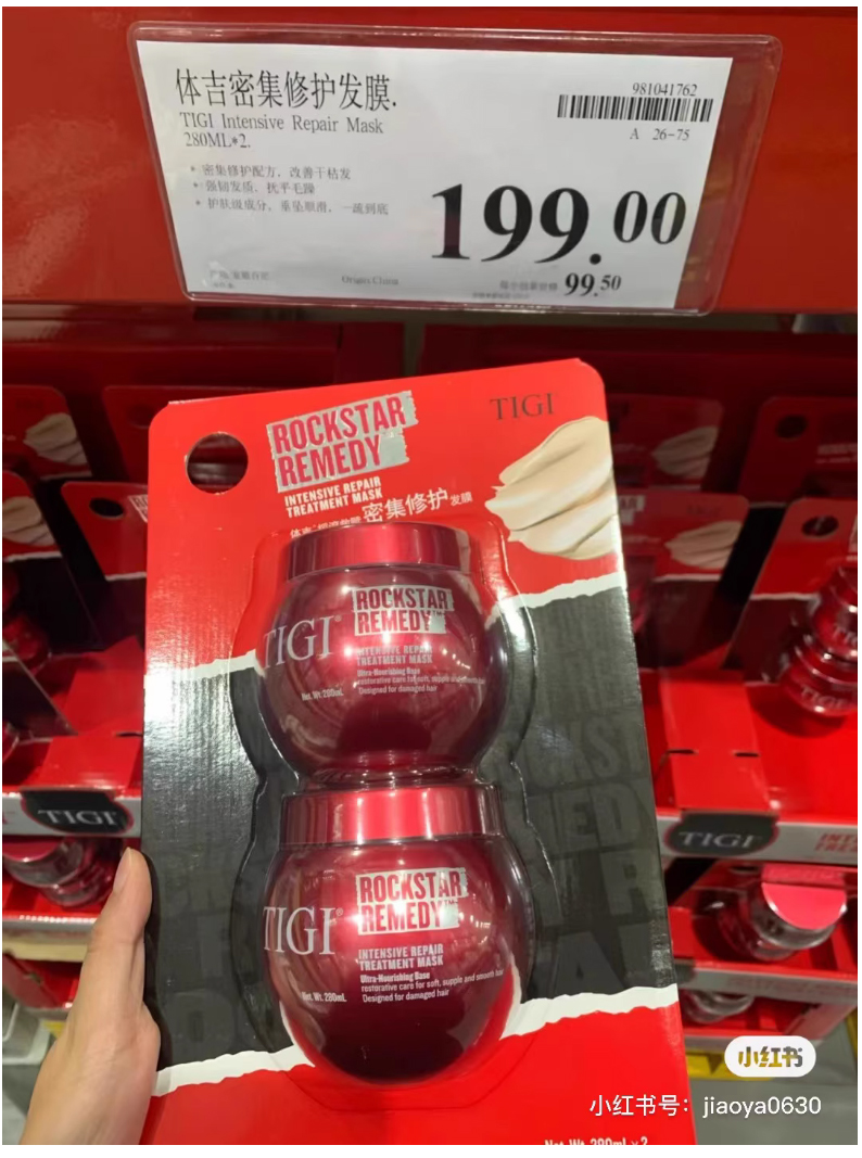 这个牌子的发膜在山姆都要99.5元一个!山姆选中的是受众群体更广的红色款,这款是黄色锁色款的,适合染发人群,偏小众,不过省下的钱都够你买几盒染发剂了!!如果你刚好染过头发,这样的话就太酷辣!