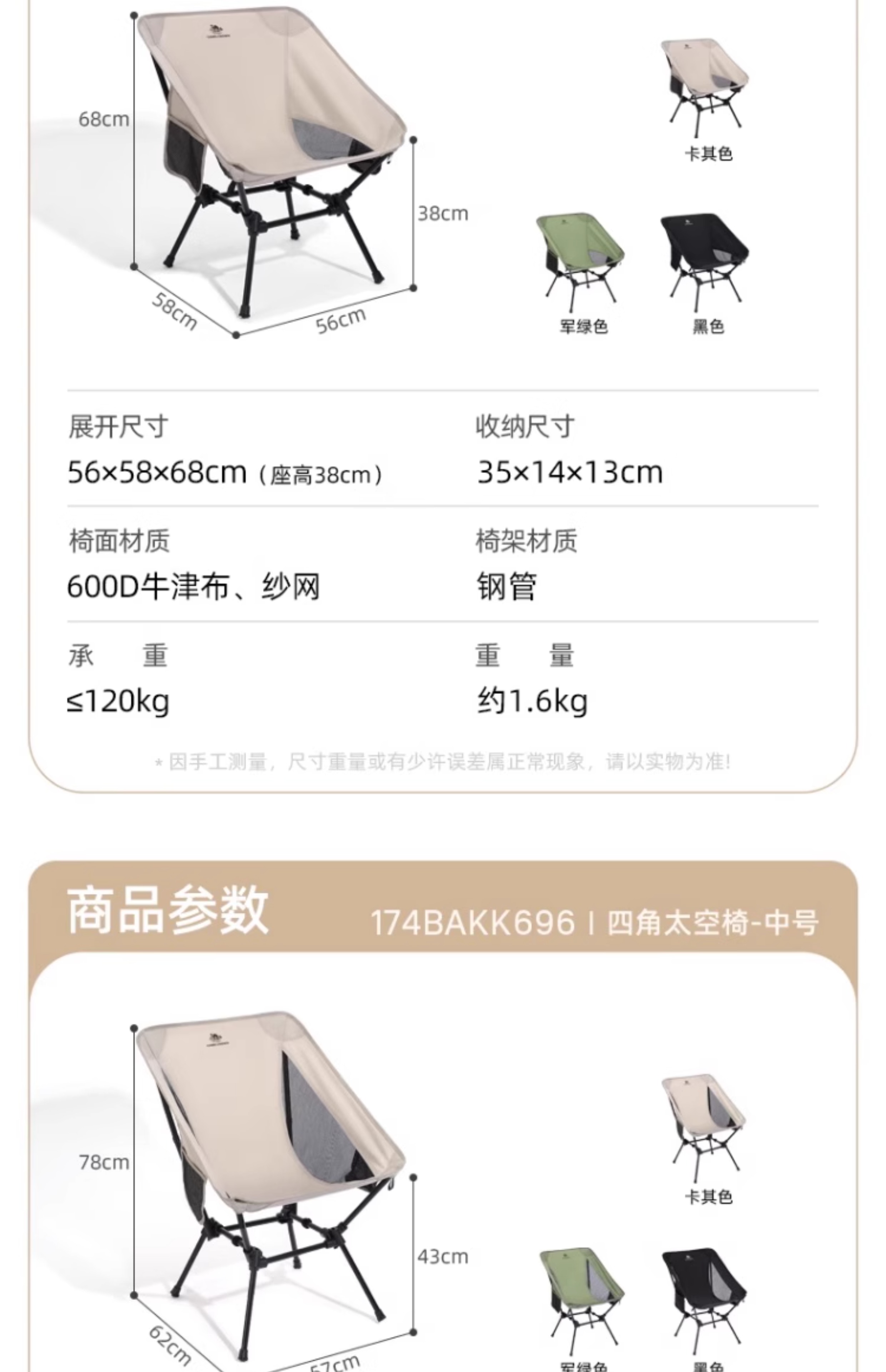 骆驼户外折叠椅野外露营椅野营四角太空椅钓鱼写生躺椅野餐椅子 174BAKK695_174BAKK696_174BL03686