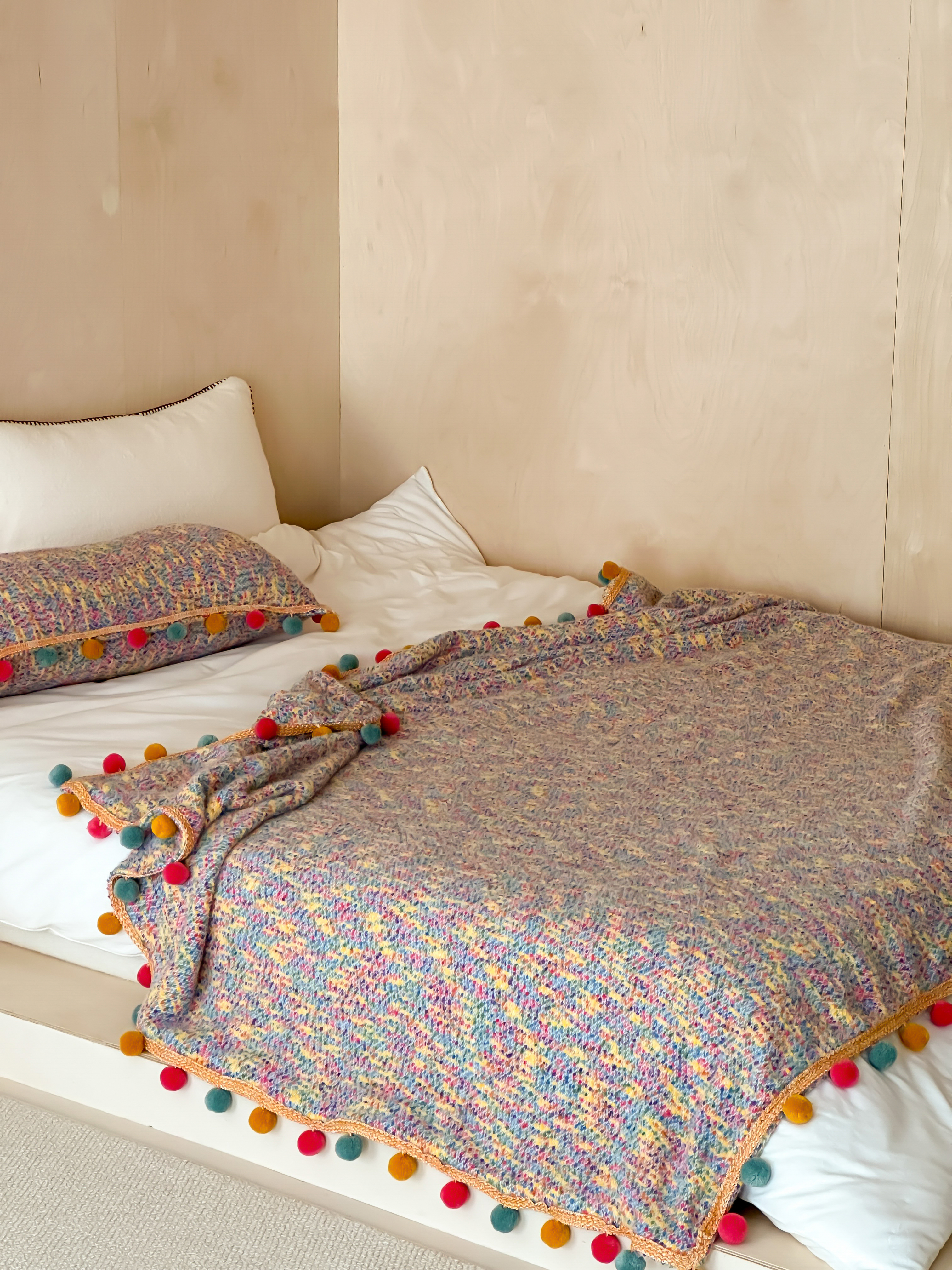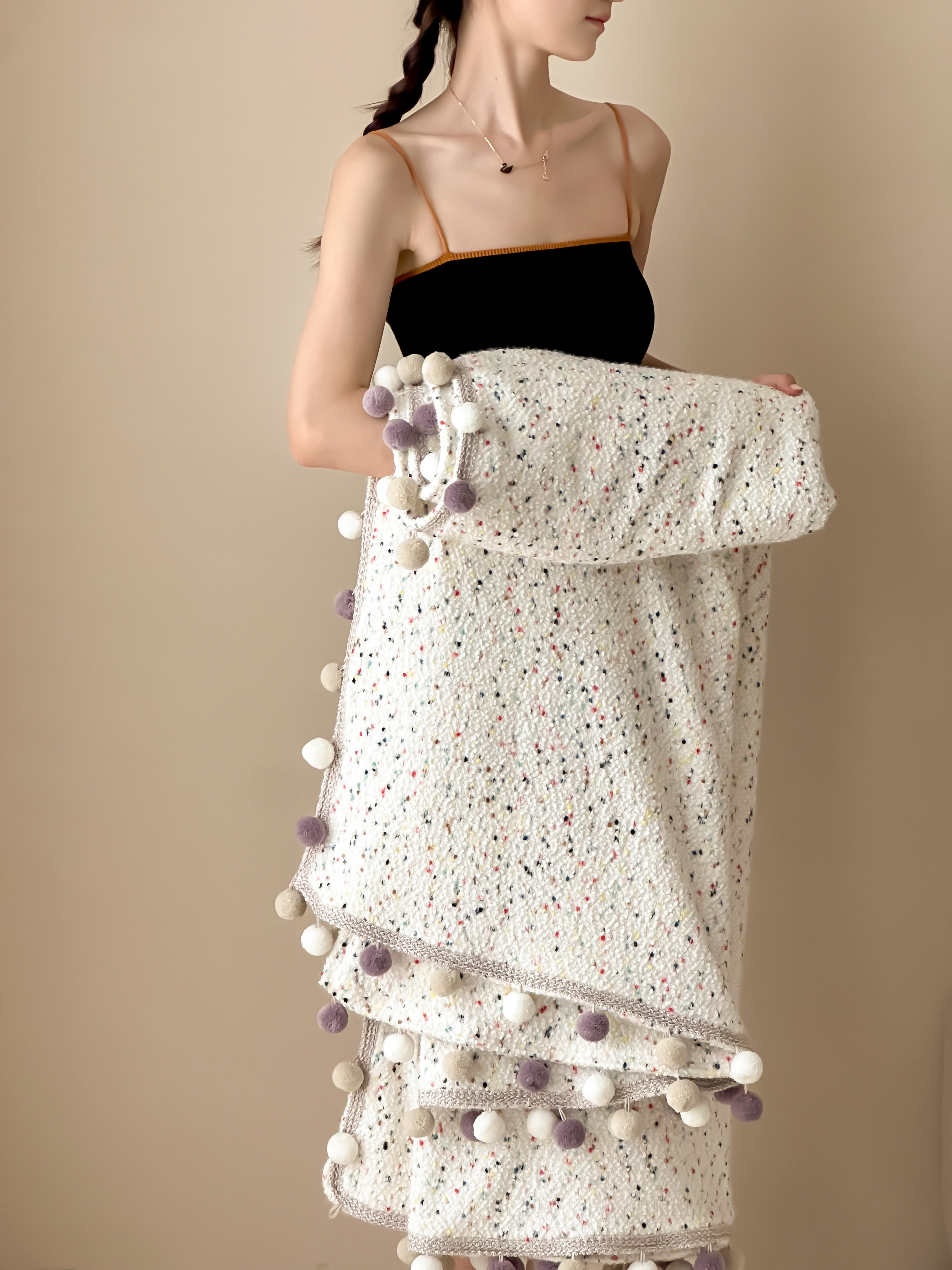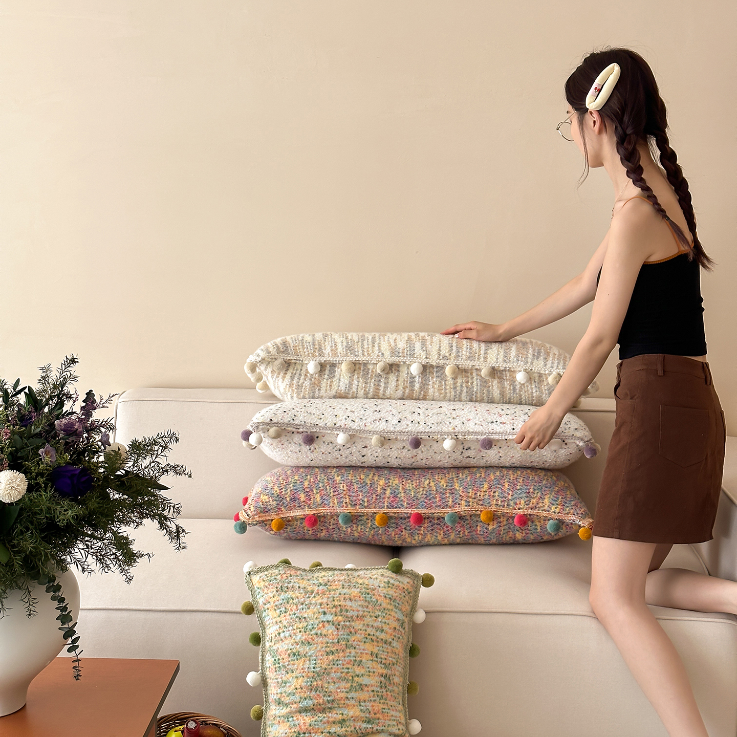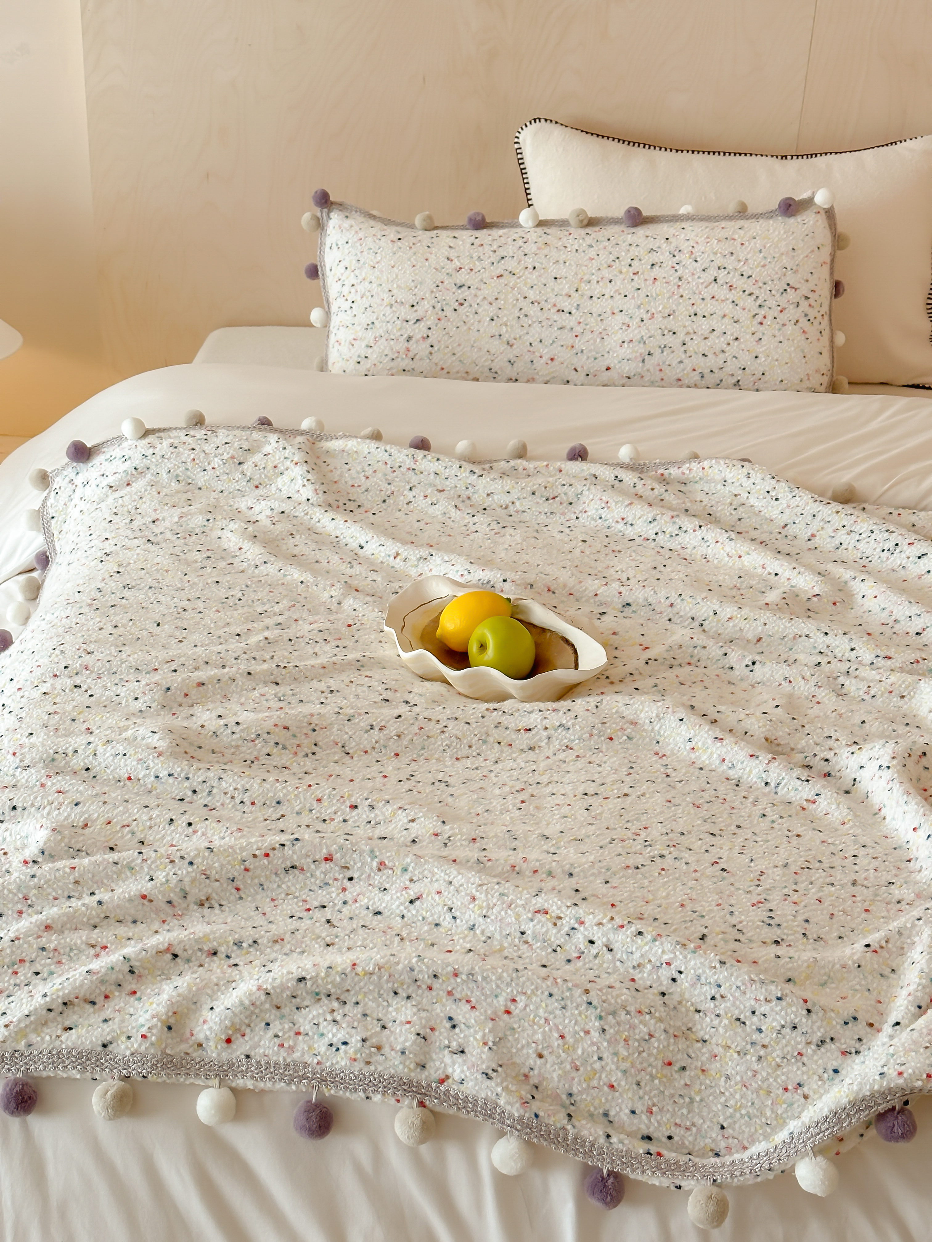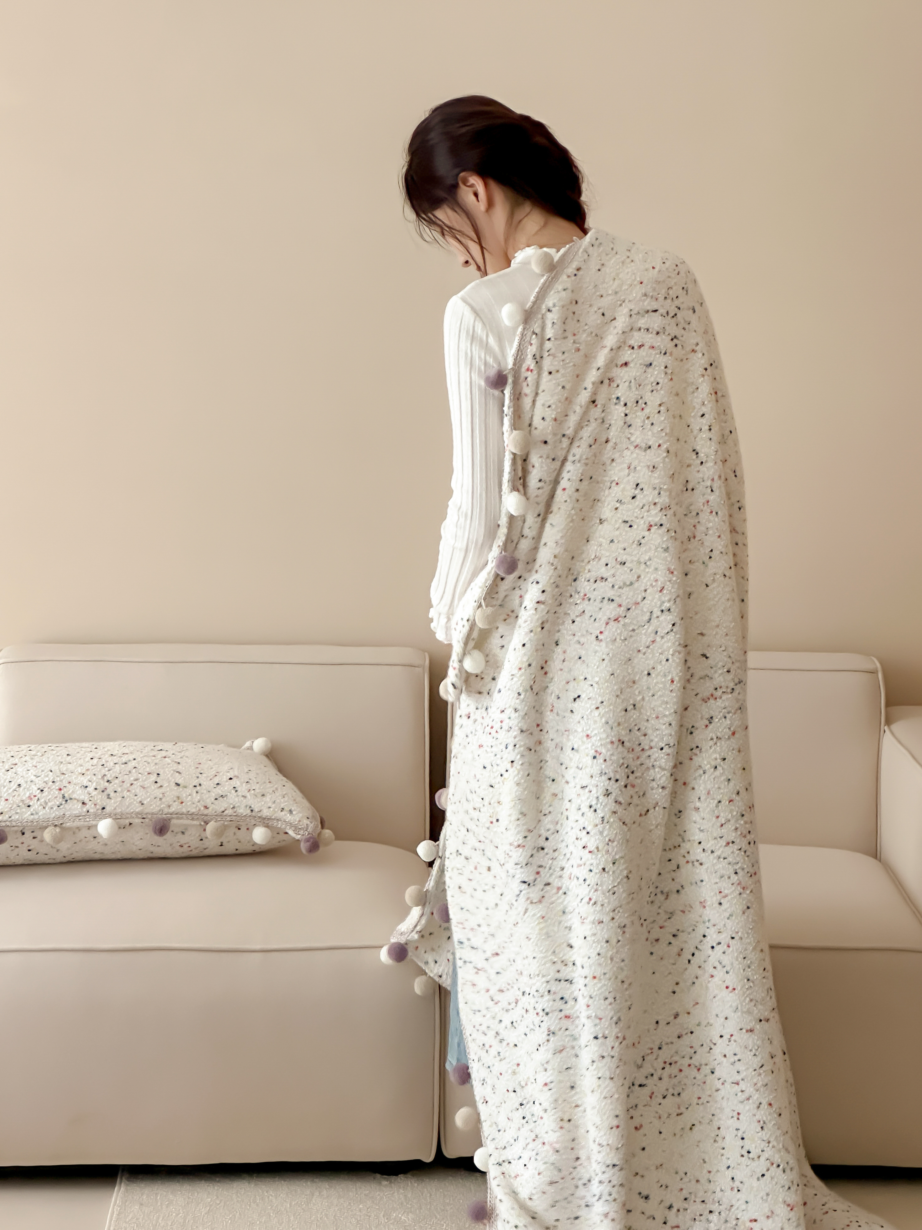 纱线表面散落的彩色小点,像星辰、似糖果,编织时随机渐变,立体纹路,清晰肌理,细节感满分,自带“手作”滤镜。活泼不浮夸,时尚不撞款,用来点缀家居氛围瞬间增色!