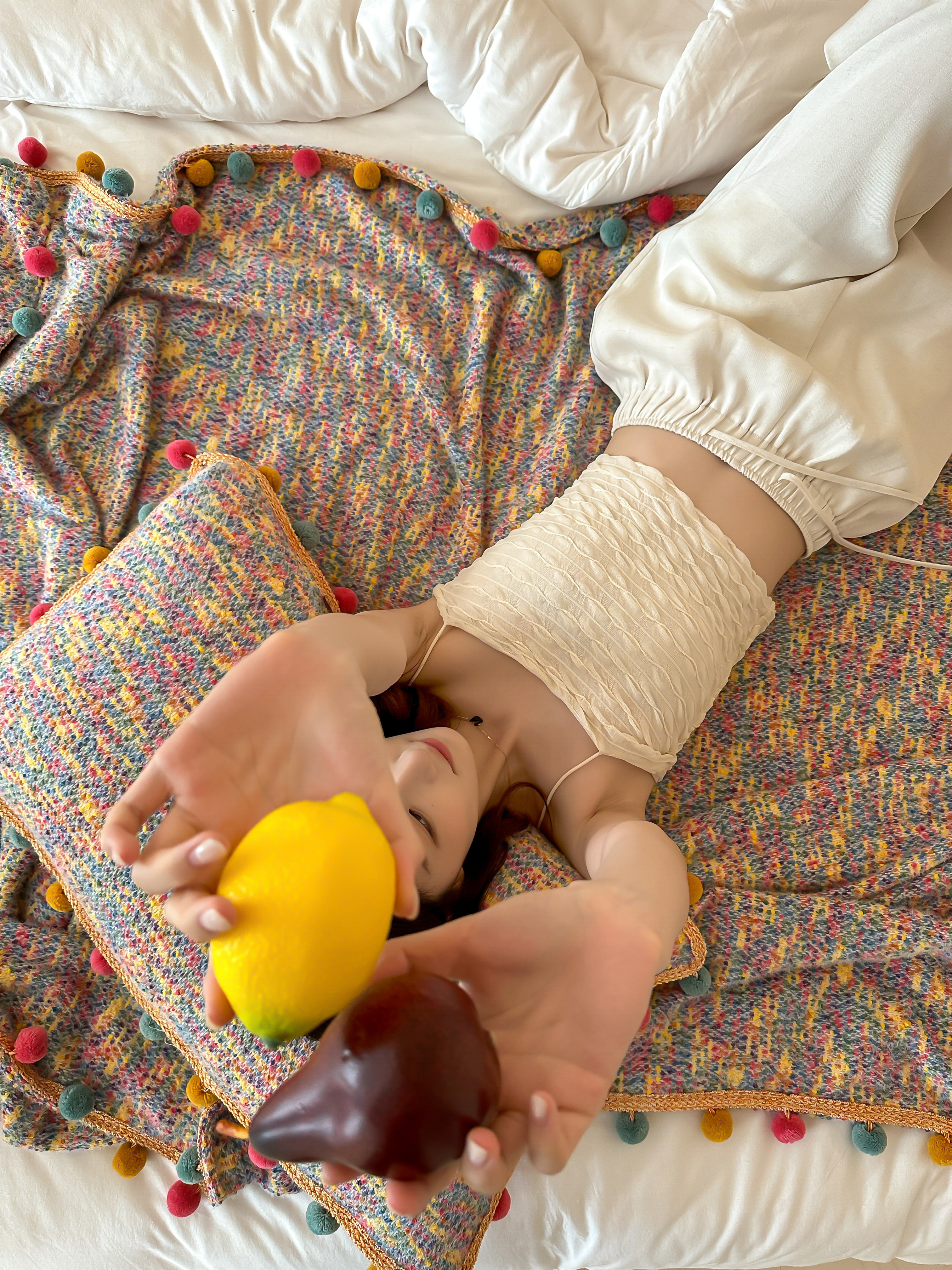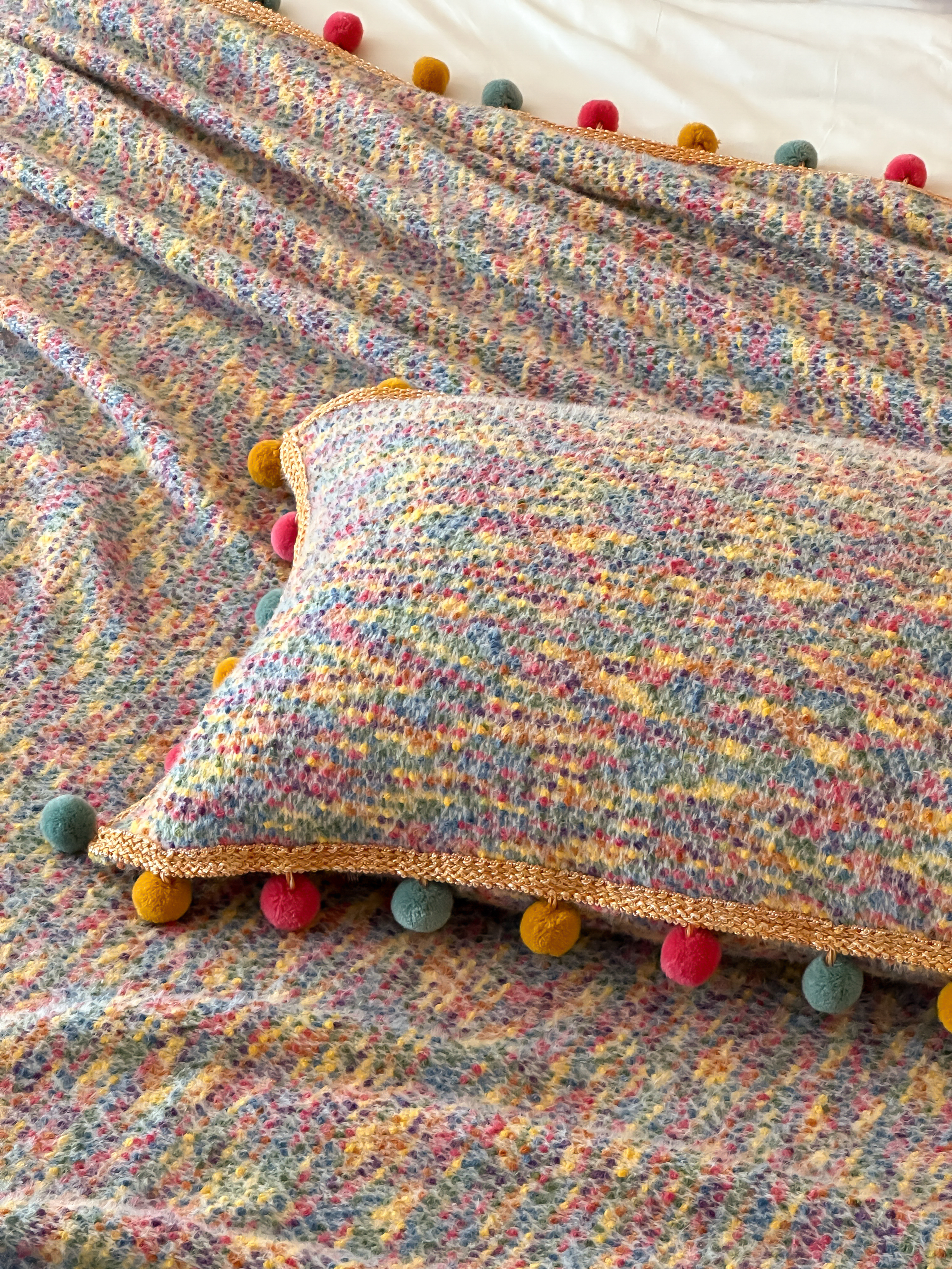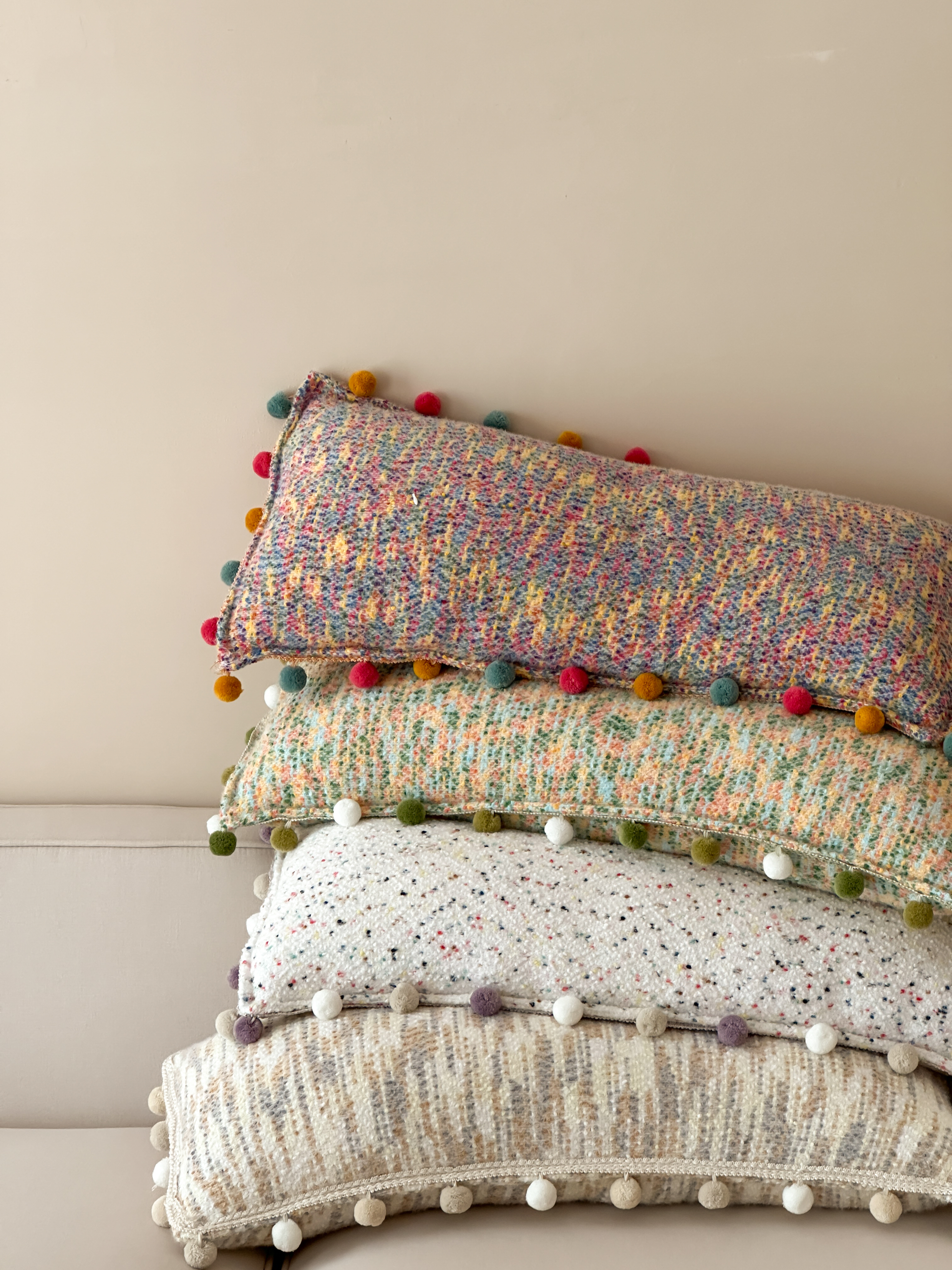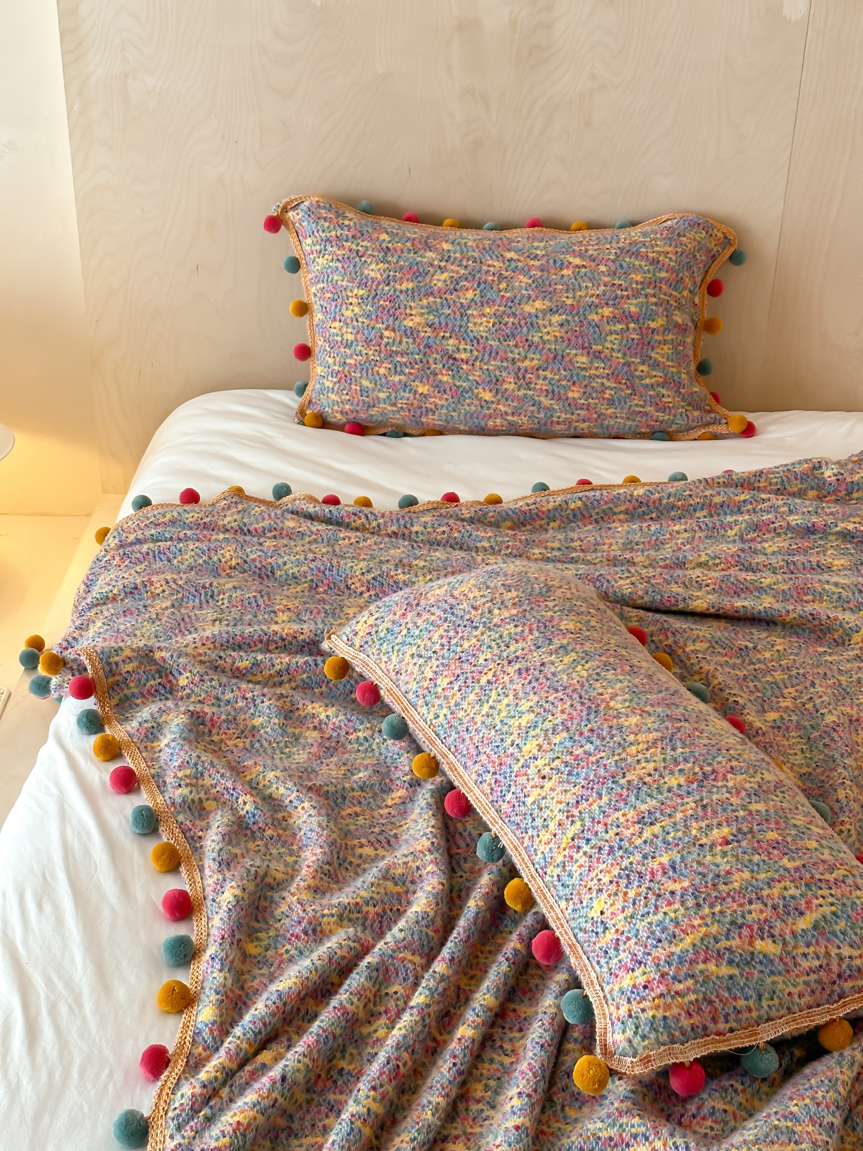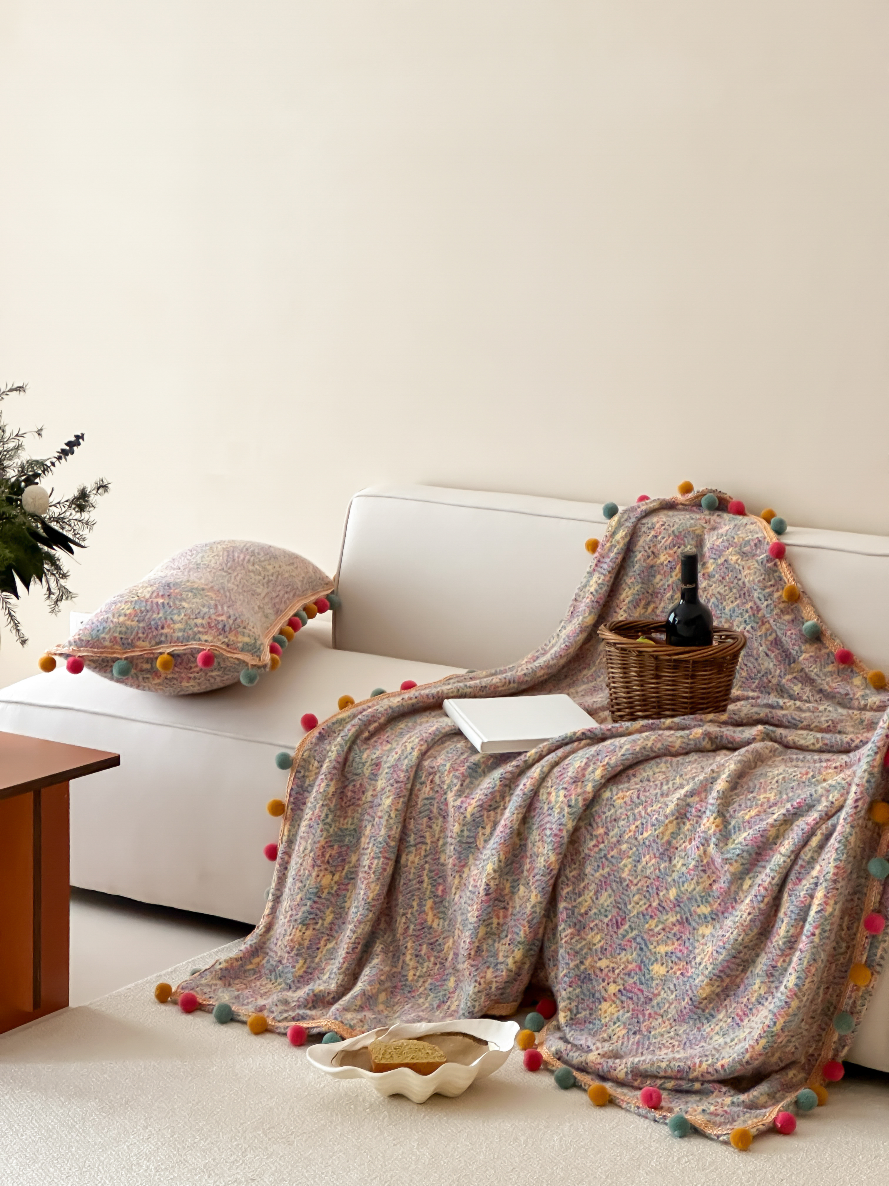 纱线表面散落的彩色小点,像星辰、似糖果,编织时随机渐变,立体纹路,清晰肌理,细节感满分,自带“手作”滤镜。活泼不浮夸,时尚不撞款,用来点缀家居氛围瞬间增色!