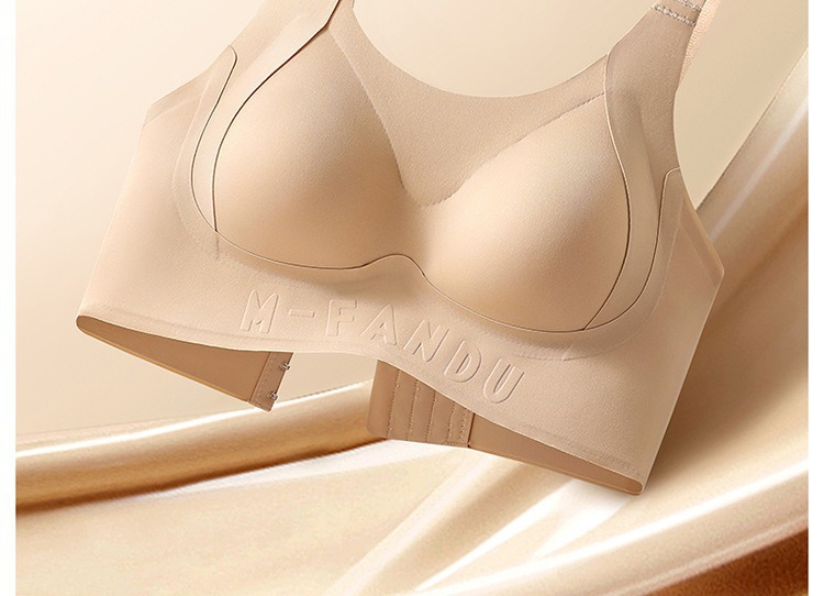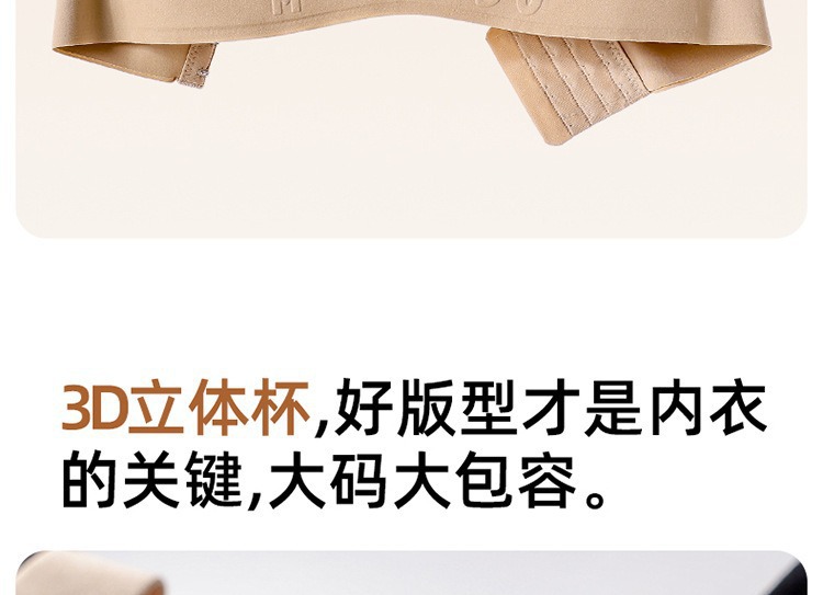 大码内衣女大胸显小聚拢收副乳支撑防下垂无痕隐形粉底液文胸女薄