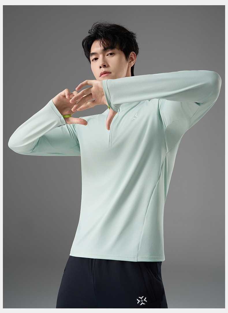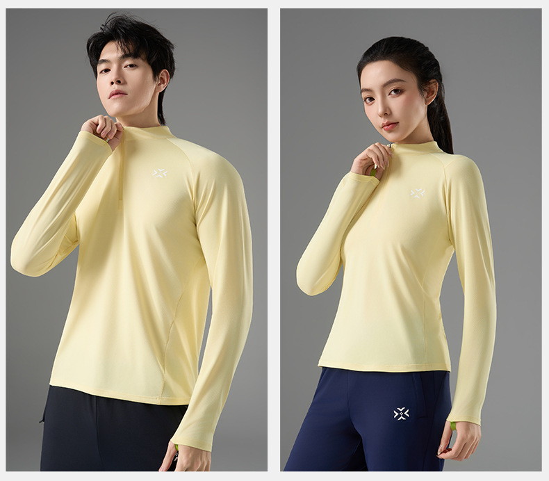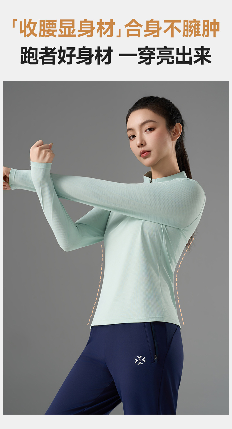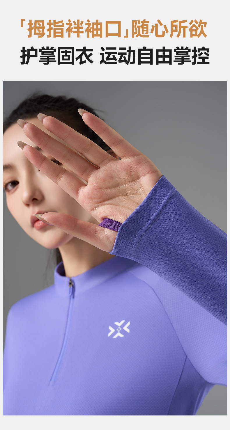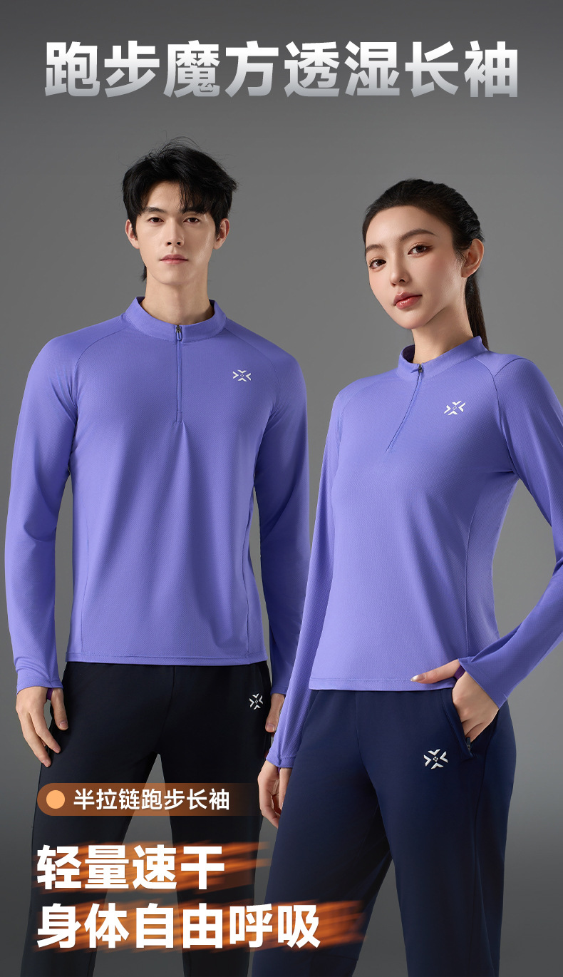 有为者/男女春秋跑步长袖 半开拉链魔方透湿拇指套跑步运动透气速干训练长袖T恤