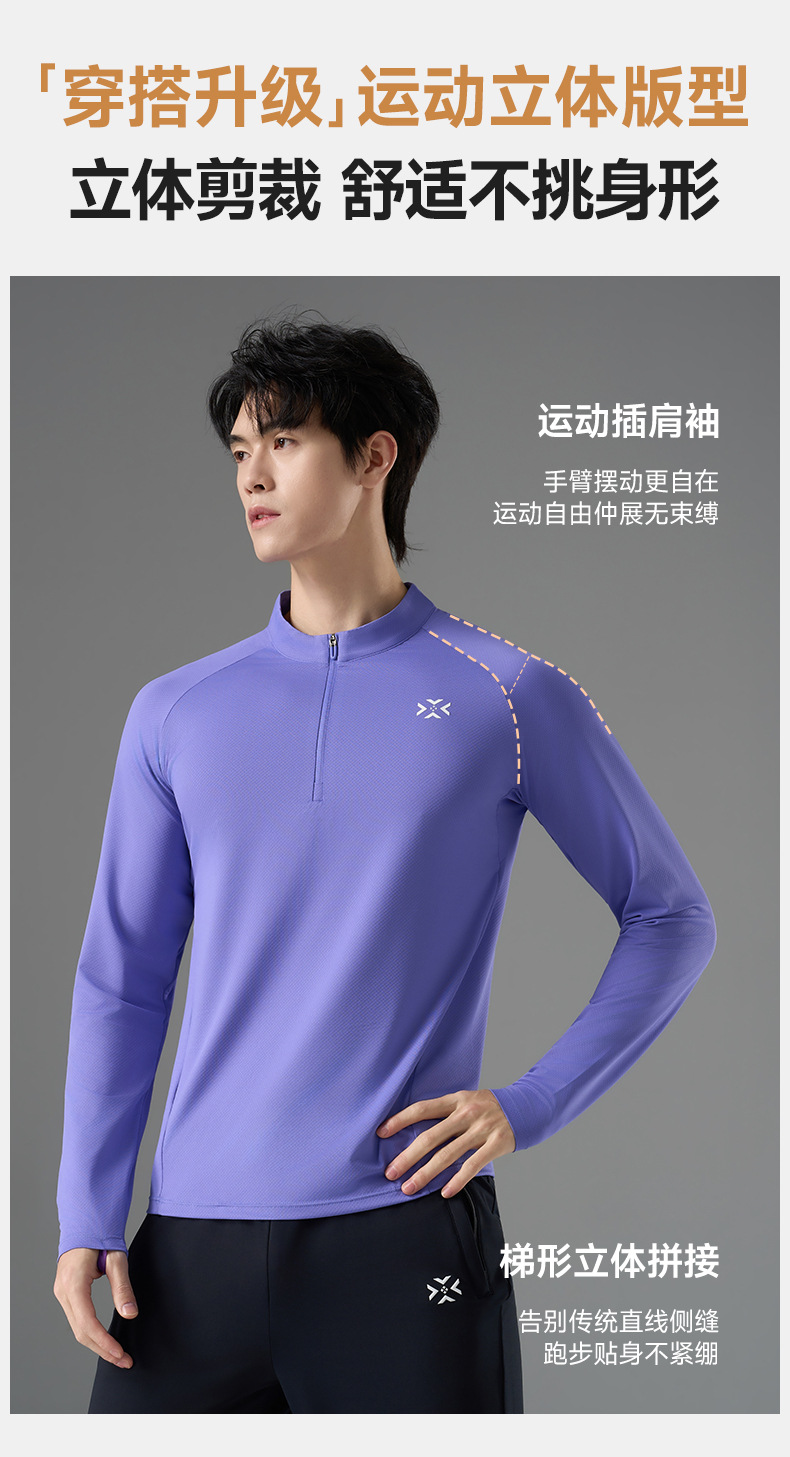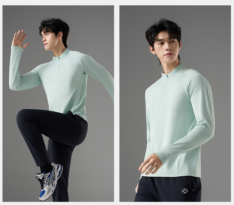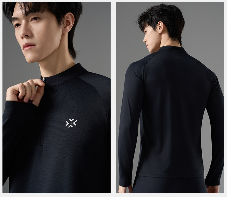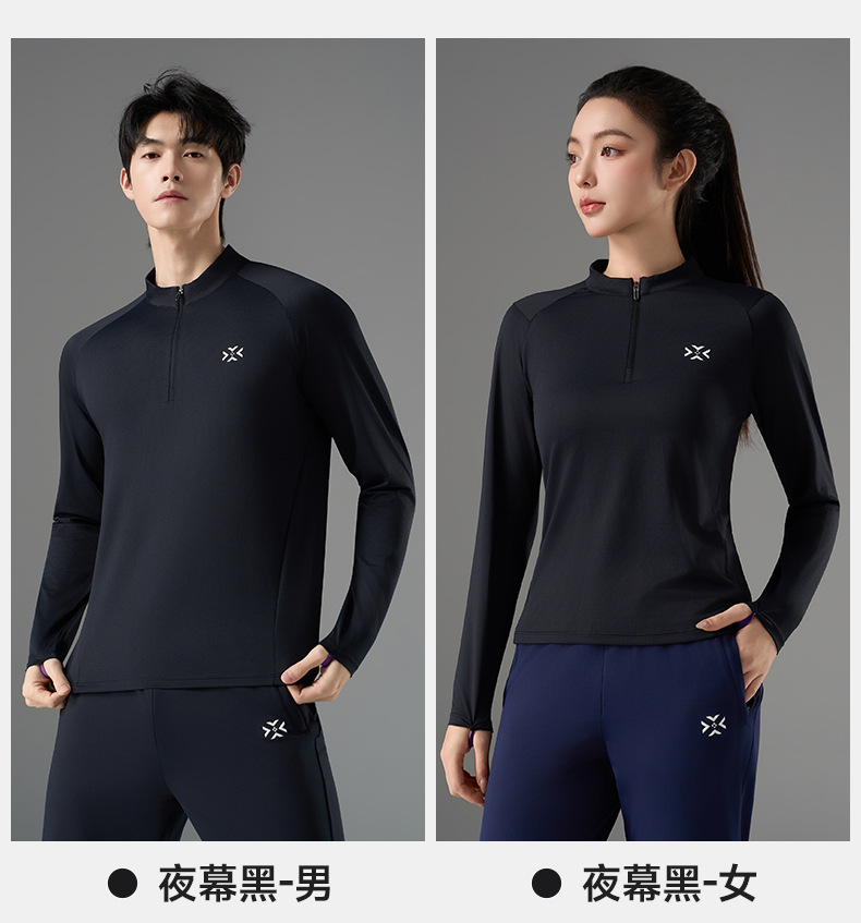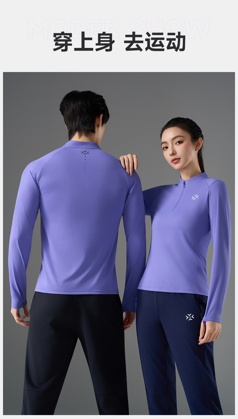 有为者/男女春秋跑步长袖 半开拉链魔方透湿拇指套跑步运动透气速干训练长袖T恤