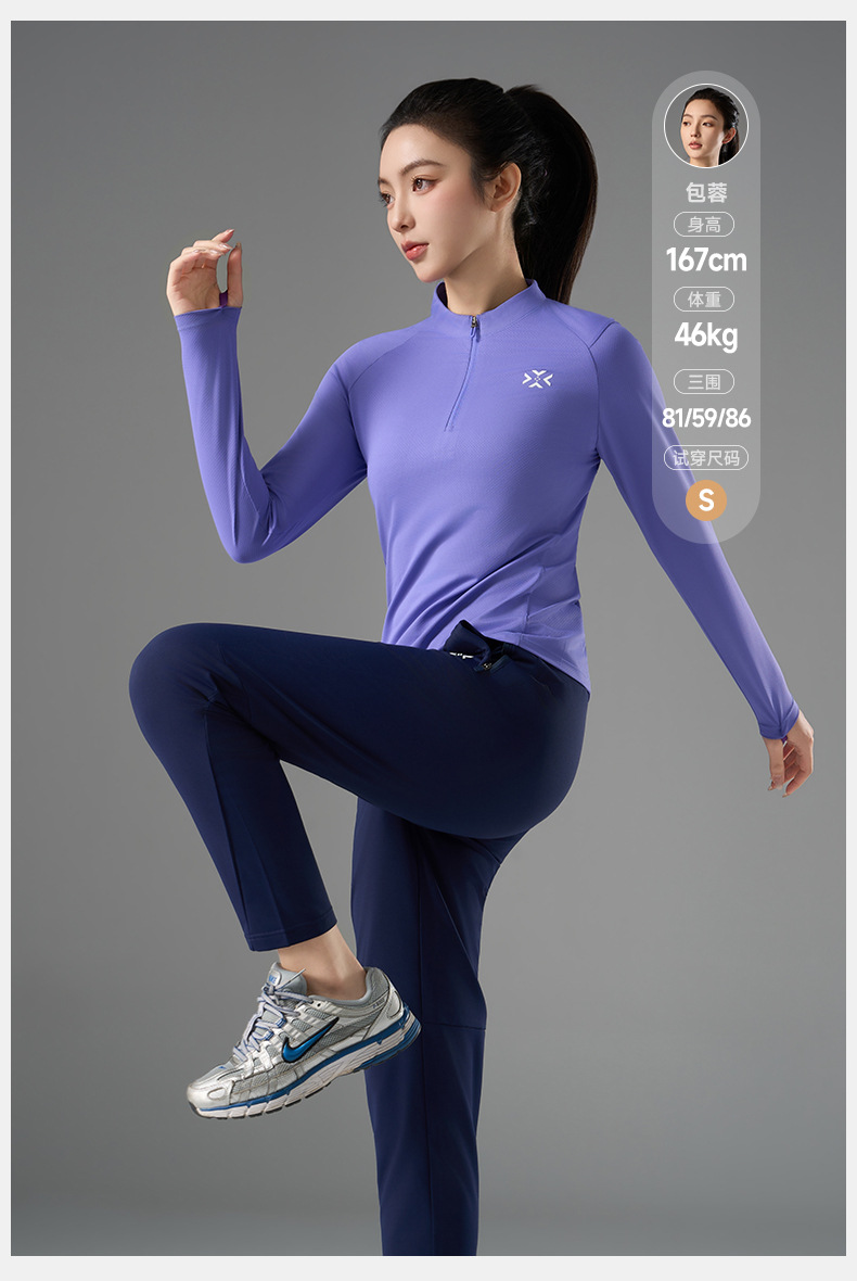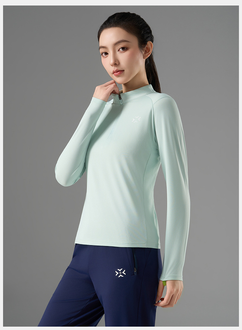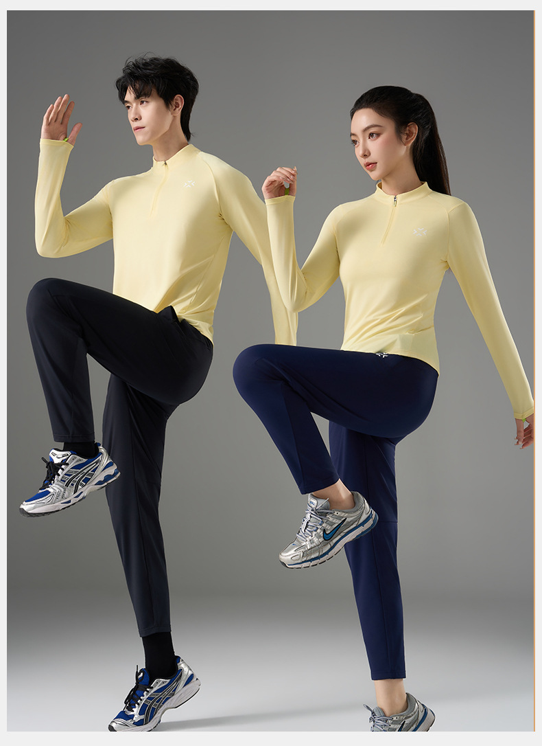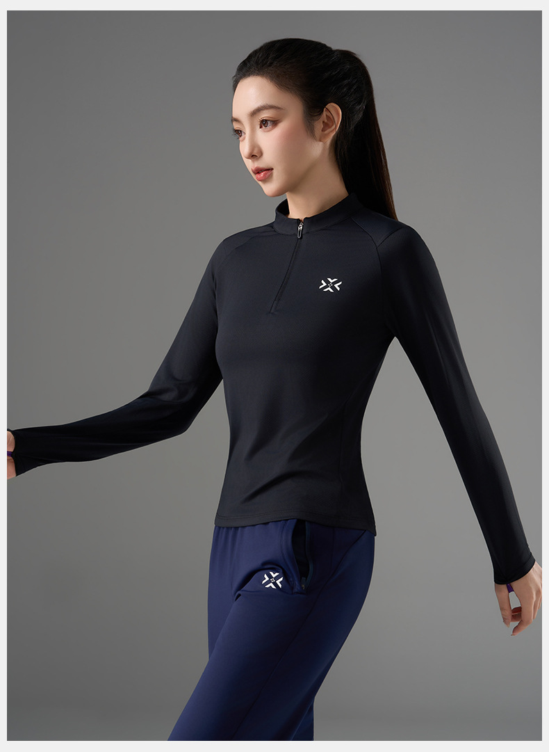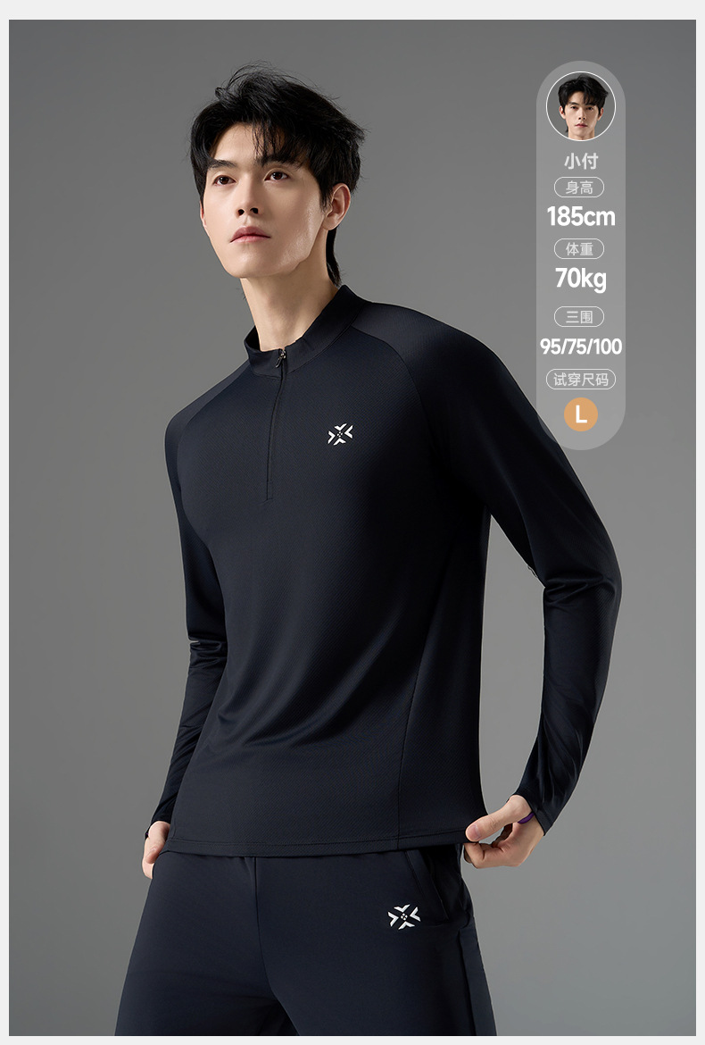 有为者/男女春秋跑步长袖 半开拉链魔方透湿拇指套跑步运动透气速干训练长袖T恤