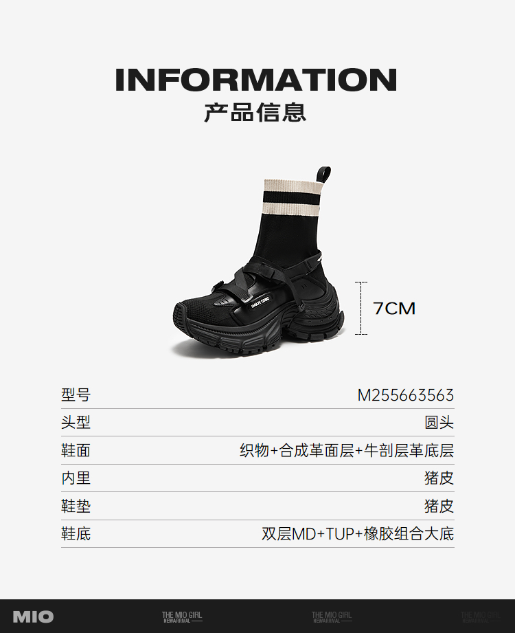 MIO米奥袜靴圆头高跟厚底增高弹力靴瘦瘦靴百搭女靴M255663563