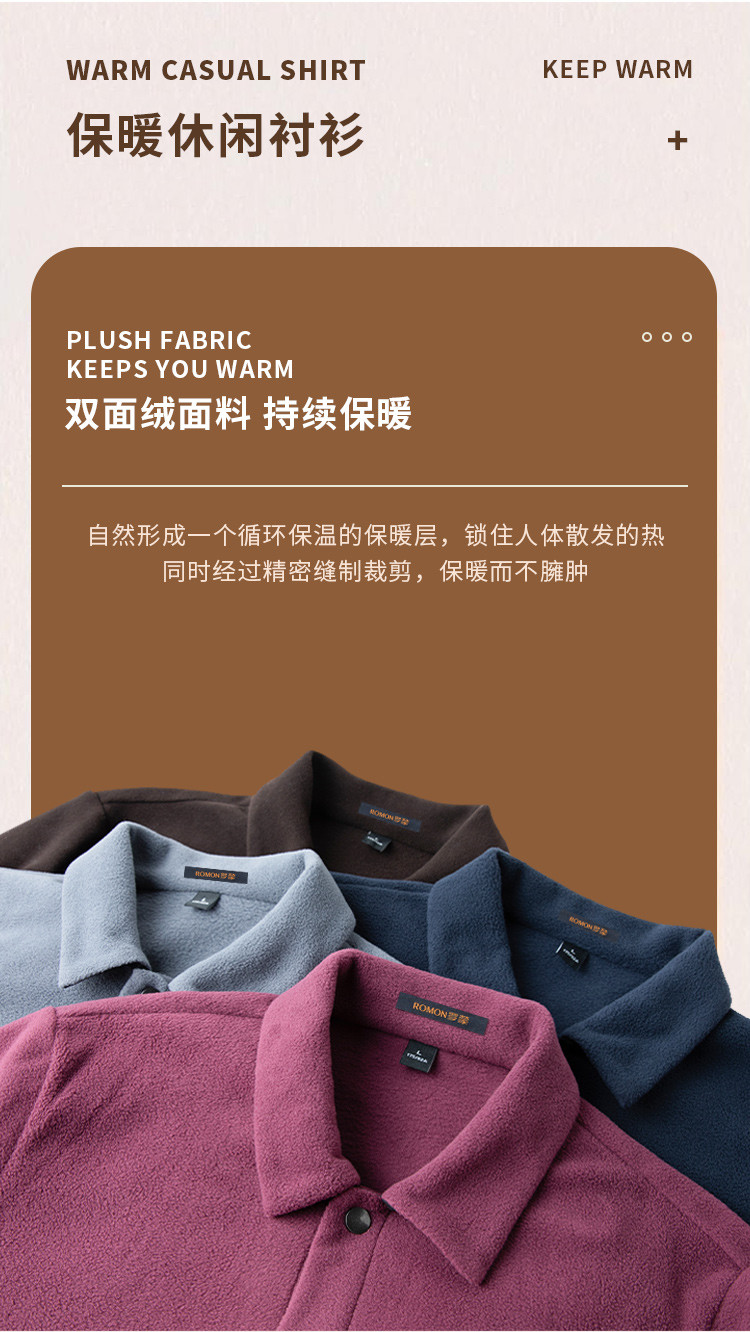 【双面绒】罗蒙秋冬款男士衬衫休闲百搭蓄热保暖长袖衬衣男