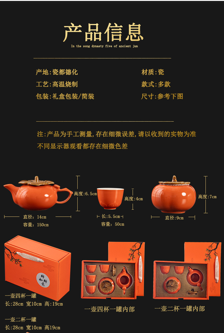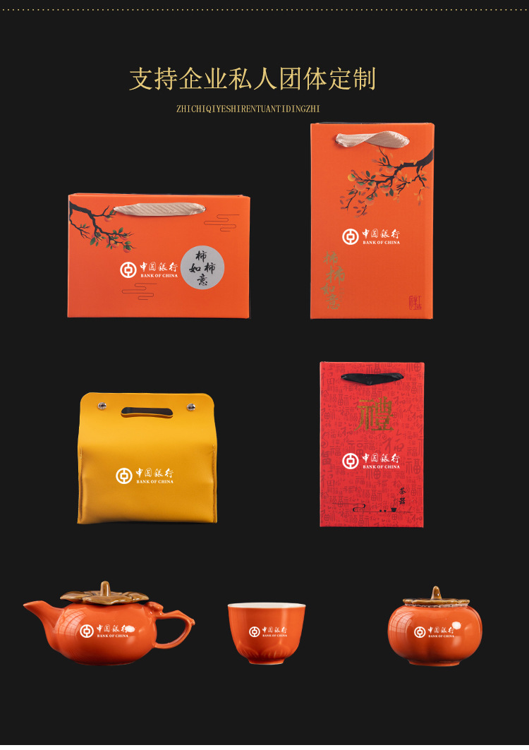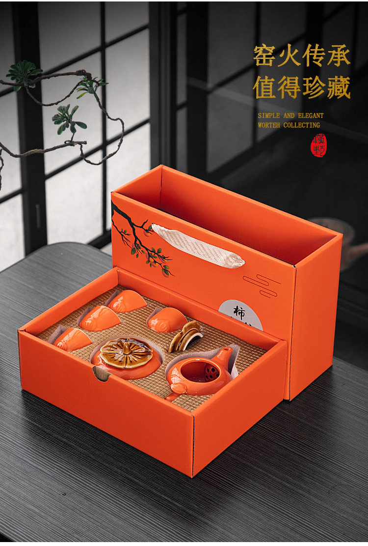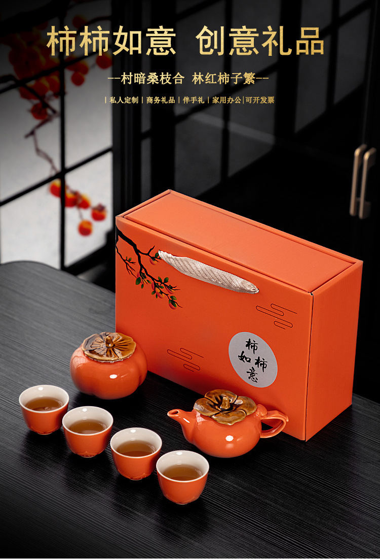 柿子礼品功夫茶具套装结婚寿宴满月回礼公司活动开业伴手礼印logo