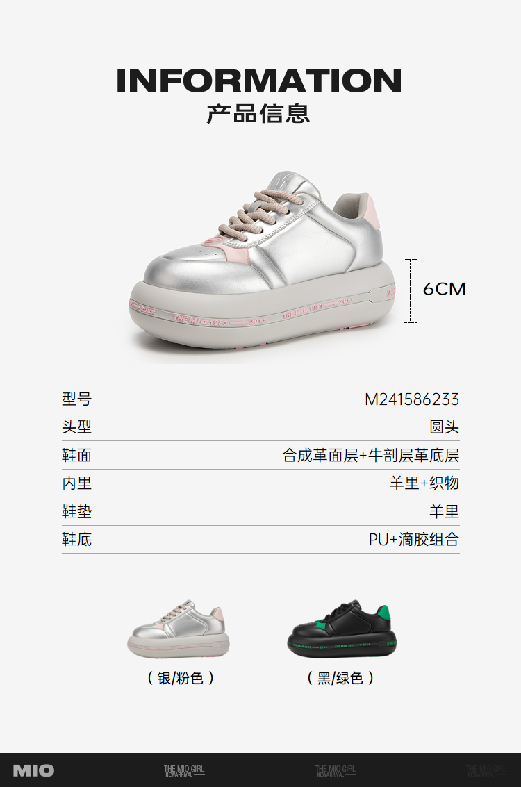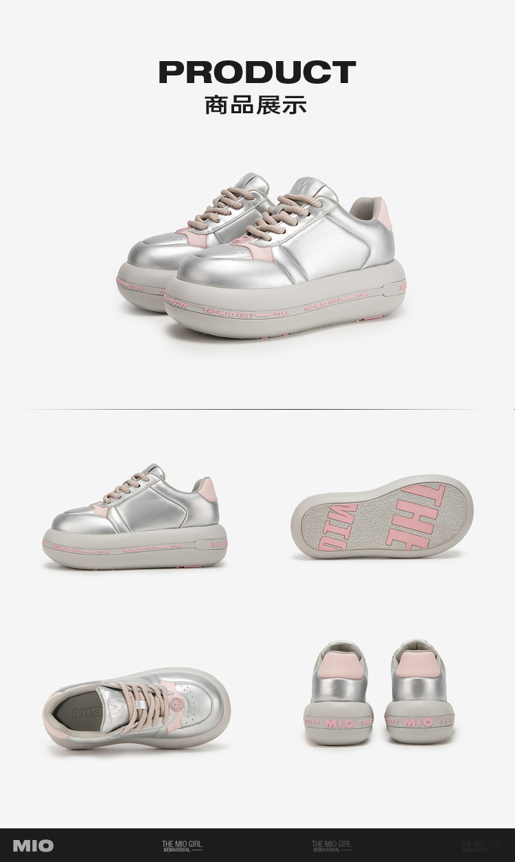 MIO米奥春季圆头高跟拼色休闲鞋时尚厚底舒软面包鞋女M241586233