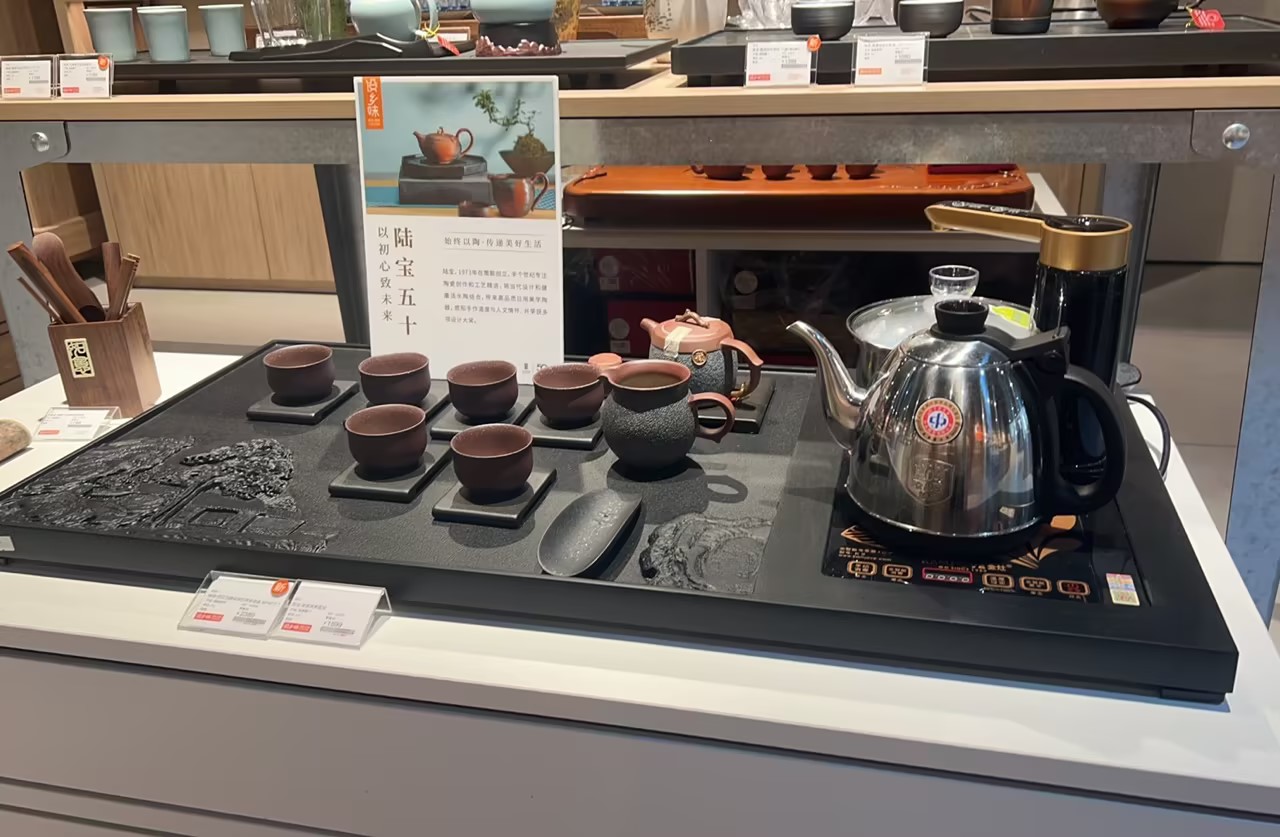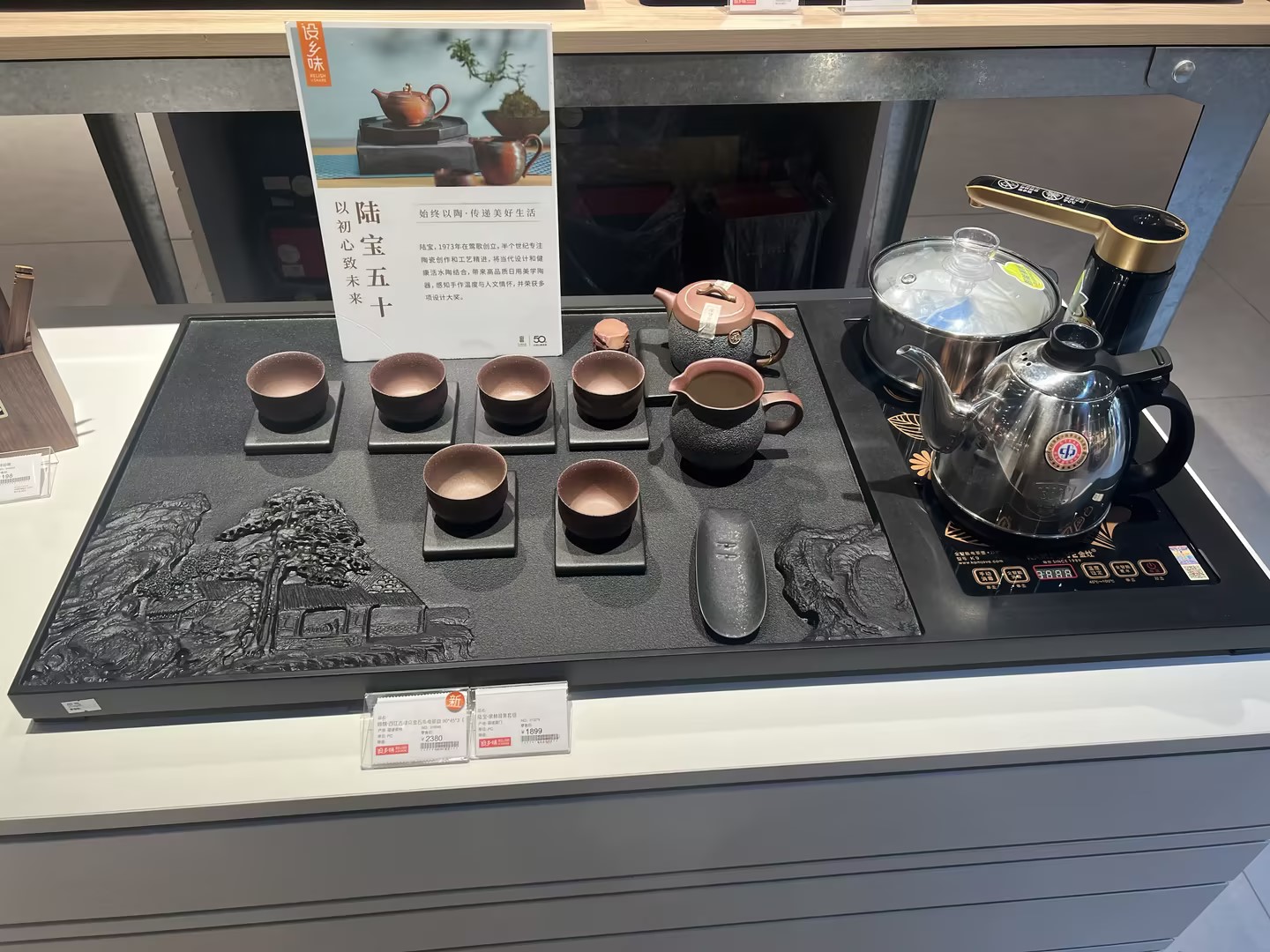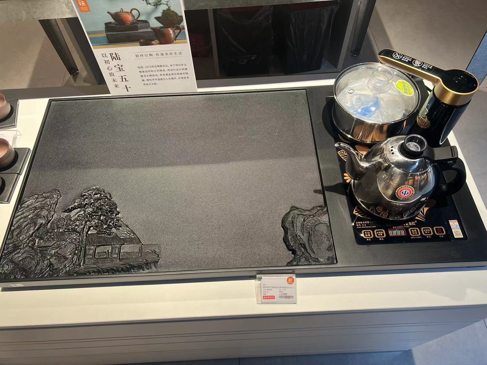 锦绣-西江古楼乌金石带电茶盘 90*45*3(2件套)