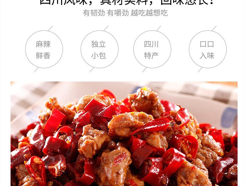 四川特产【麻辣兔丁158g】 零食小包装带骨冷吃兔