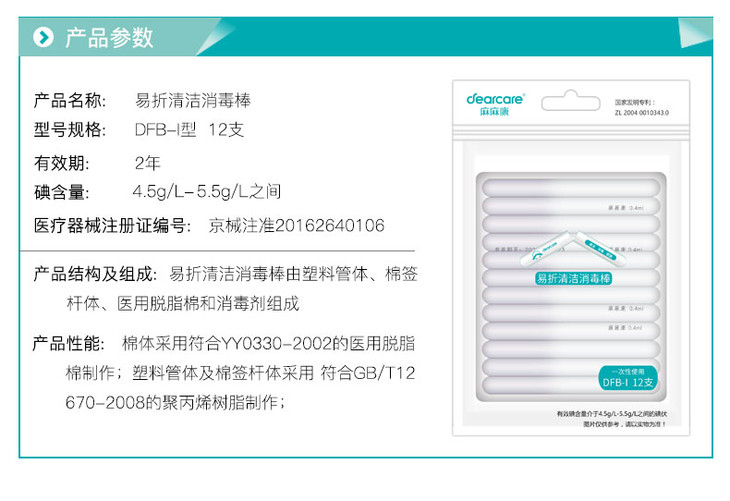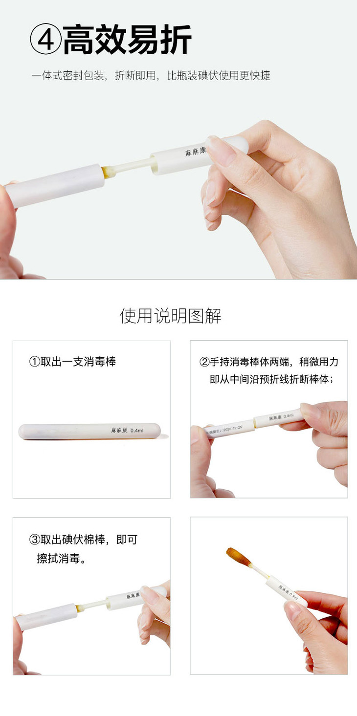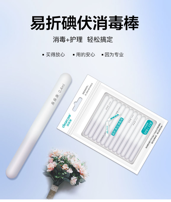 DJ麻麻康 12支医用碘伏消毒棒一次性户外便携消毒棉签(24支/2包)