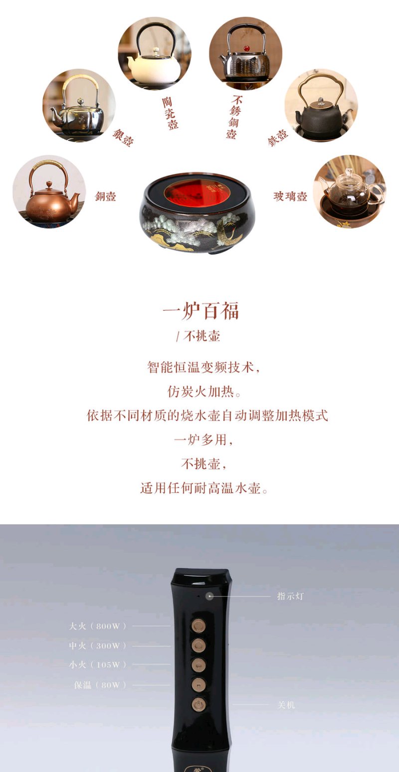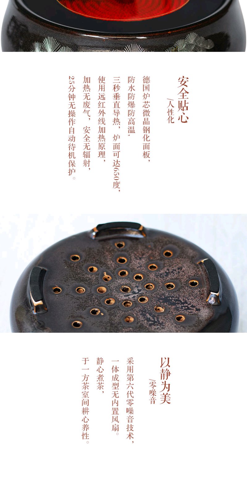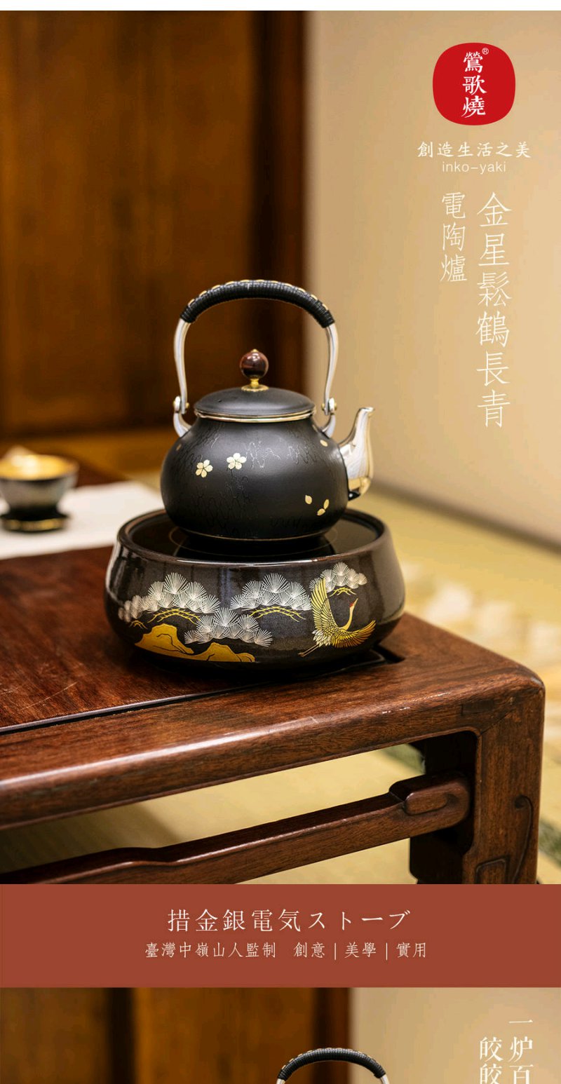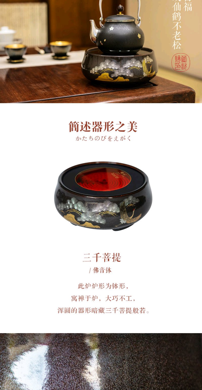 莺歌烧 金星松鹤长青电陶炉矮炉 静音小型煮茶器家用台式便携煮茶迷你茶炉
