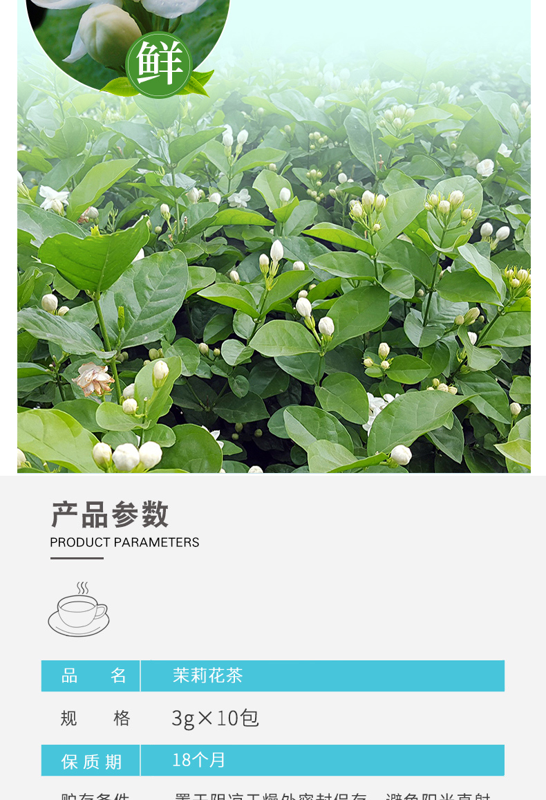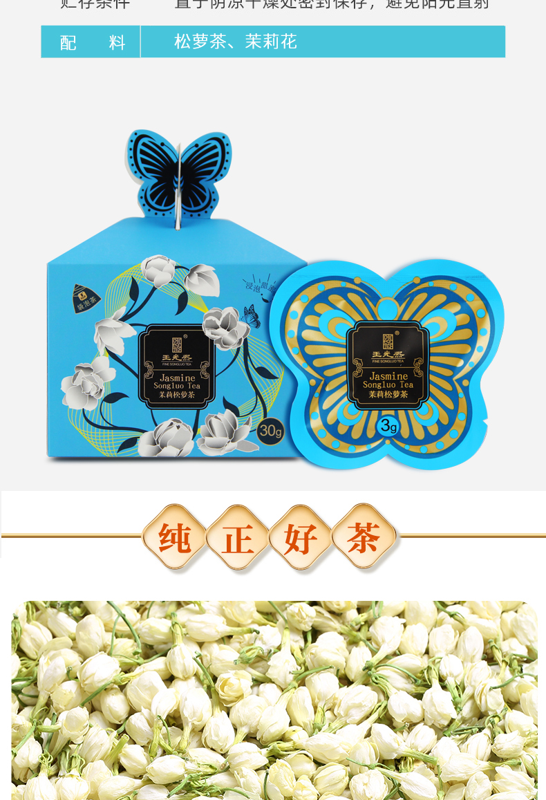 王光熙茉莉花茶茶包茉莉花茶浓香型茉莉花拼配松萝茶30克盒装