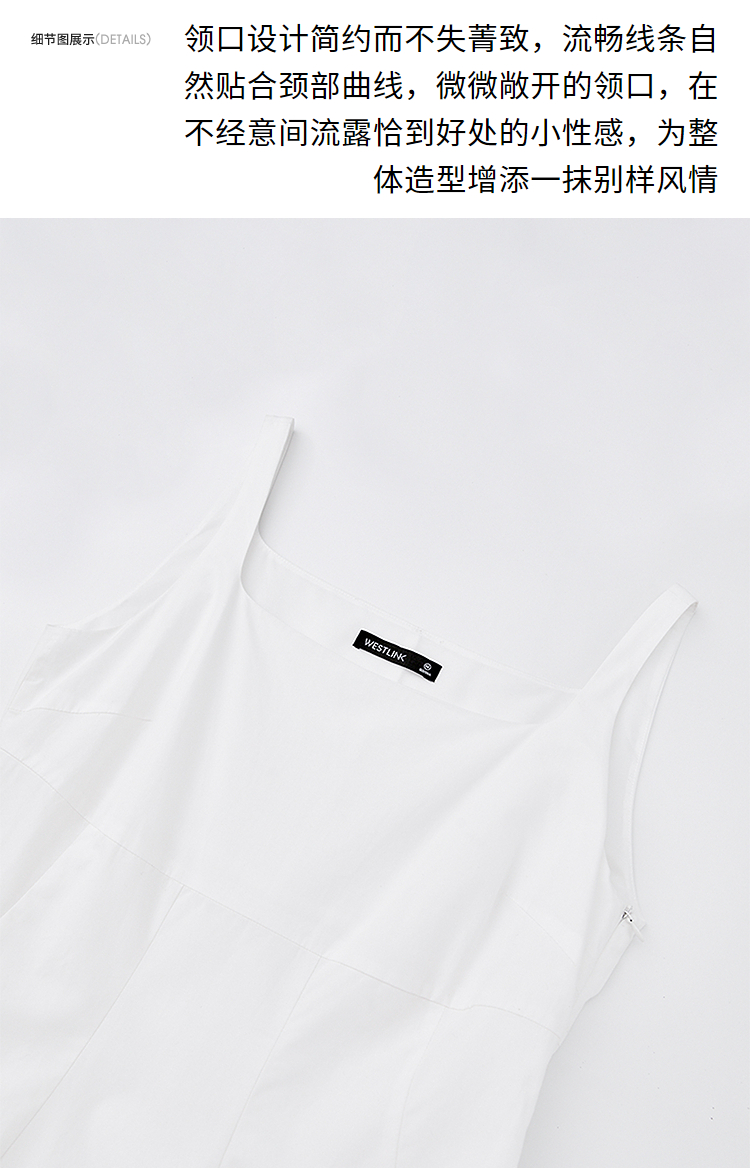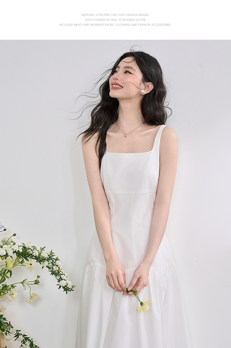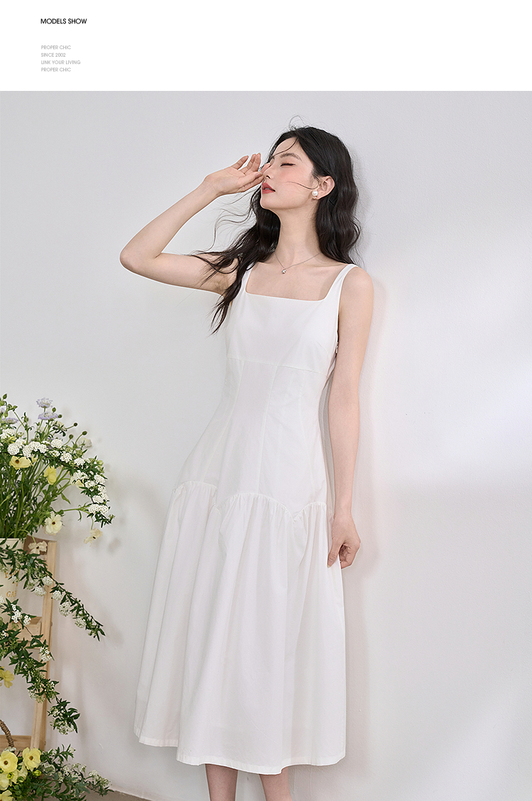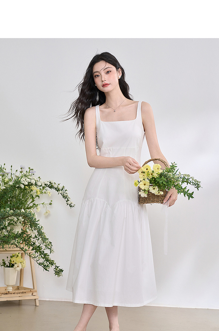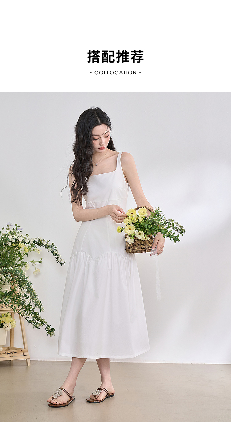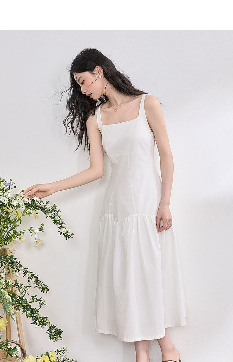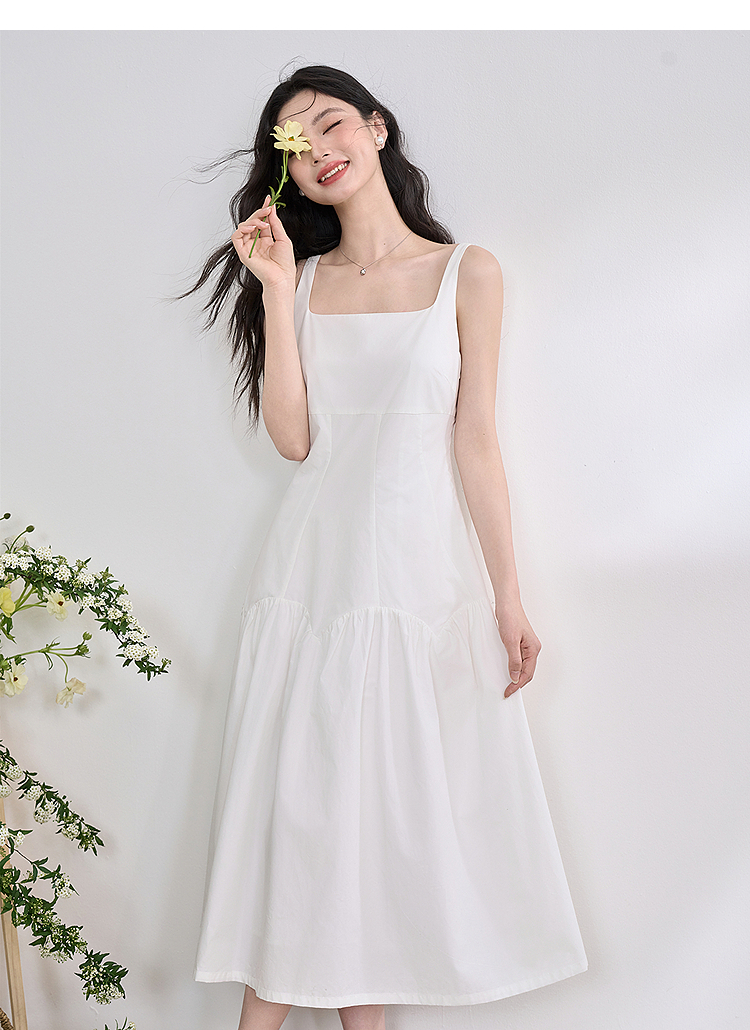简约设计感方领背心裙女夏季拼接不规则伞裙摆连衣裙V1050586