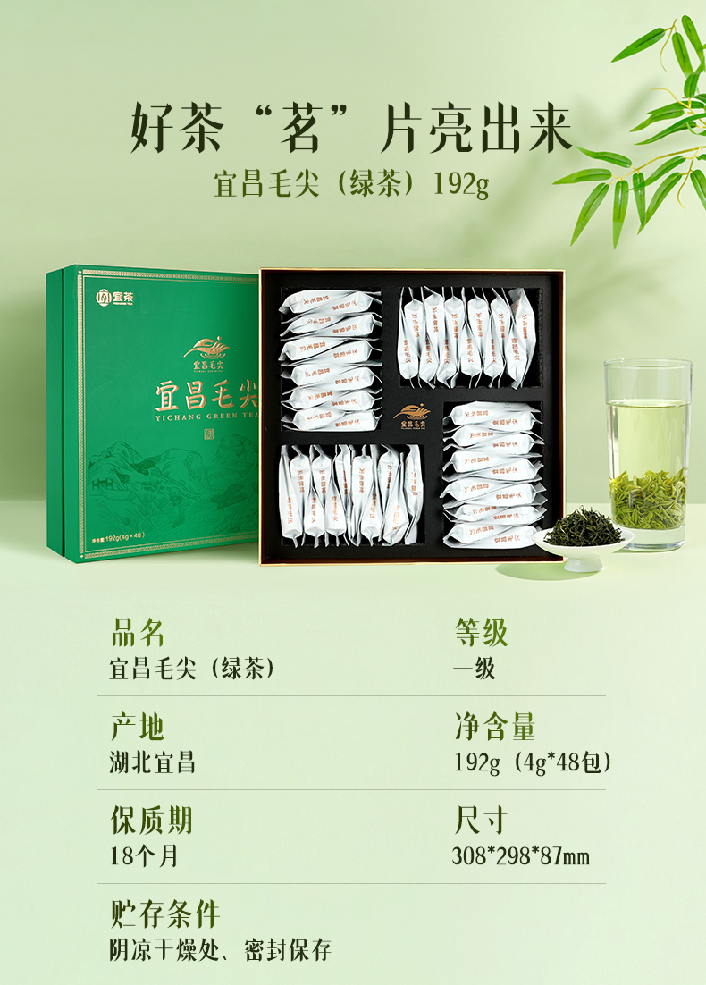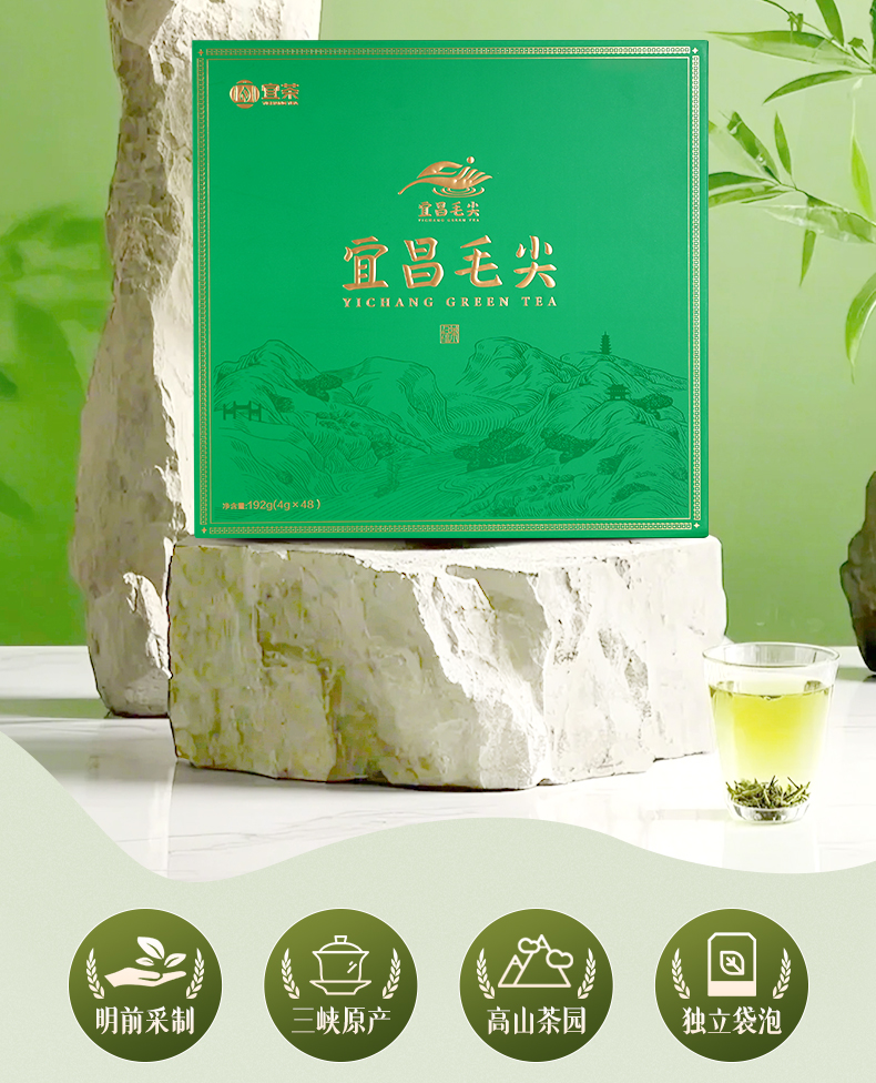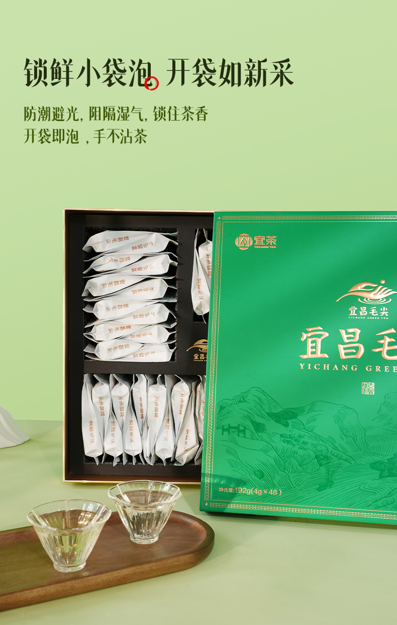 【宜茶甄选】宜昌茶叶 宜昌高山茶叶毛尖礼盒192g(4gx48)有礼袋