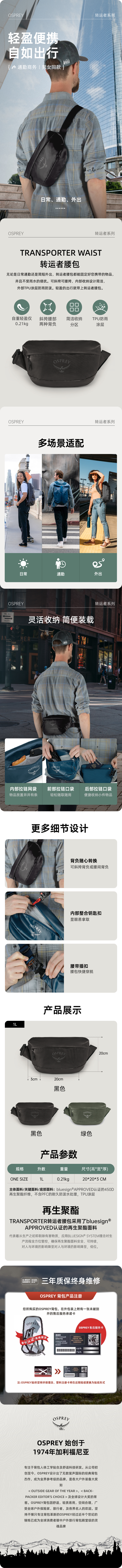 OSPREY Transporter Waist转运者腰包男女户外运动跑步多功能防水