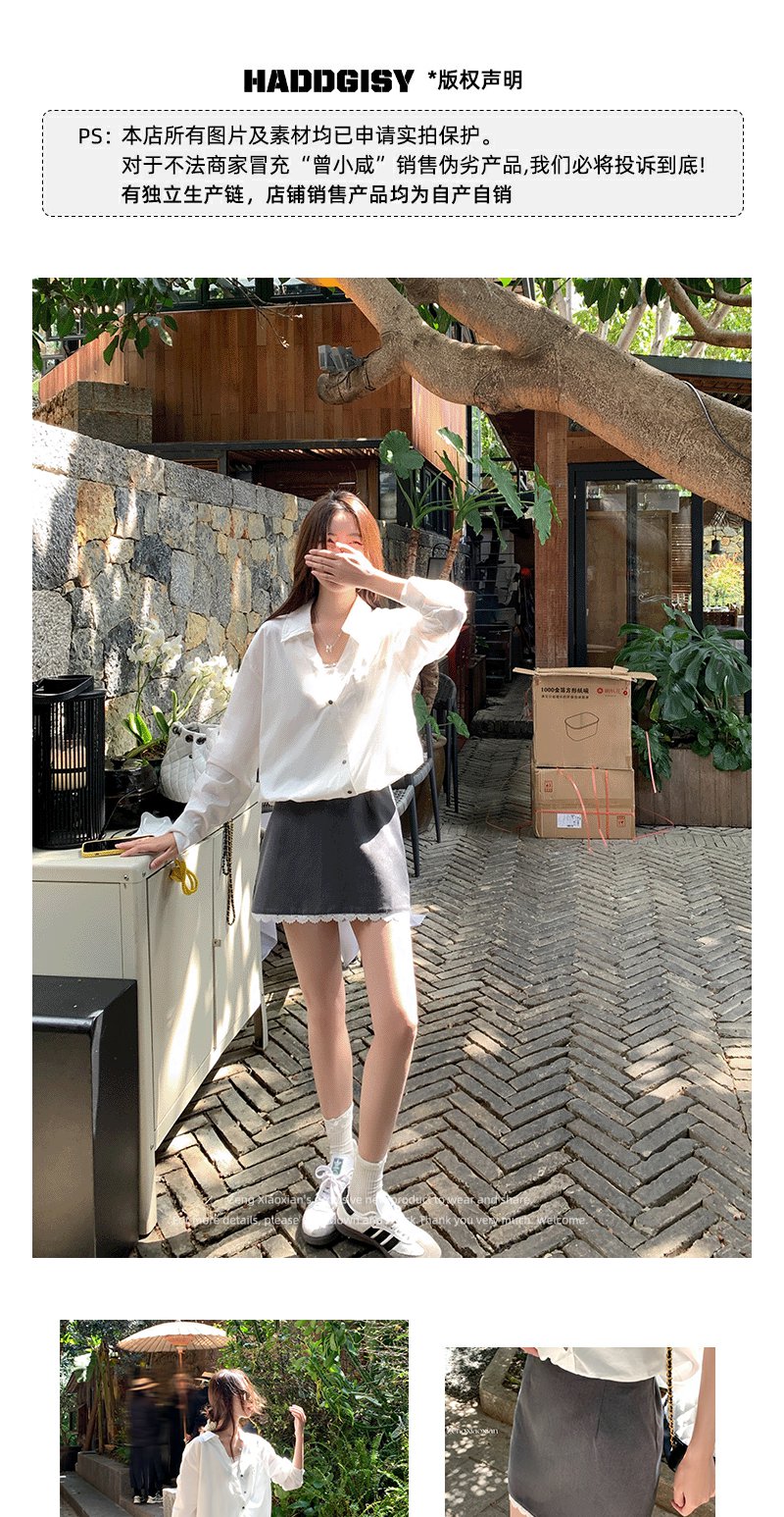 <曾小咸推荐>现货秒杀!最后一波 !下摆蕾丝边灰色半身裙 日常119.99 立减60 秒杀59.99!假两件米白色衬衫秒杀79.99!!